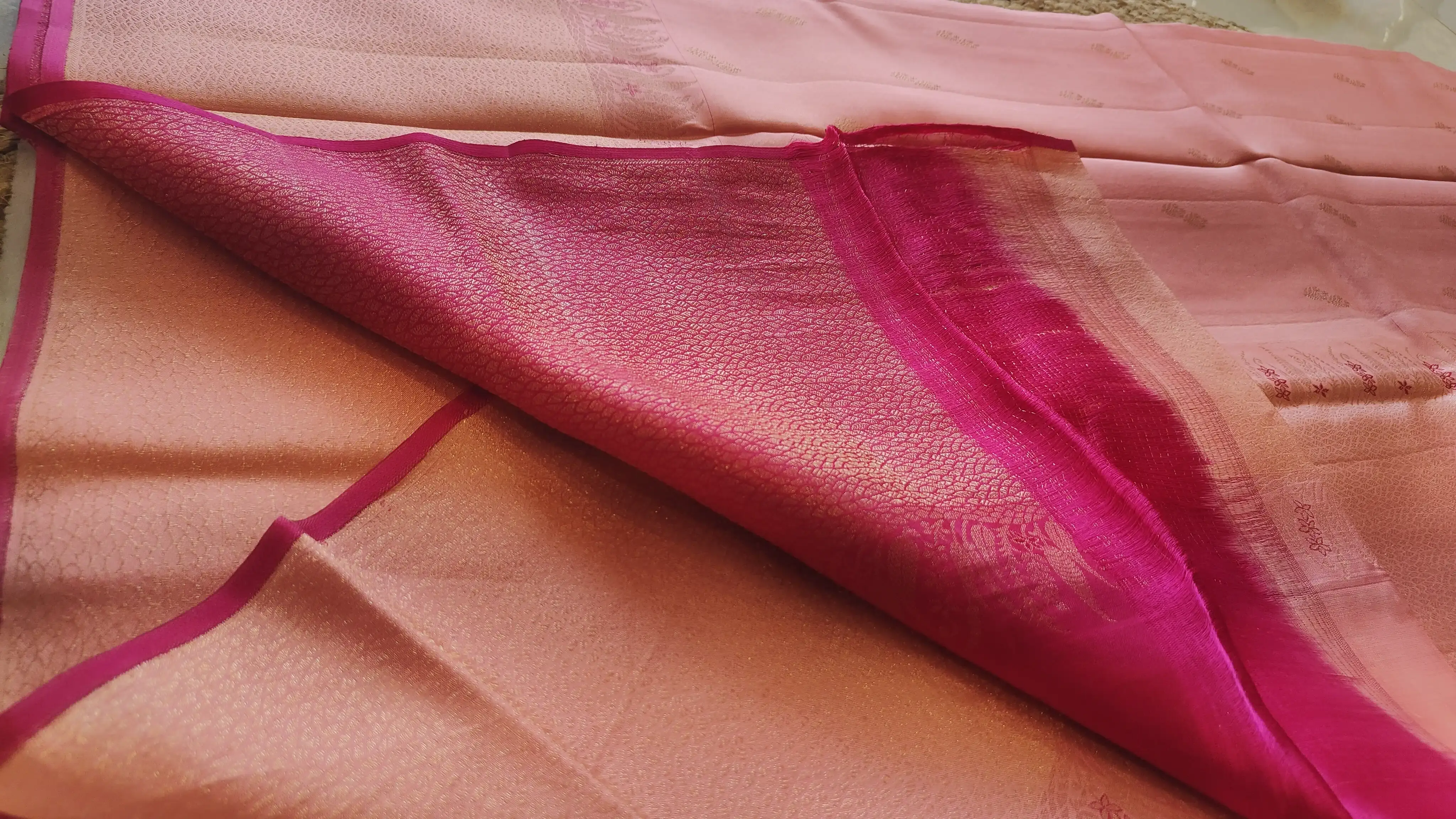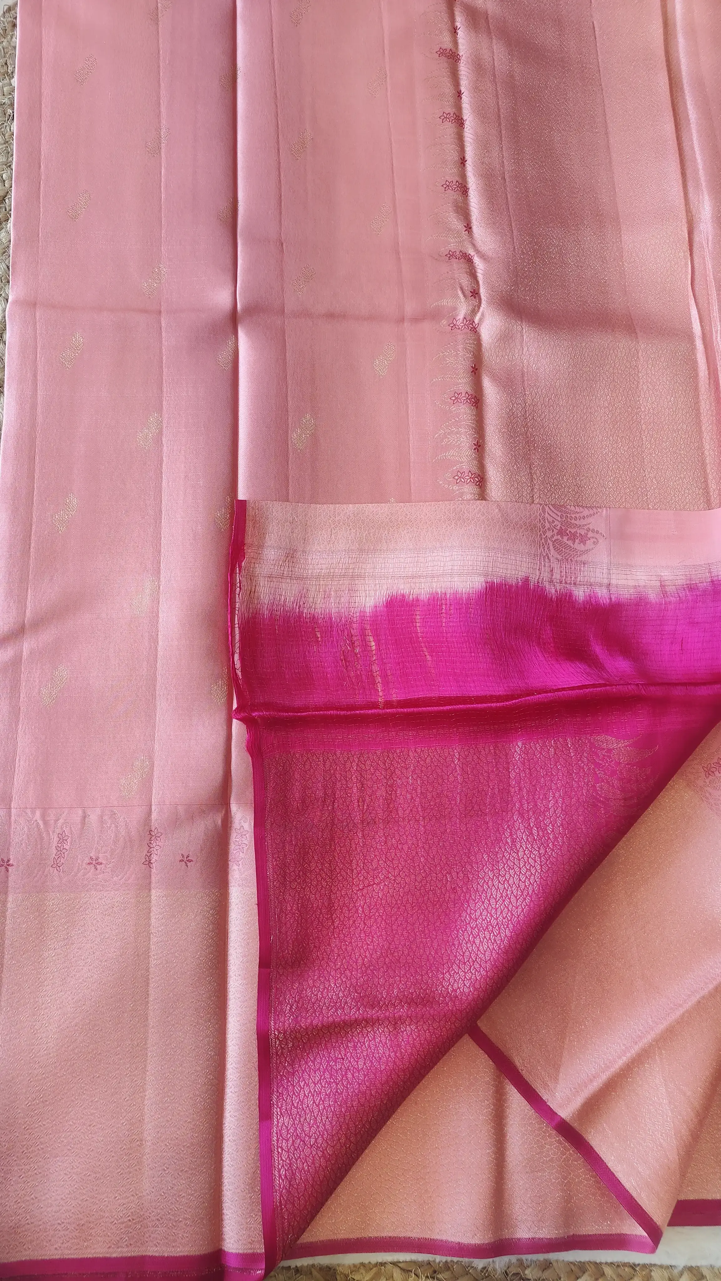 Baby pink contemporary floral pattern Pure kanchipuram silk saree