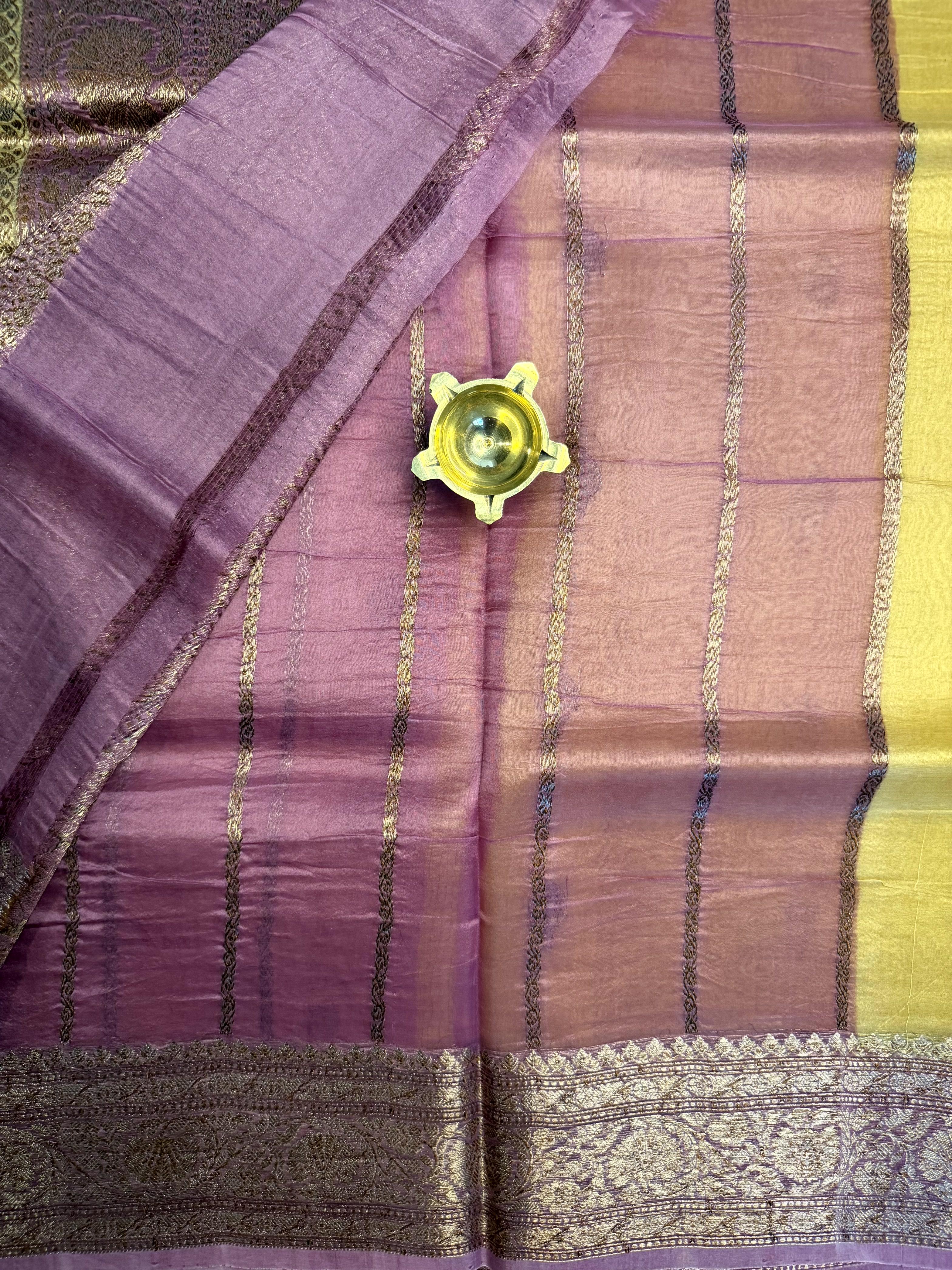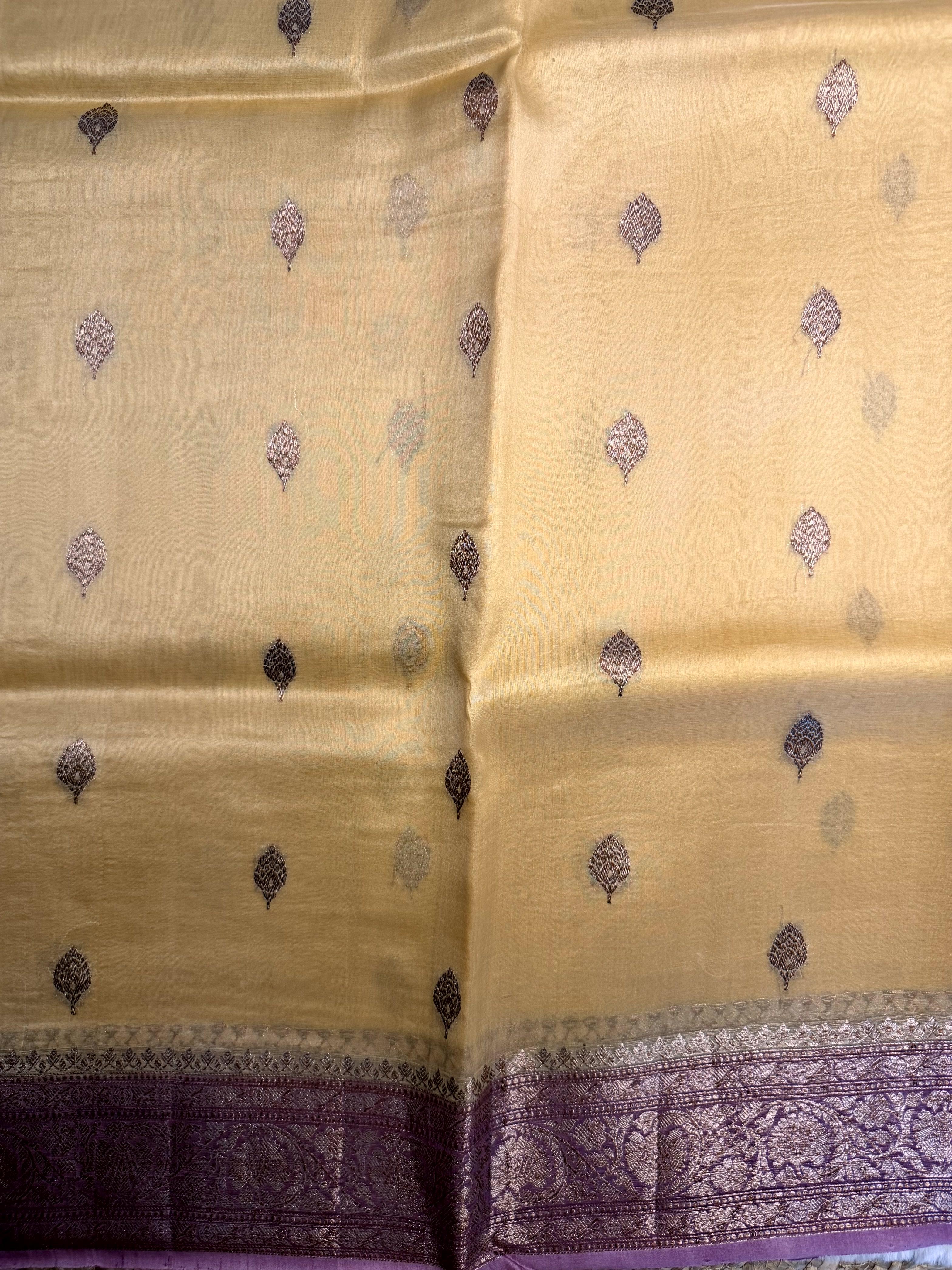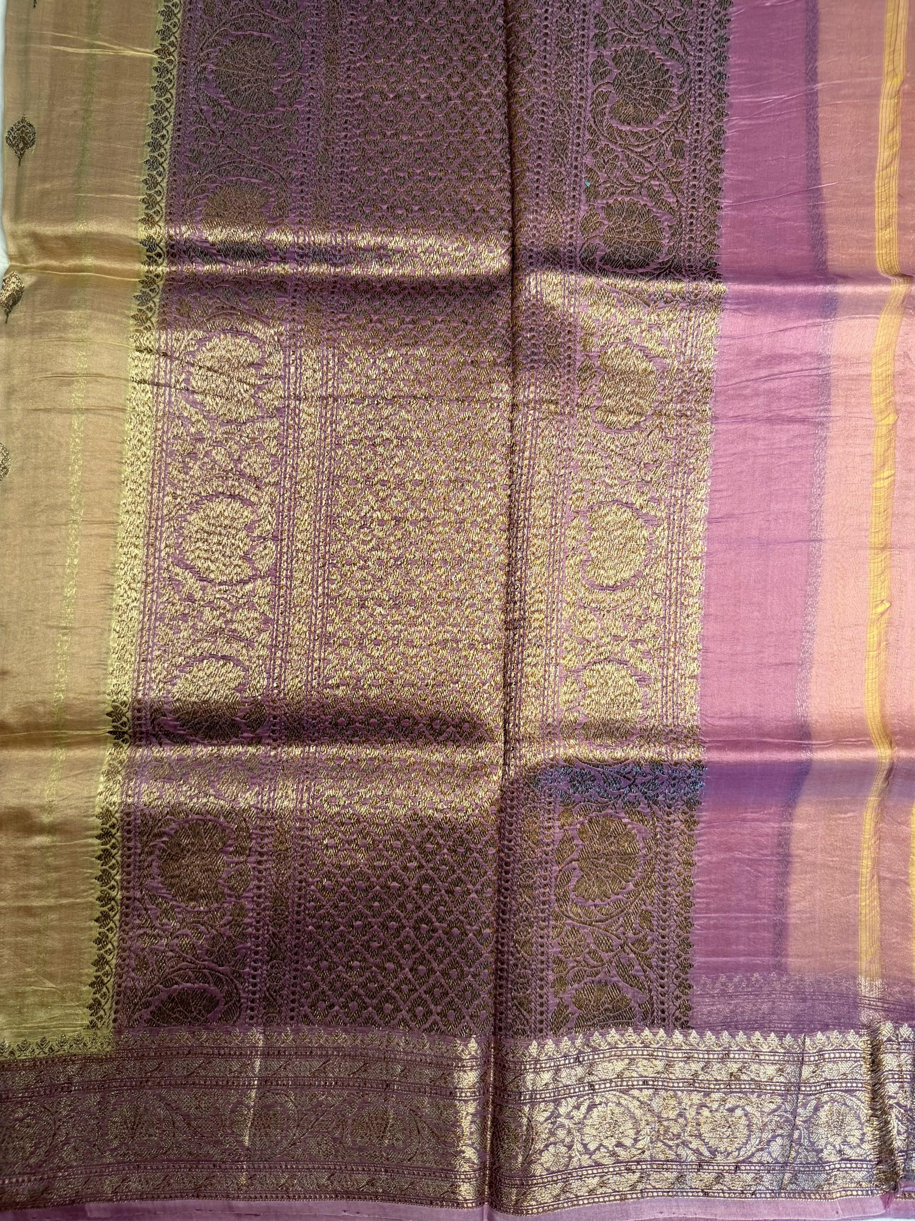 This beige pure Kora Organza saree with a pink antique zari border blends heritage detailing with modern color sensibility.
