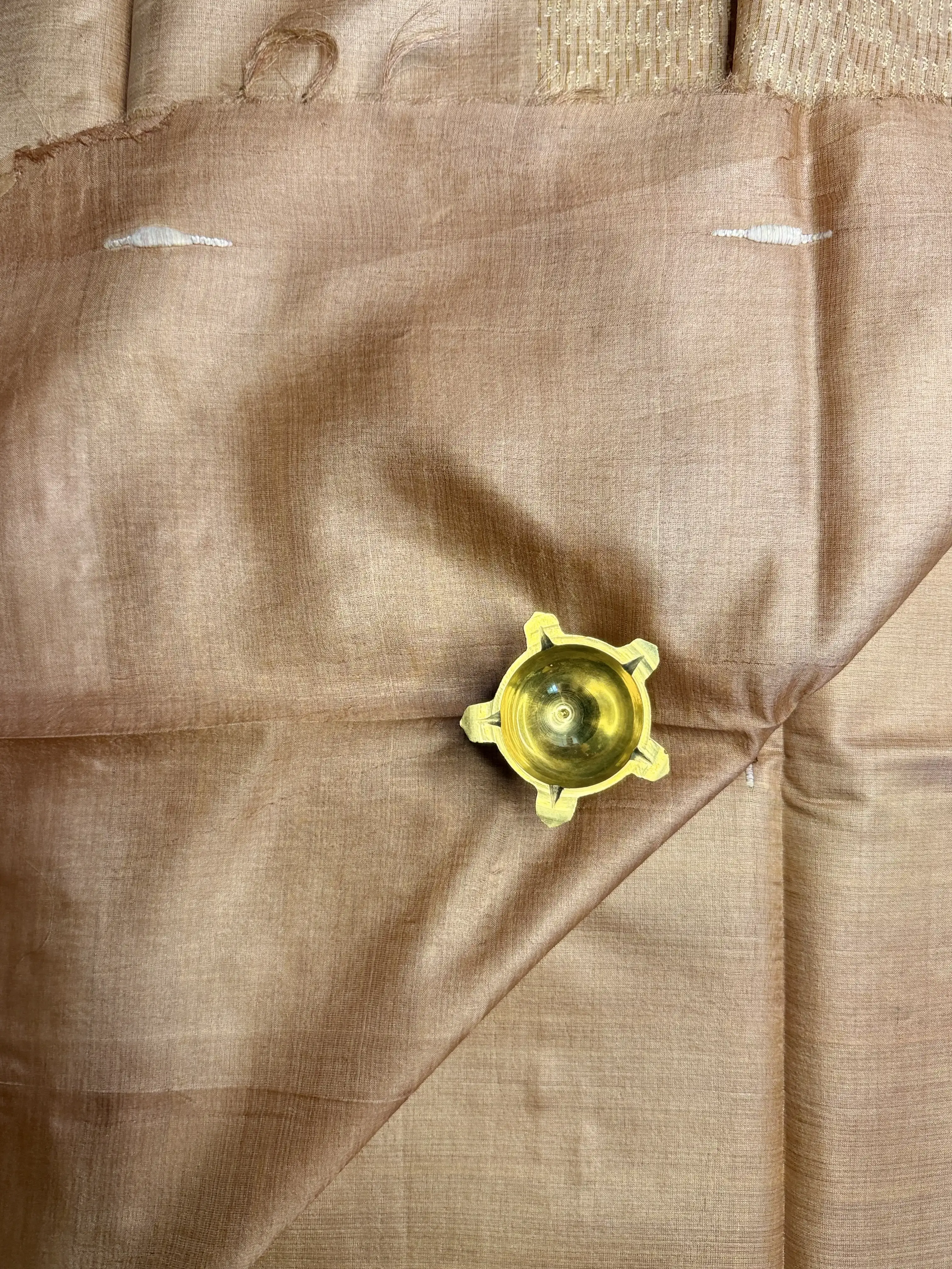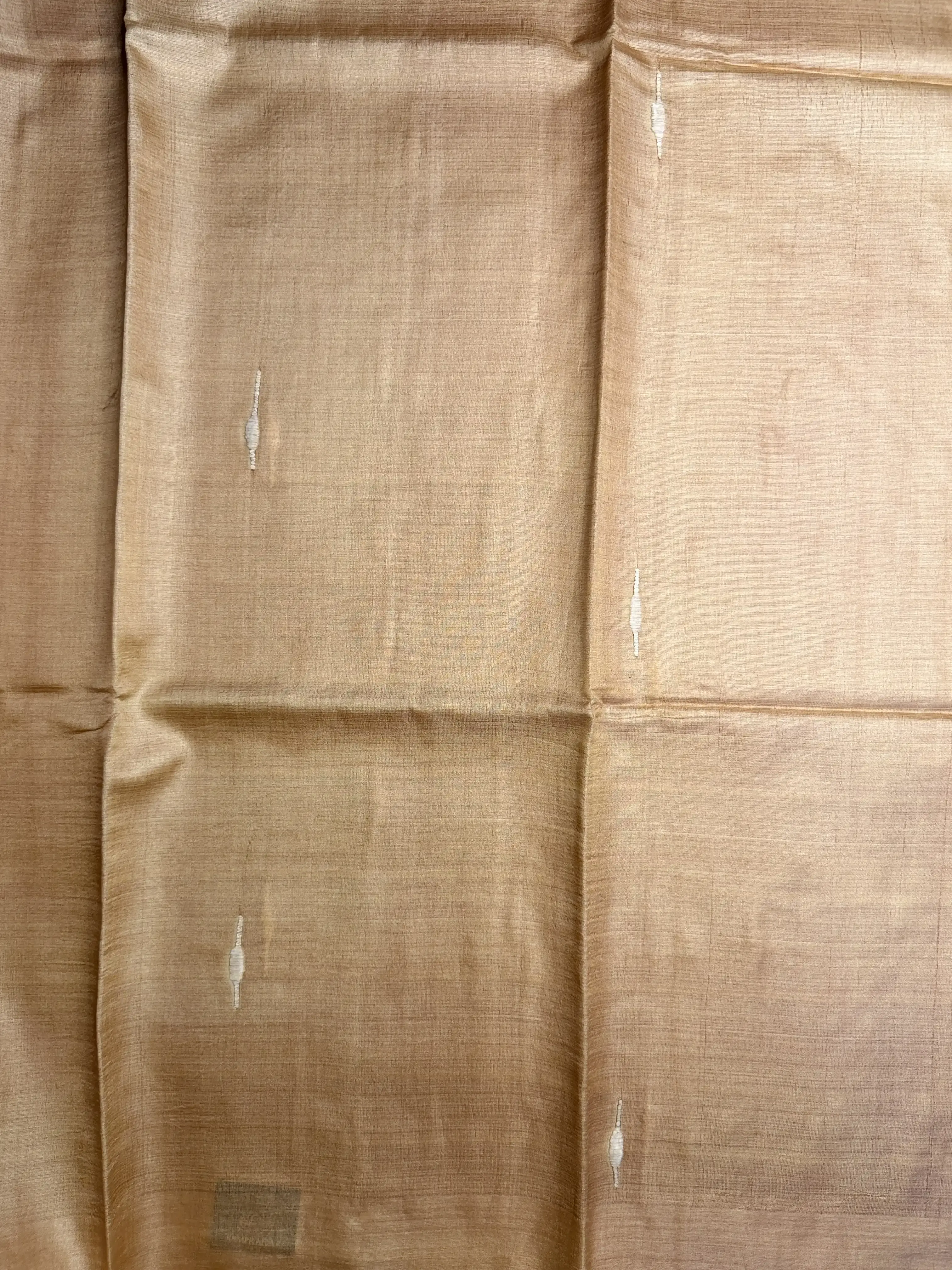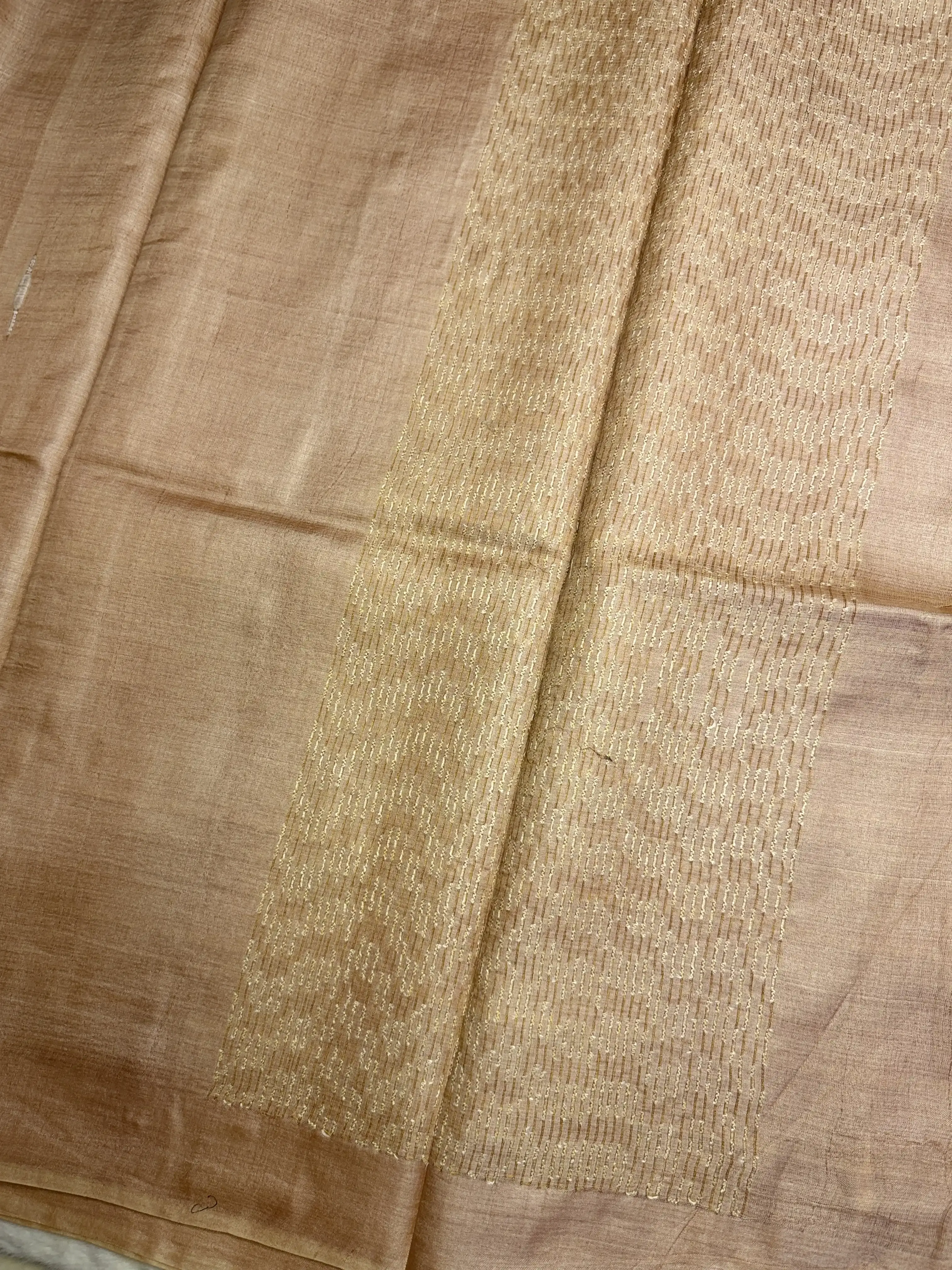 This pure Tussar silk saree features a soft beige body highlighted with delicate knot work, adding subtle texture and handcrafted charm. The natural sheen of Tussar silk gives it an understated luxury, perfect for those who love refined, minimal aesthetics.