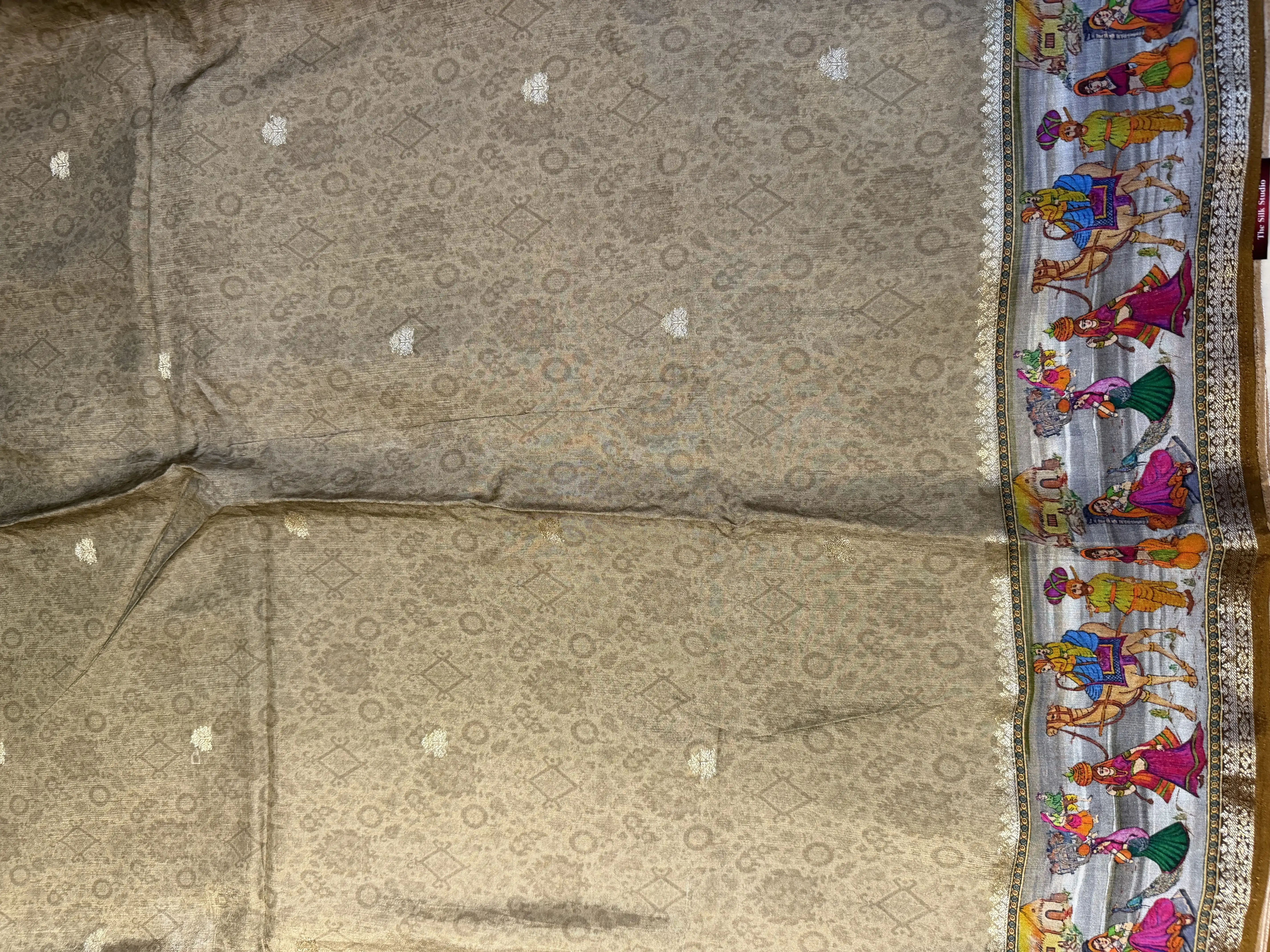 This Beige Semi Crepe saree is beautifully enhanced with a digital print border that adds a contemporary touch to its soft, flowy texture. The neutral base paired with vibrant detailing creates a look that’s refined yet eye-catching.