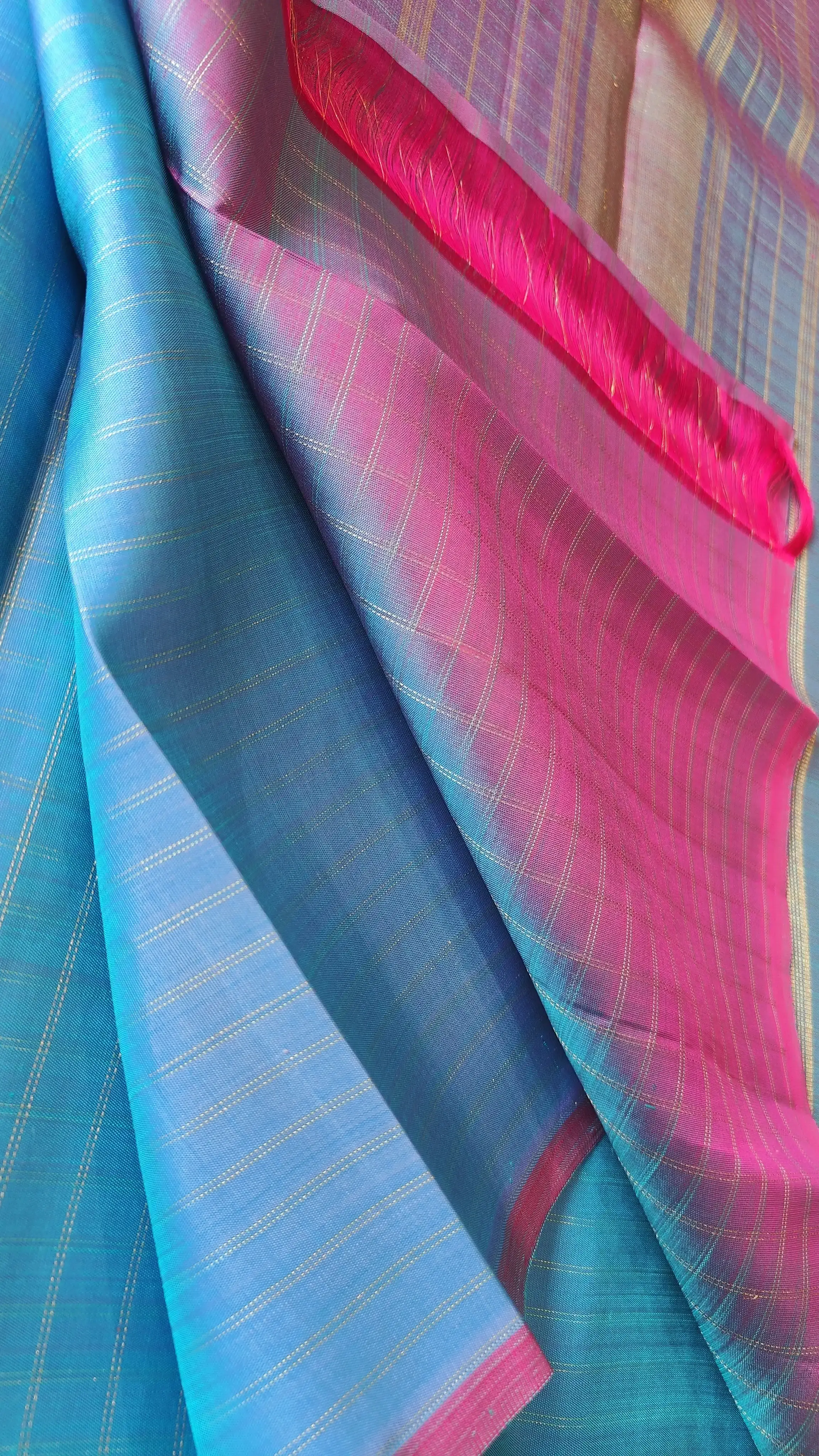 A graceful play of dual-shade blue checks woven on lustrous pure silk.