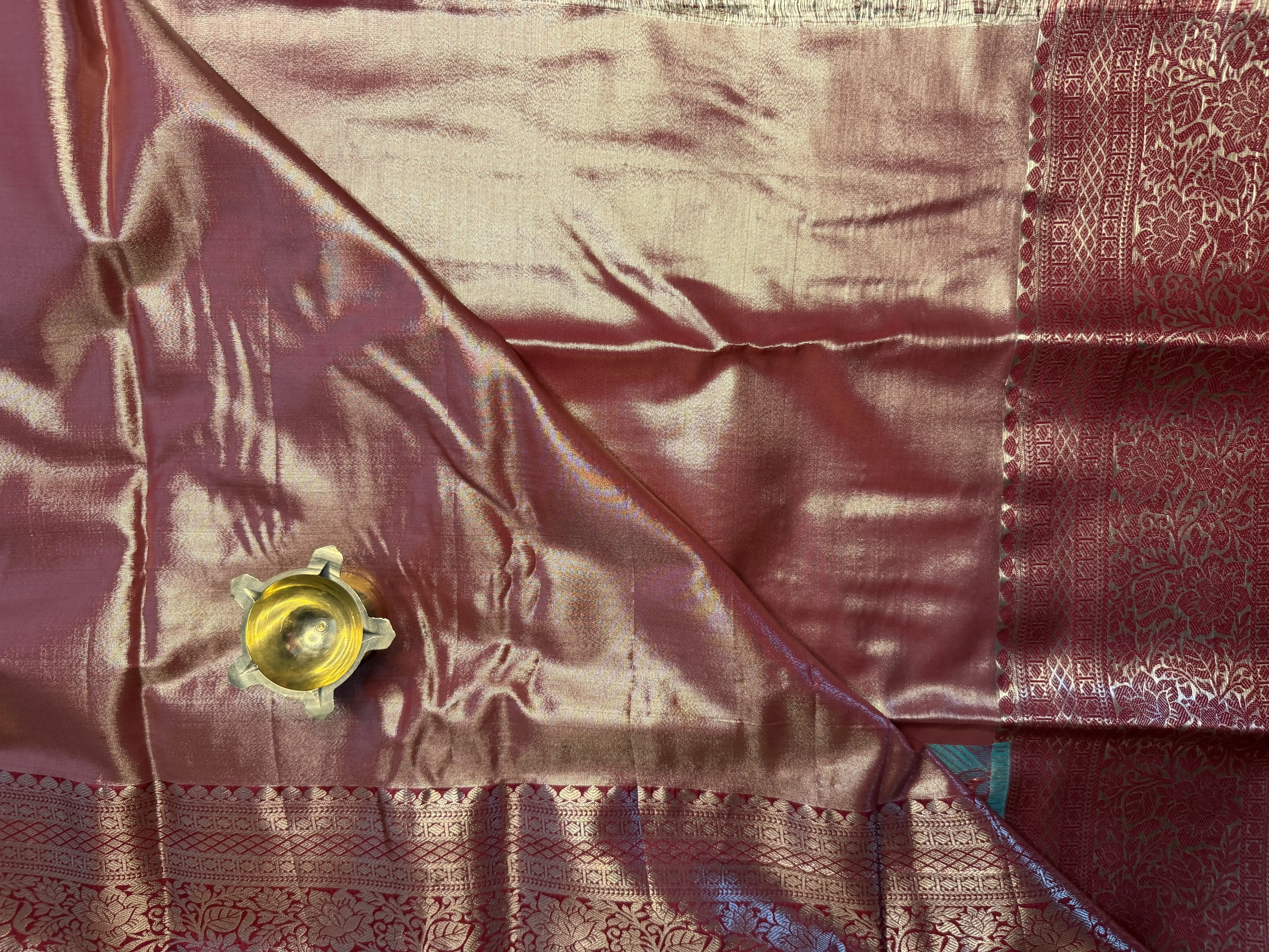 This blue & maroon tissue semi-silk saree is beautifully defined by a richly woven pallu, adding depth and festive grandeur to its graceful drape. The subtle sheen of tissue semi-silk enhances the contrast between the blue body and maroon accents, creating a refined and eye-catching look.