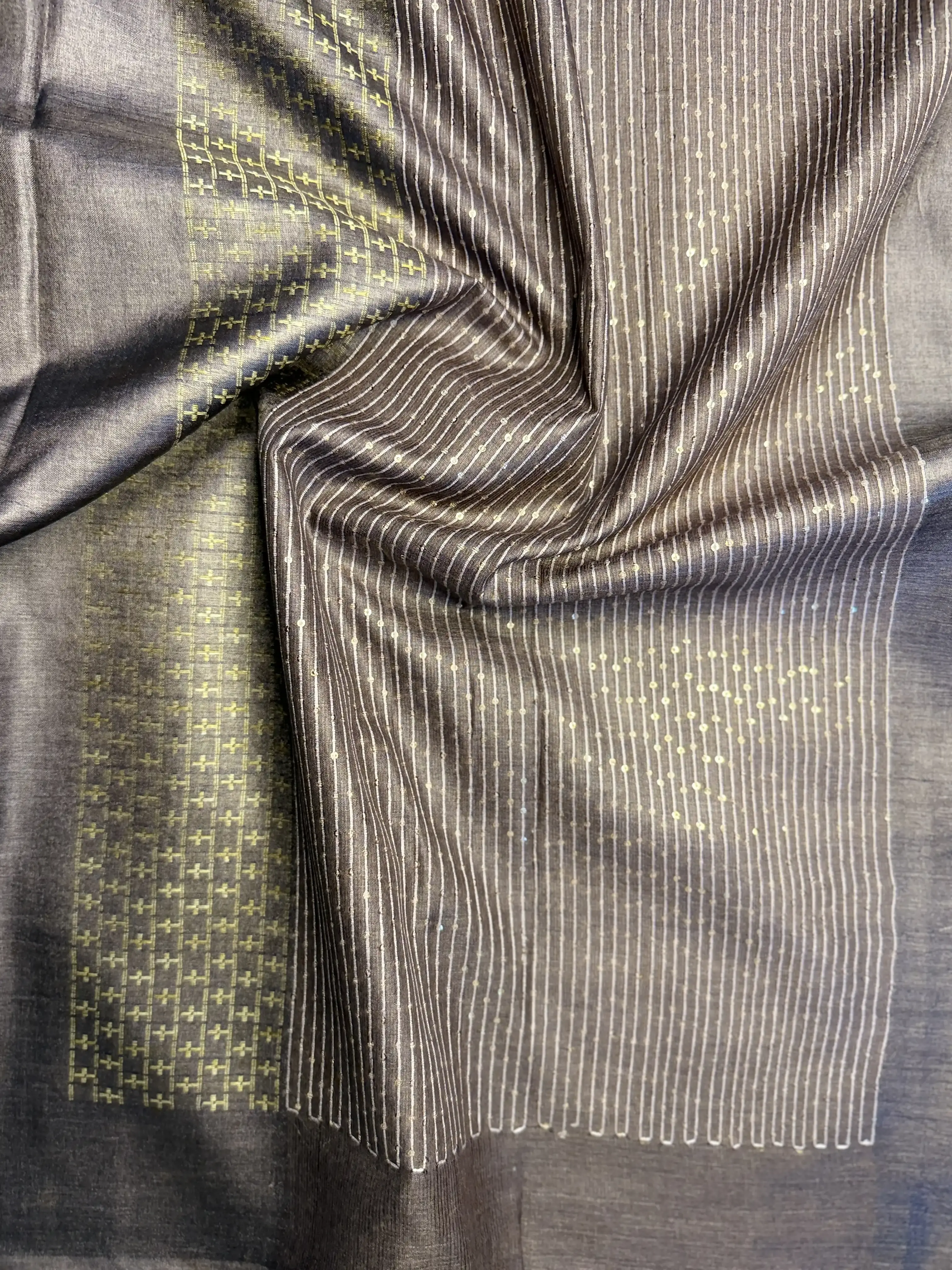 Chocolate Brown sequin work Pure Tussar Silk Saree