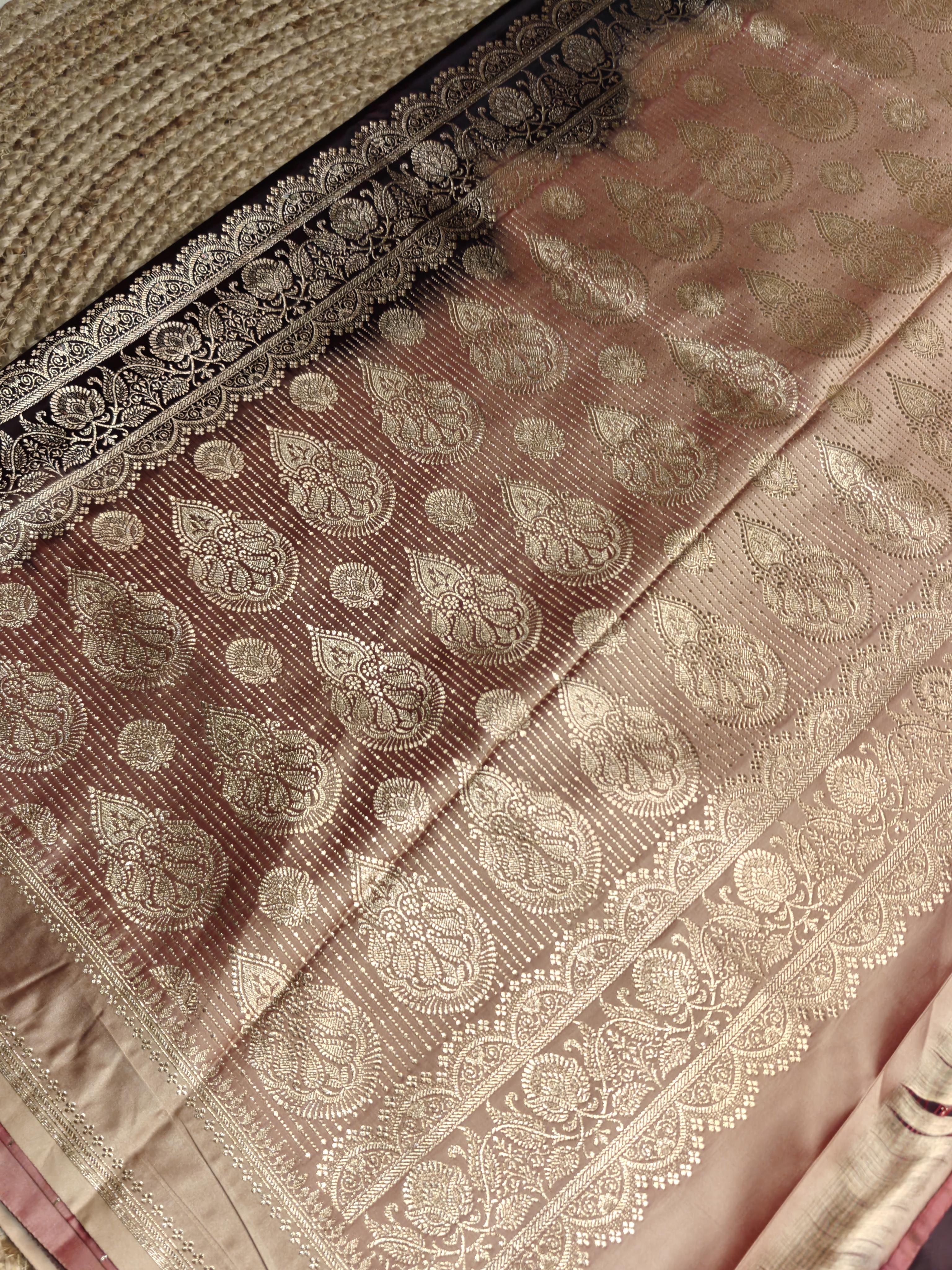 Chocolate Brown with Cream rich border Benaras silk saree