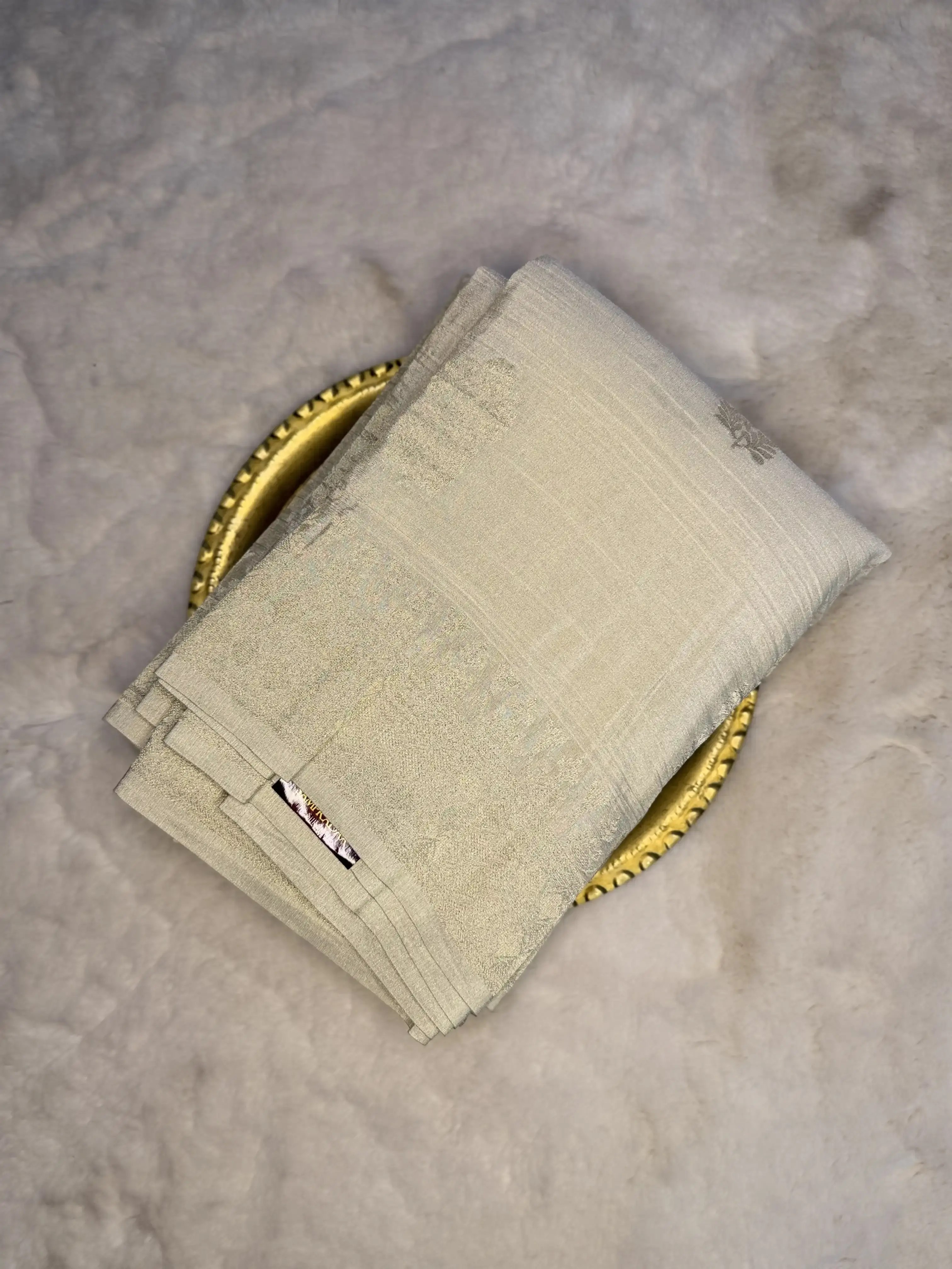 This cream crush viscose georgette fancy saree is adorned with delicate buttas, adding subtle texture and charm to its flowing drape. Lightweight with a beautiful fall, it’s perfect for parties, festive gatherings, and elegant evening occasions. A refined choice that blends modern style with timeless femininity 🤍✨