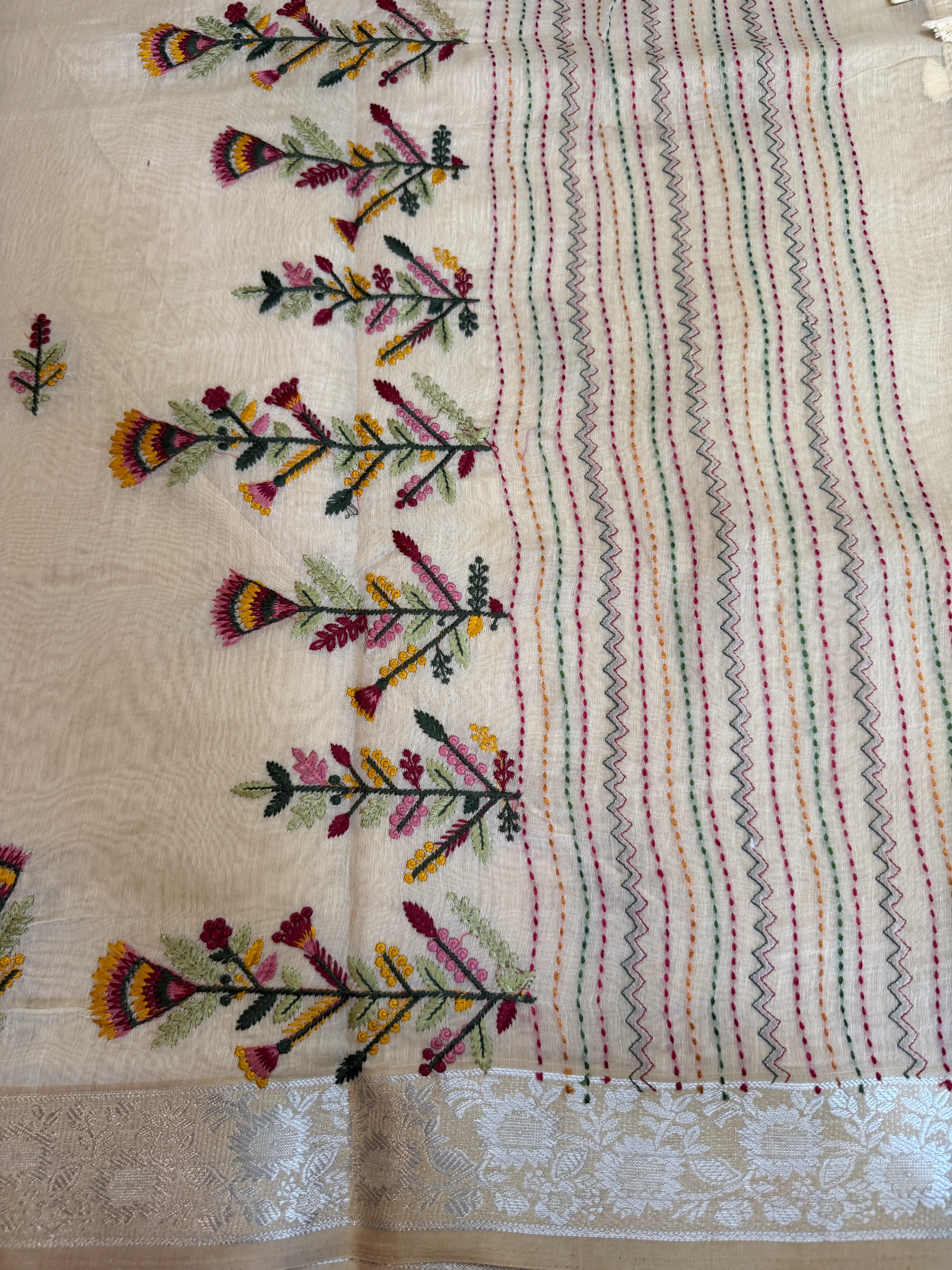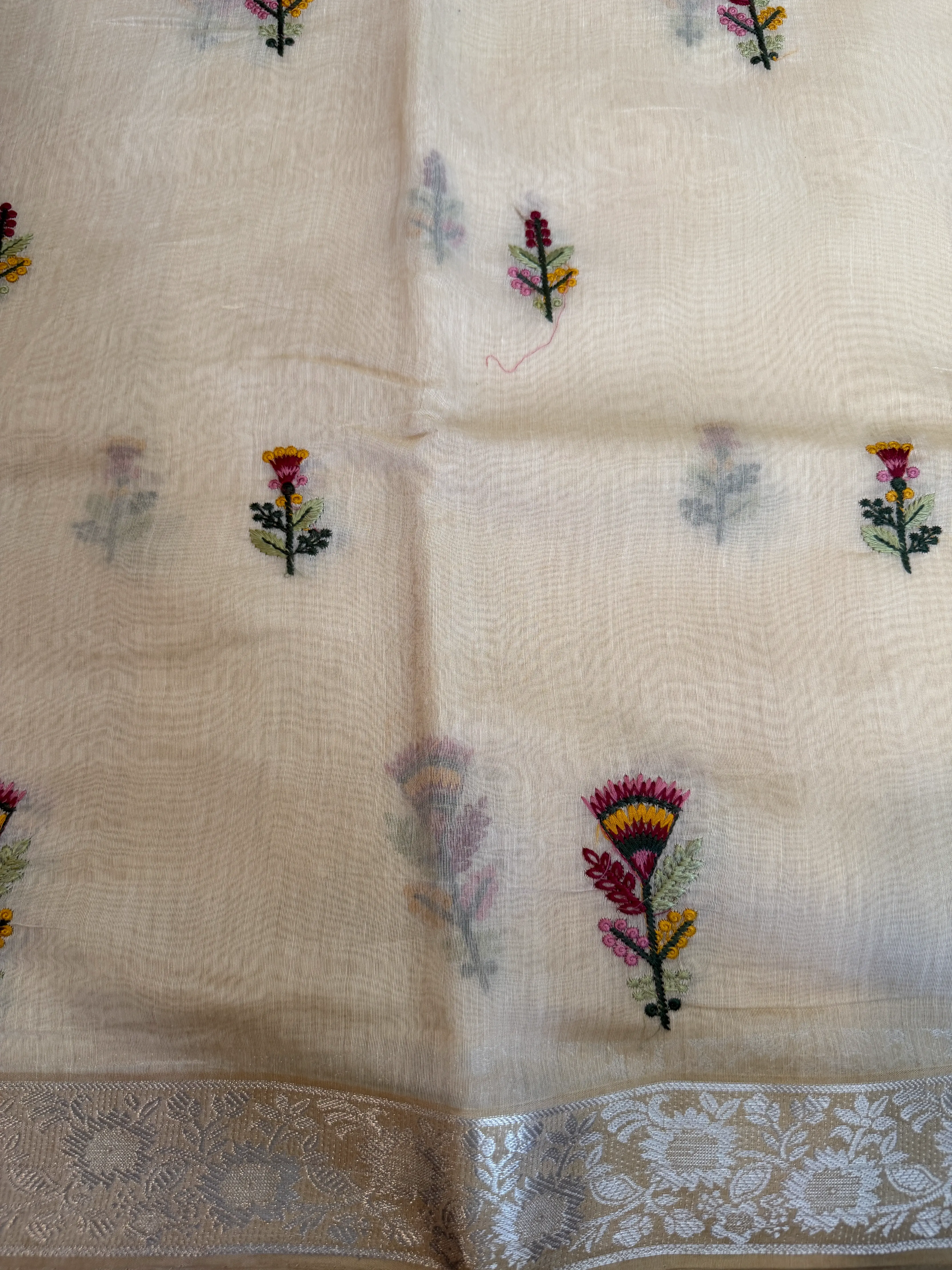 Cream Floral thread work fancy saree