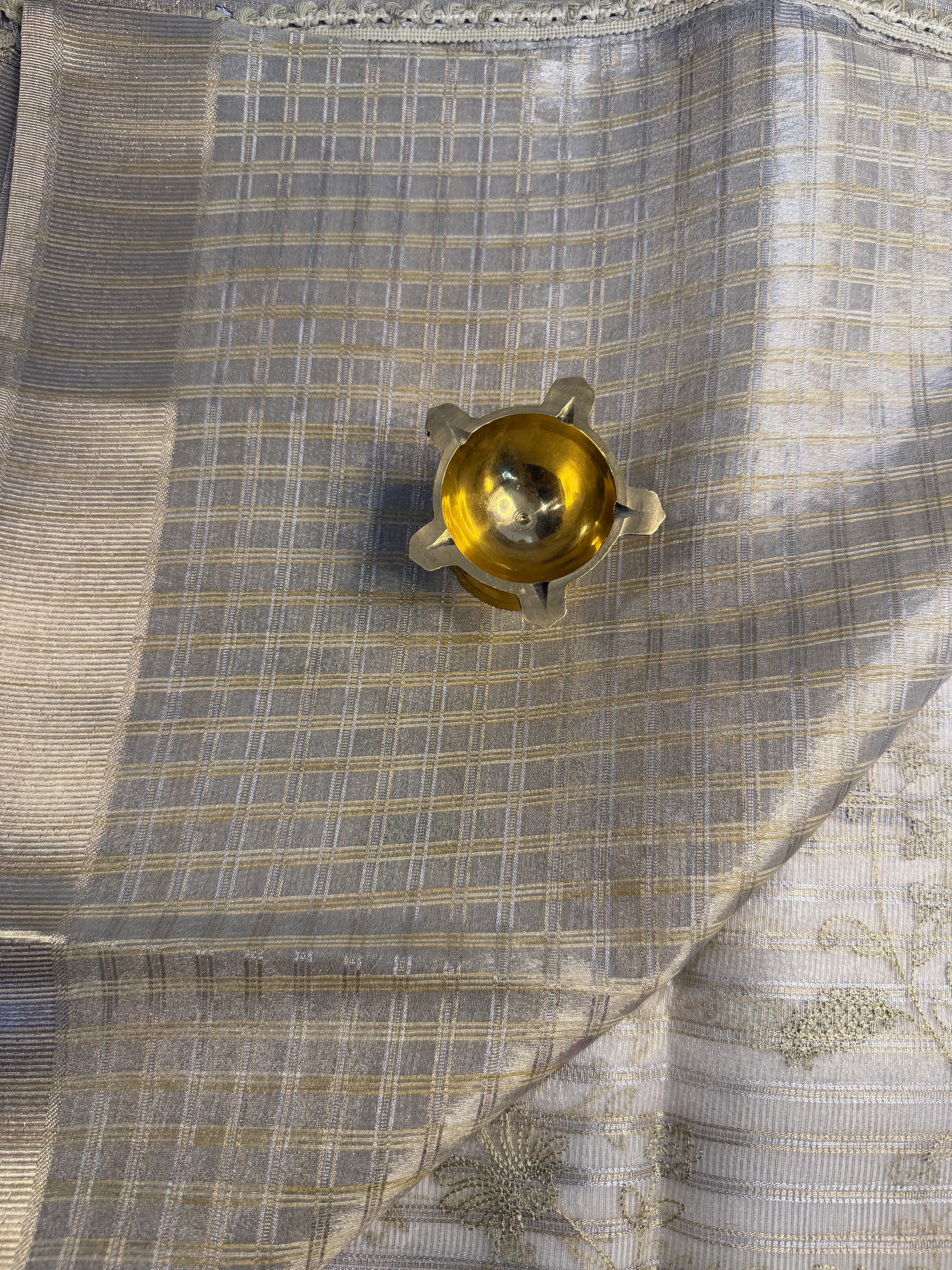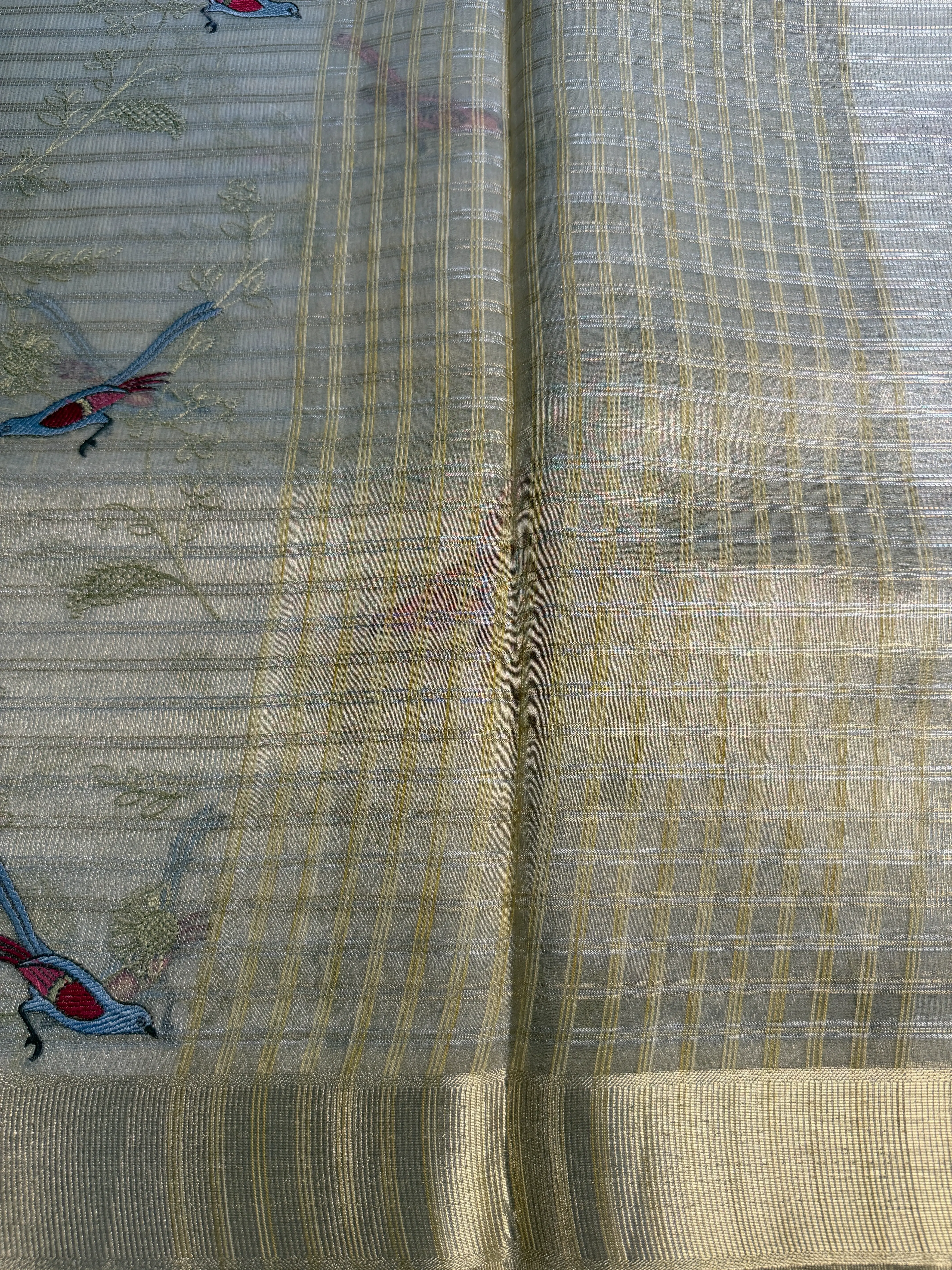 Cream Tissue Organza with Bird thread work Saree