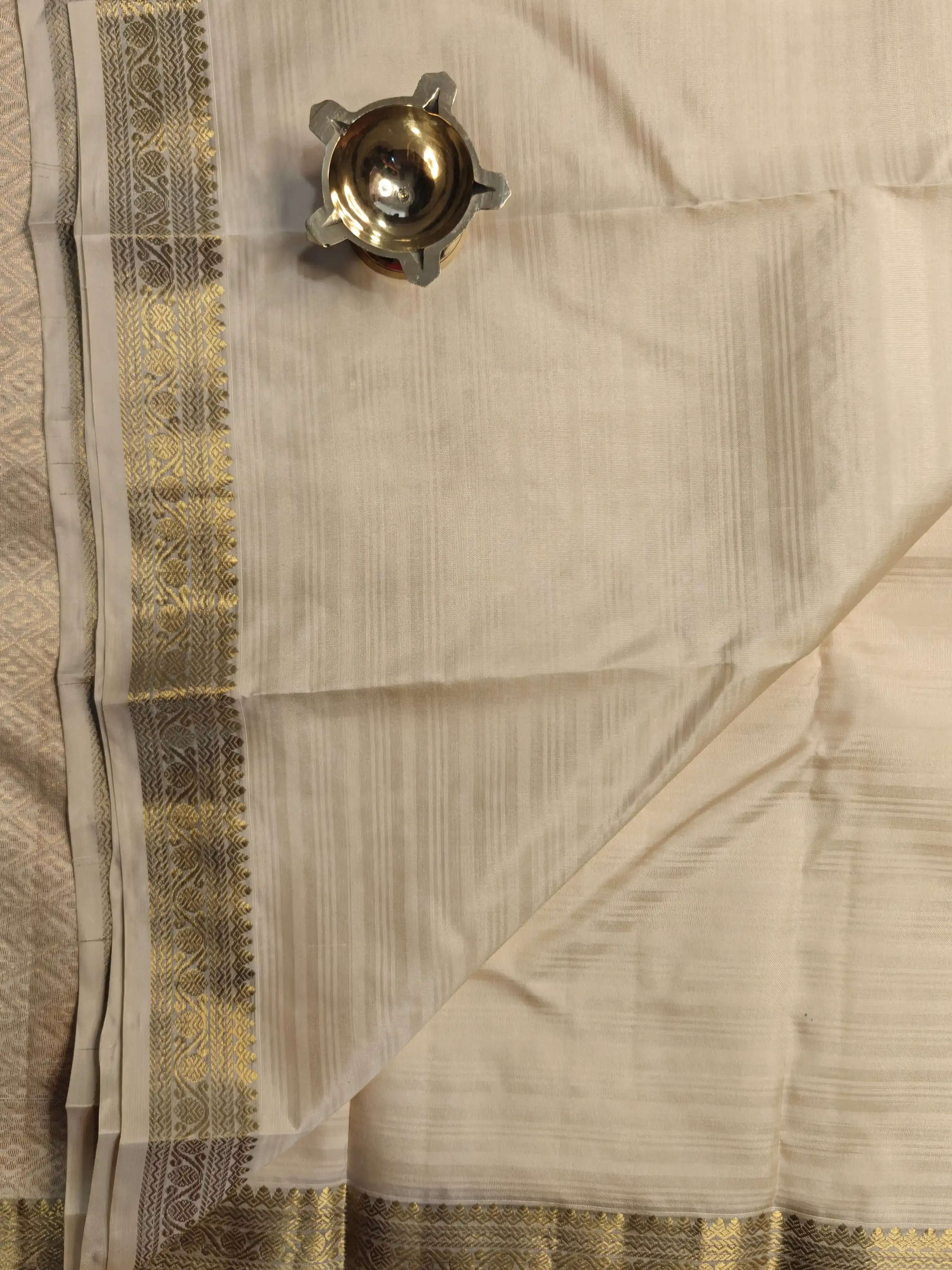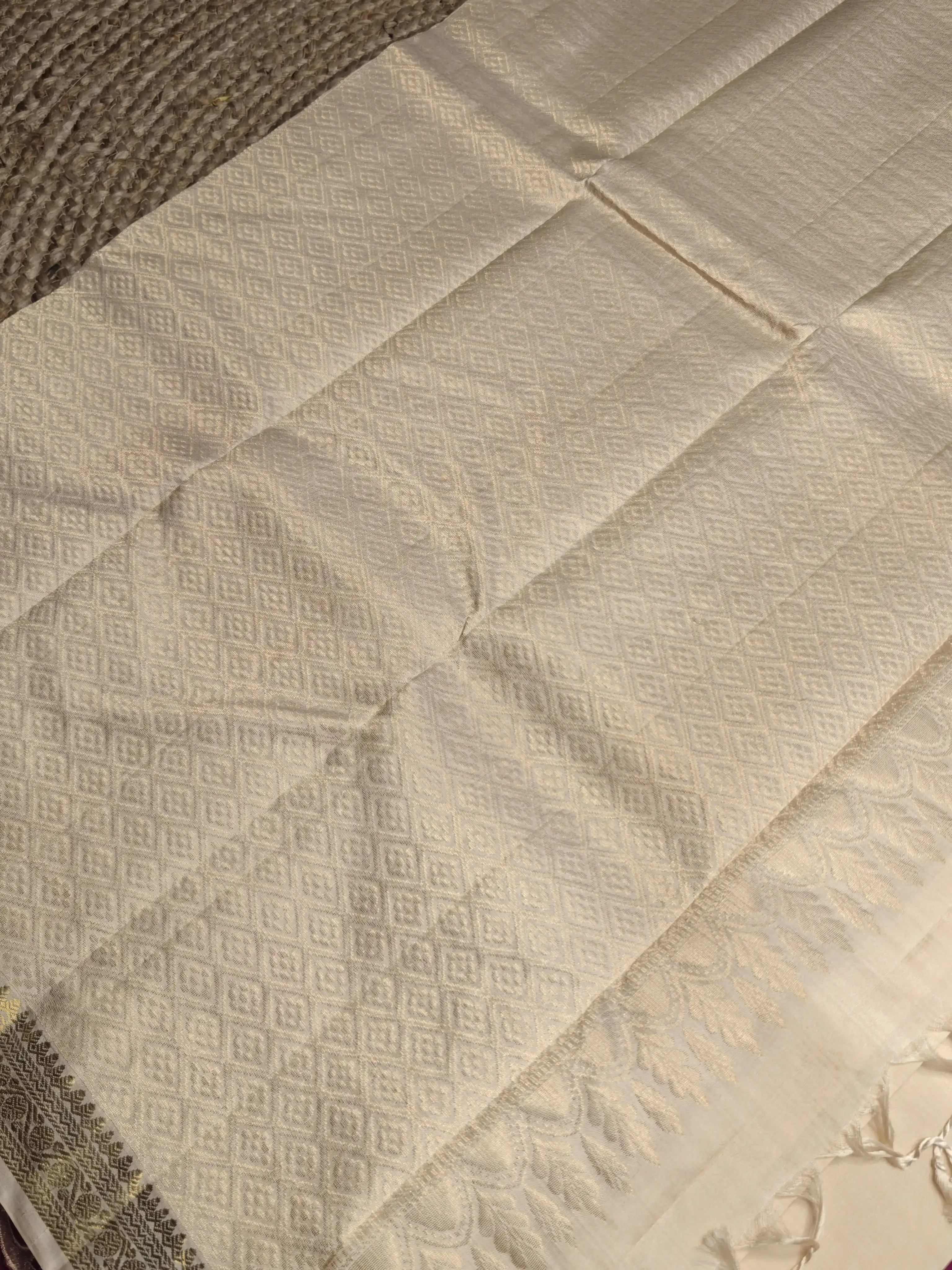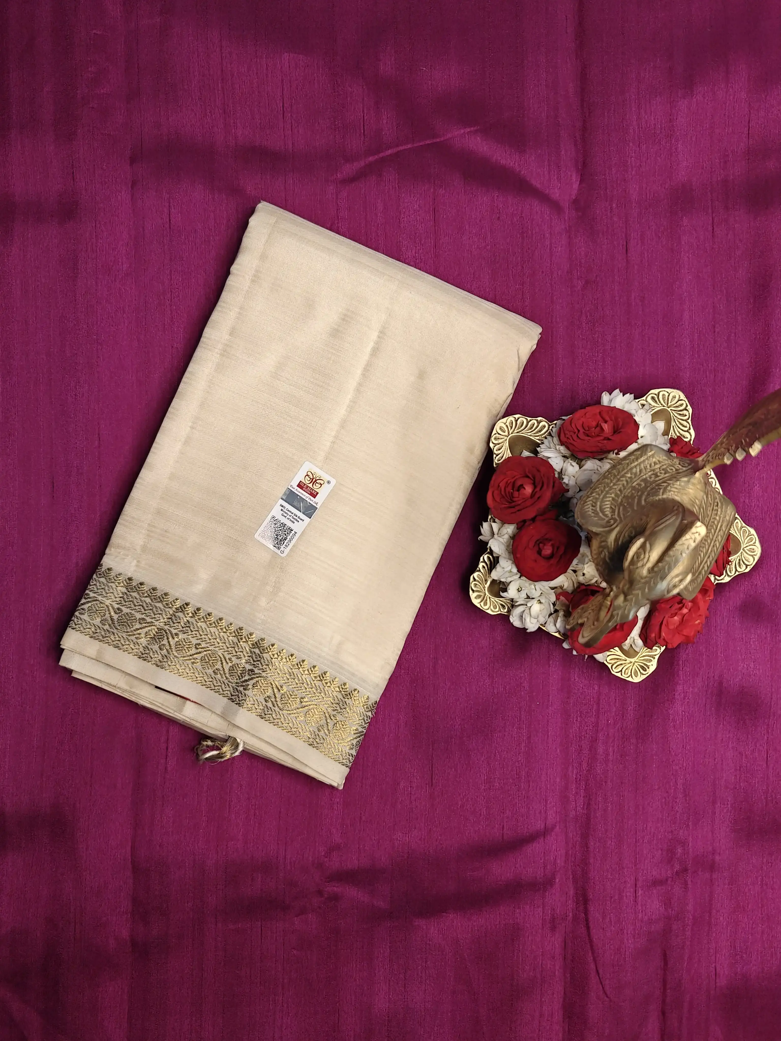 A luxurious cream soft silk saree that embodies timeless elegance and refined grace. The serene cream body is beautifully complemented by an elegant border, adding just the right touch of richness without overpowering its subtle charm. With its smooth texture, gentle sheen, and fluid drape, this saree is perfect for weddings, festive celebrations, and sophisticated occasions where understated luxury makes a lasting impression.