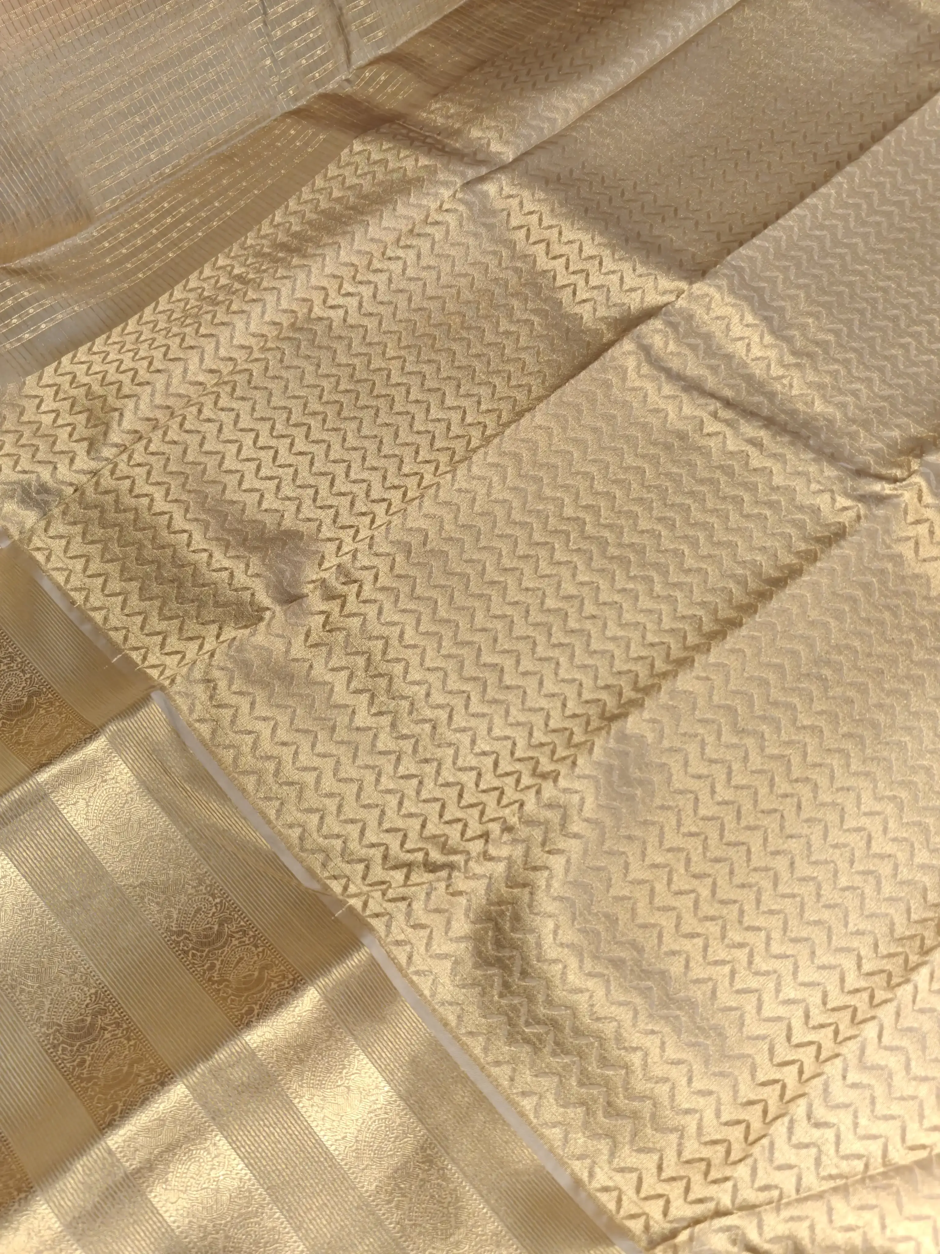 Soft beige and cream tones come together beautifully in this elegant silk saree, finished with a shimmering tissue border that adds a hint of luxury ✨ Perfect for weddings, festive moments, and graceful day events, this saree is all about understated elegance and timeless charm.