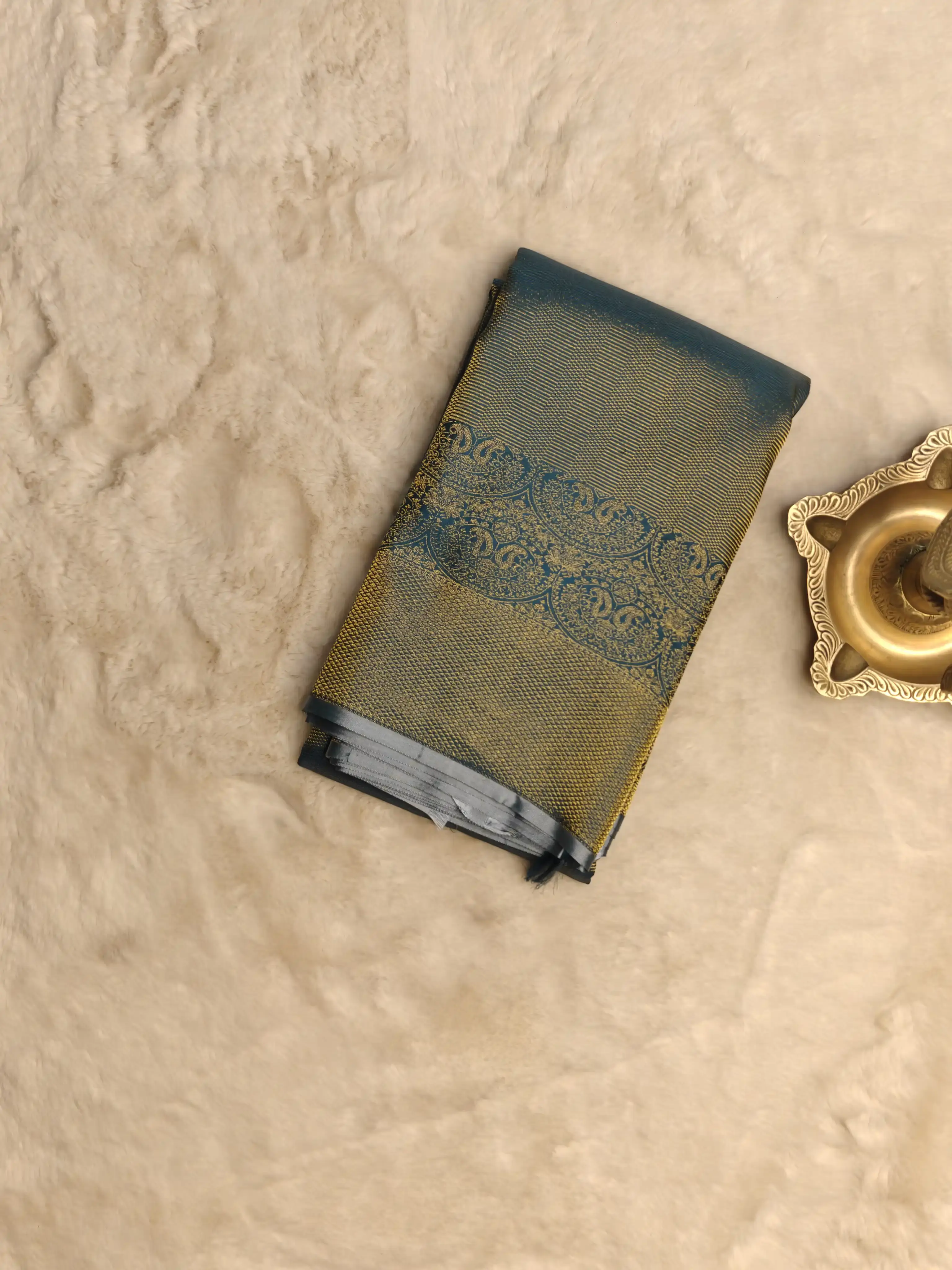 Finished with a contemporary border, the saree strikes a perfect balance between tradition and modern design. Crafted in fine silk with a fluid drape and rich feel, it is ideal for weddings, receptions, and grand celebrations.