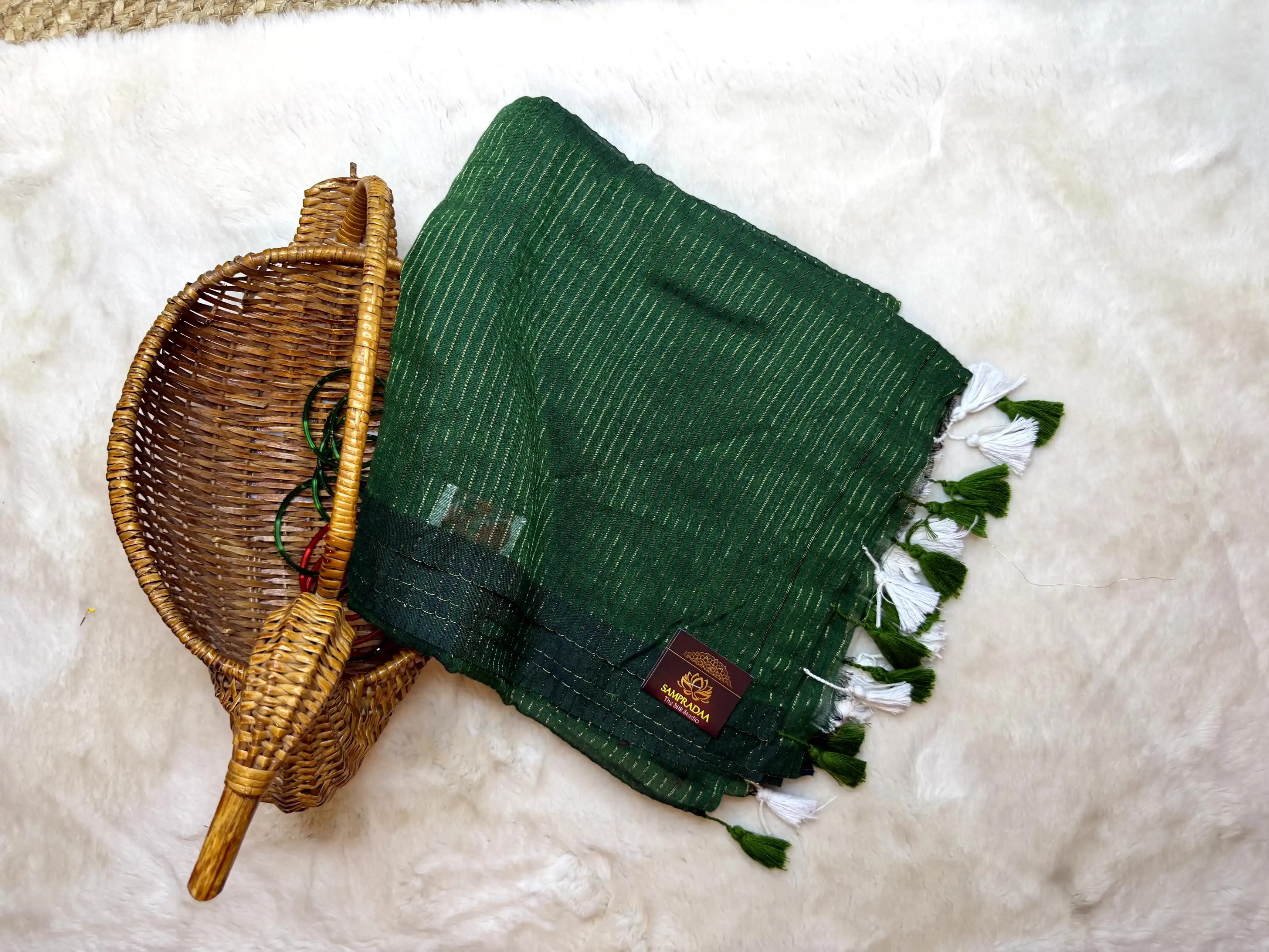 This dark green cotton saree features delicate sequin work, adding a hint of shine to its rich, earthy tone. Comfortable yet stylish, it’s ideal for festive evenings, celebrations, and chic ethnic outings — a refined blend of simplicity and contemporary charm 💚✨