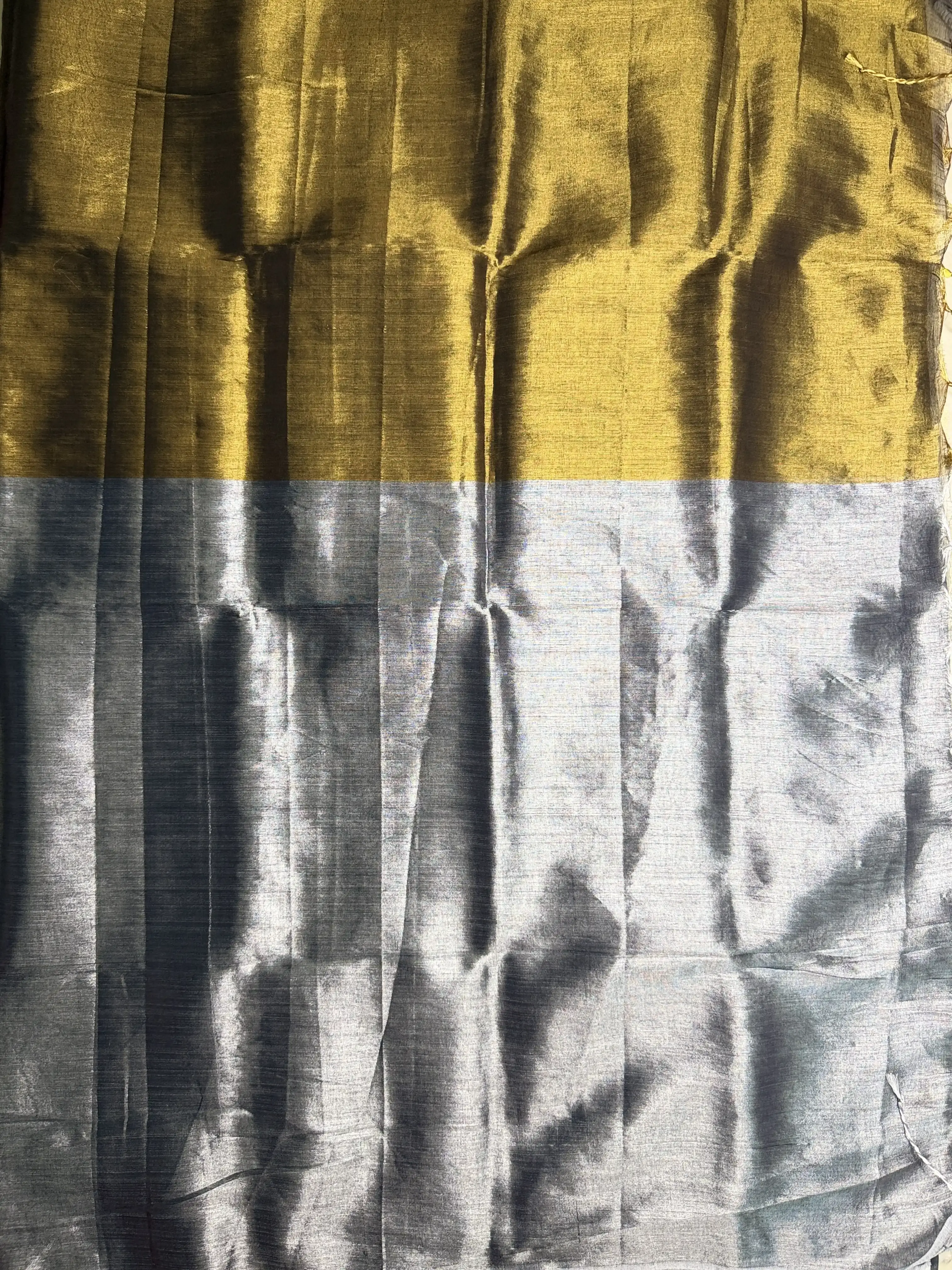 This gold & silver half-and-half tissue saree is a stunning play of shimmer and contrast, blending two timeless metallic tones in a graceful drape. The luminous tissue fabric enhances its regal appeal, making it perfect for weddings, receptions, and grand festive occasions. A statement saree that embodies luxury, sophistication, and modern glamour ✨