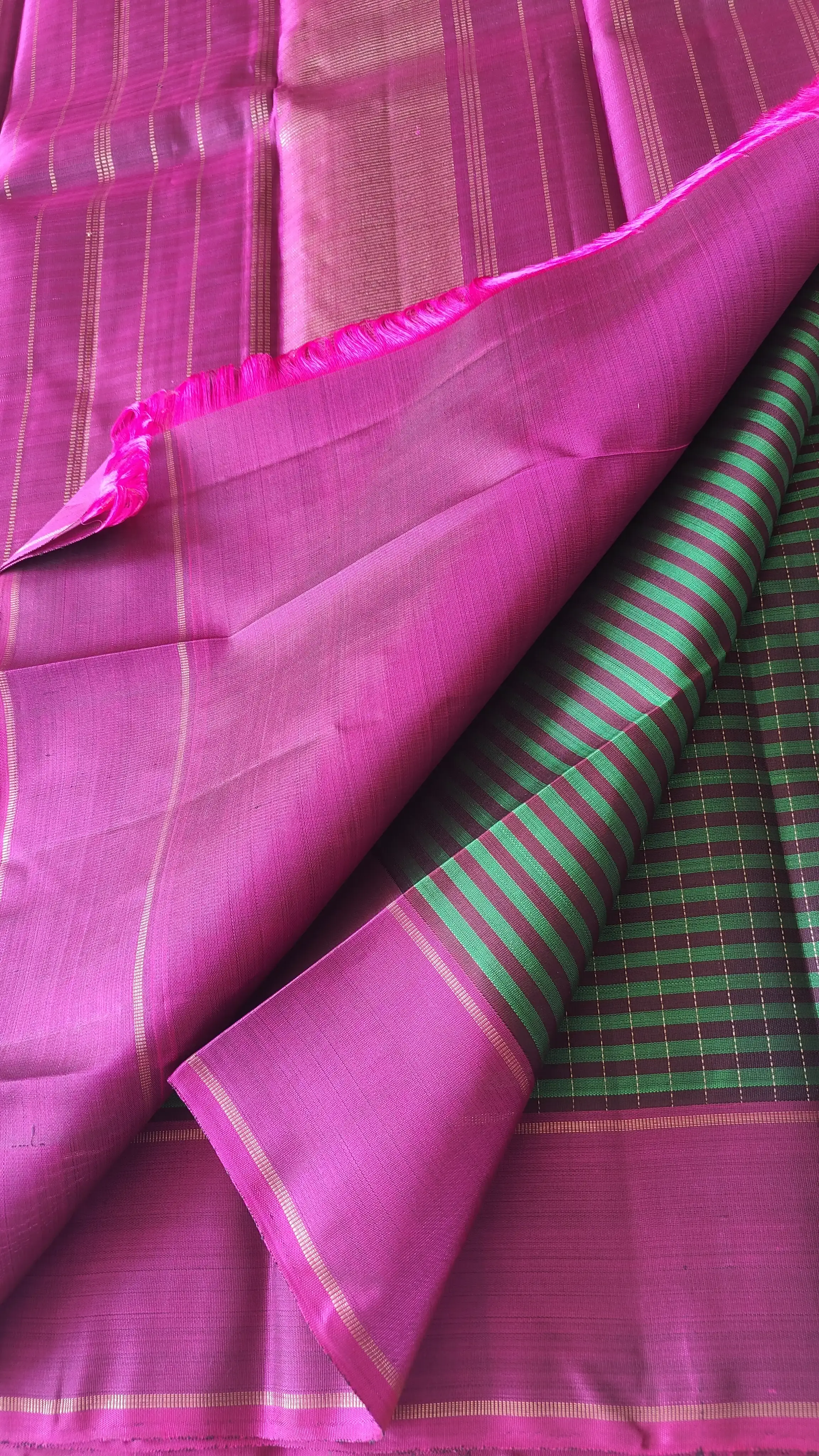 Green and brown checks pattern Pure Kanchipuram silk saree