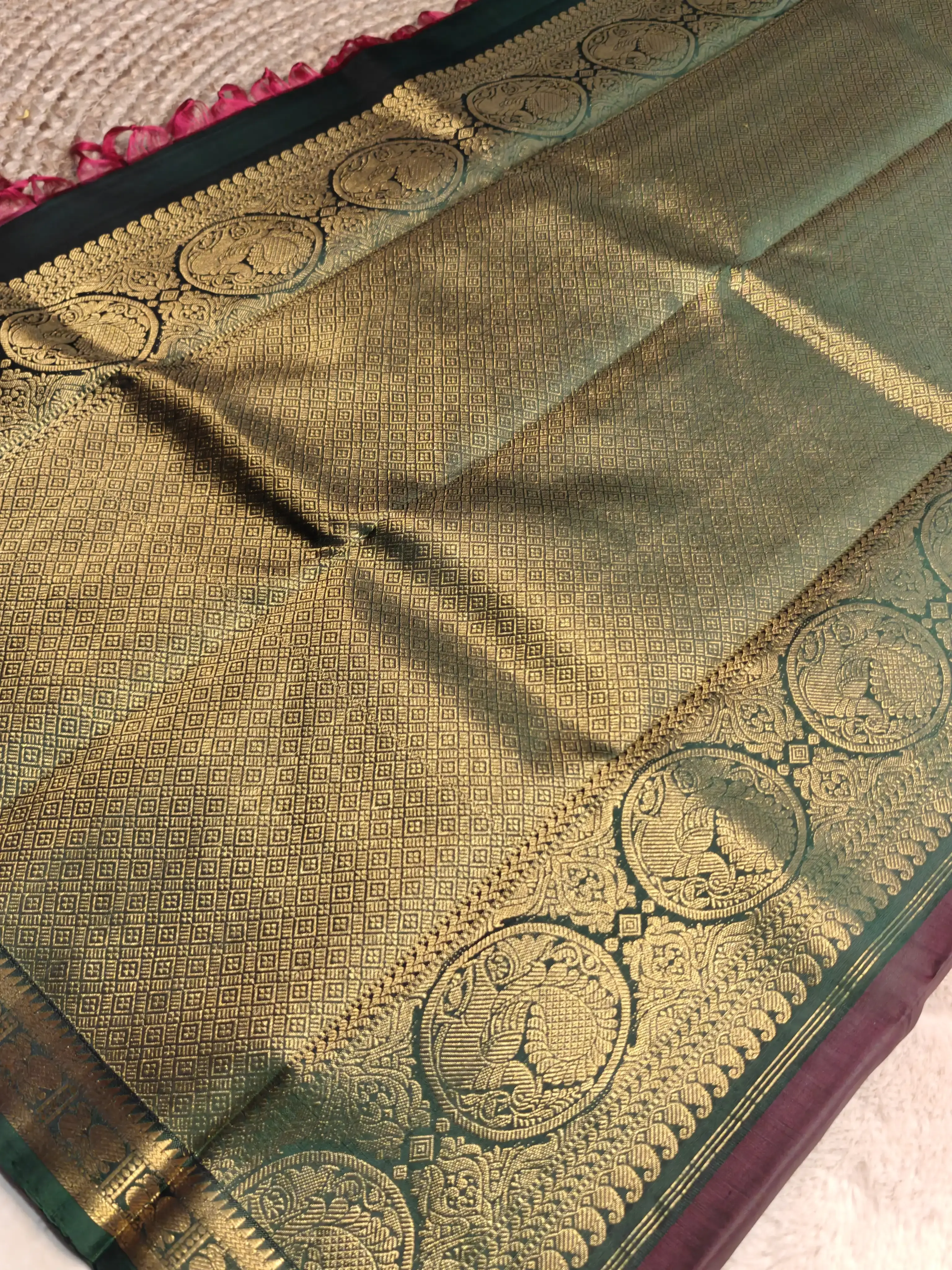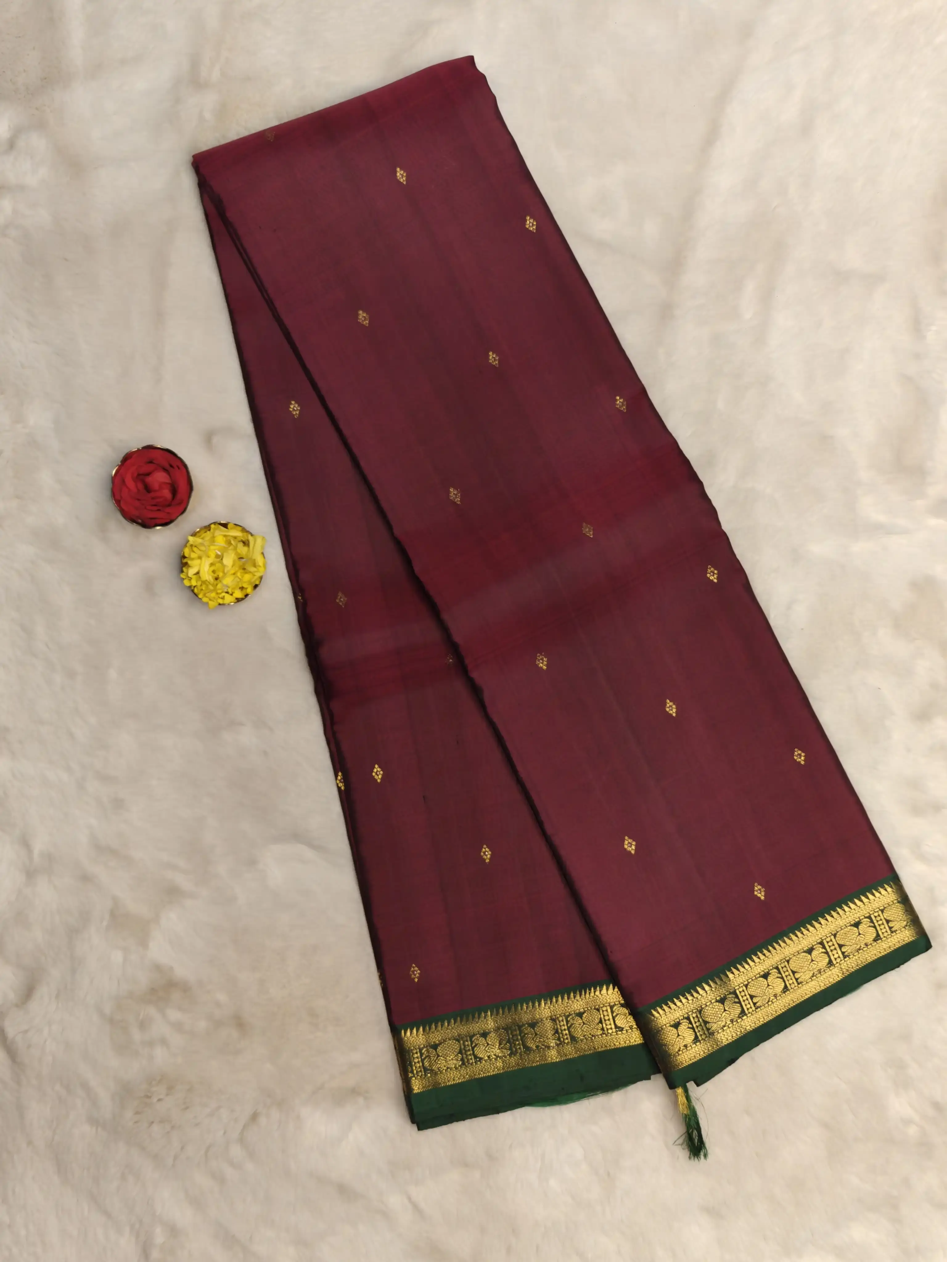Maroon and green border small motifs silk saree