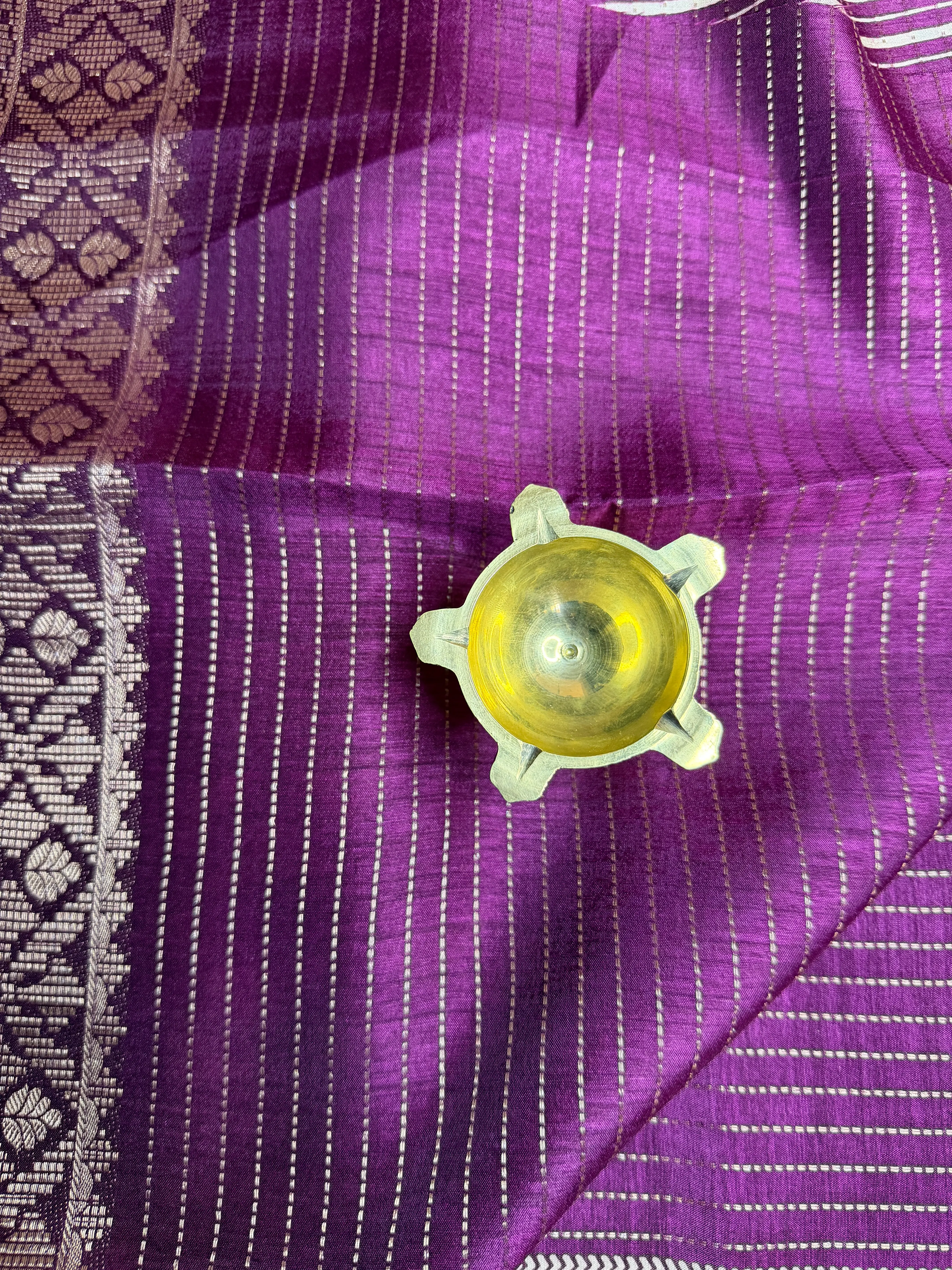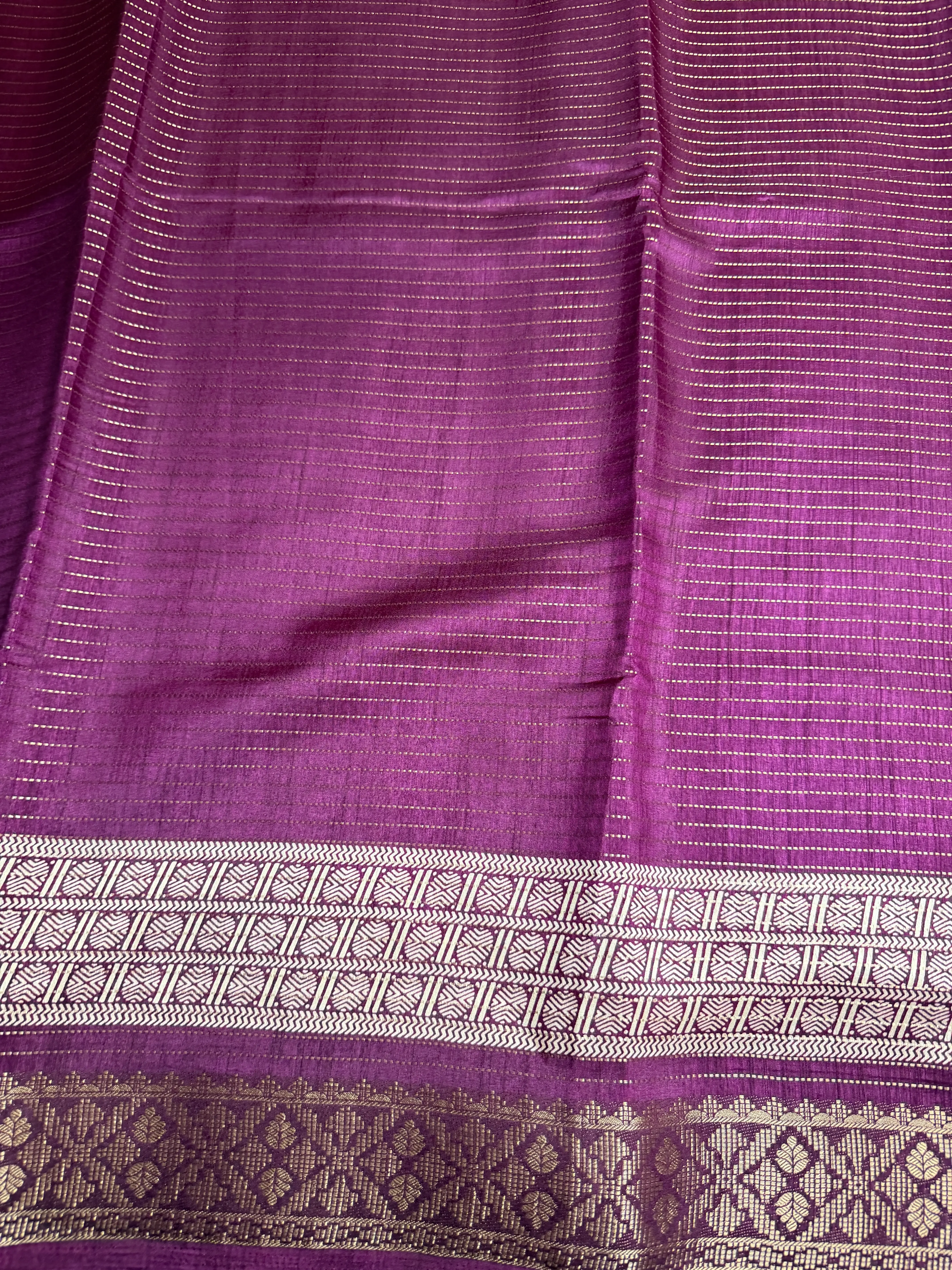 This maroon fancy saree, adorned with elegant stripes across the body, is beautifully framed by a striking double border that adds depth and grandeur. The rich pallu completes the look, making every movement a statement of timeless luxury.