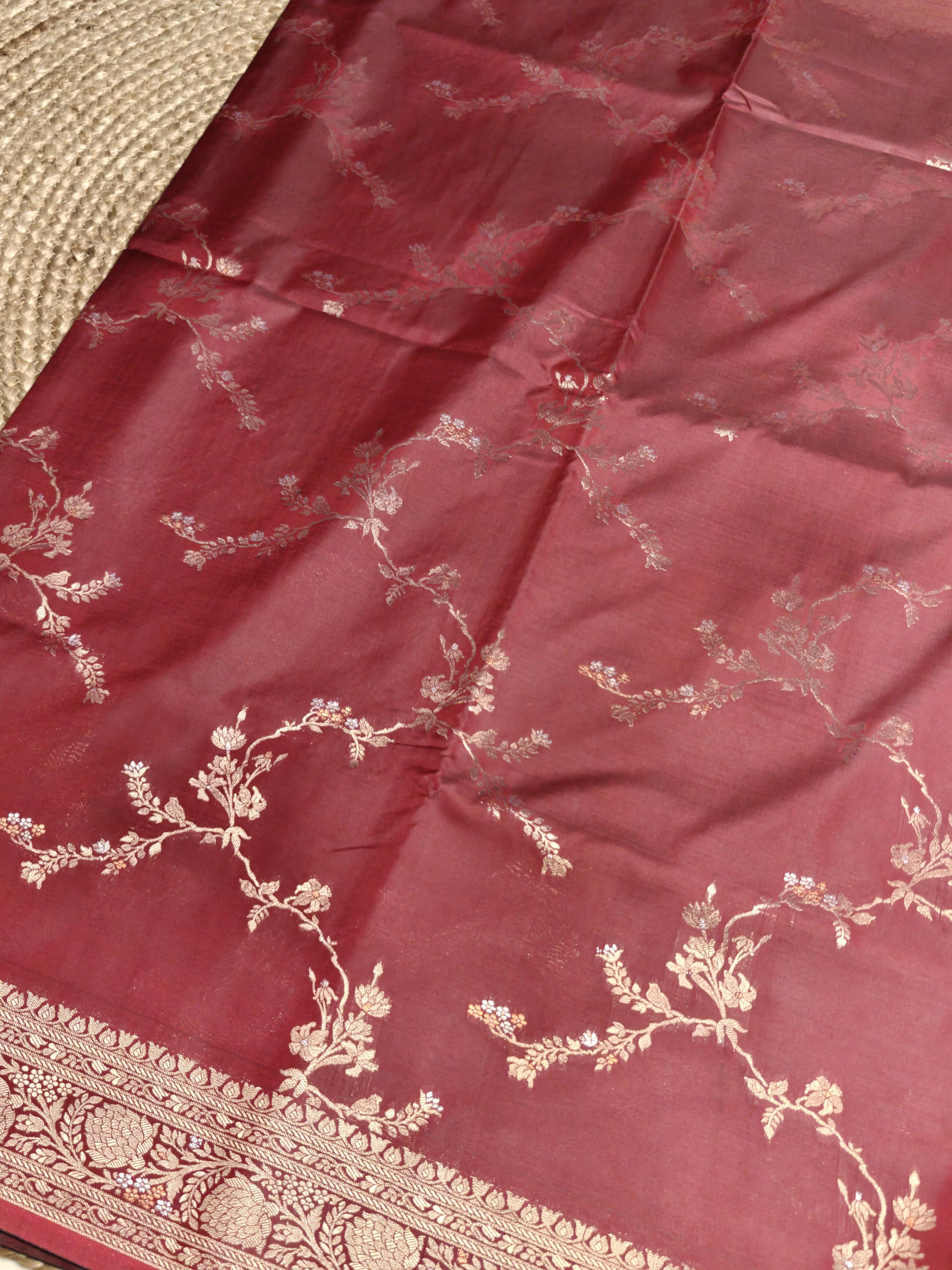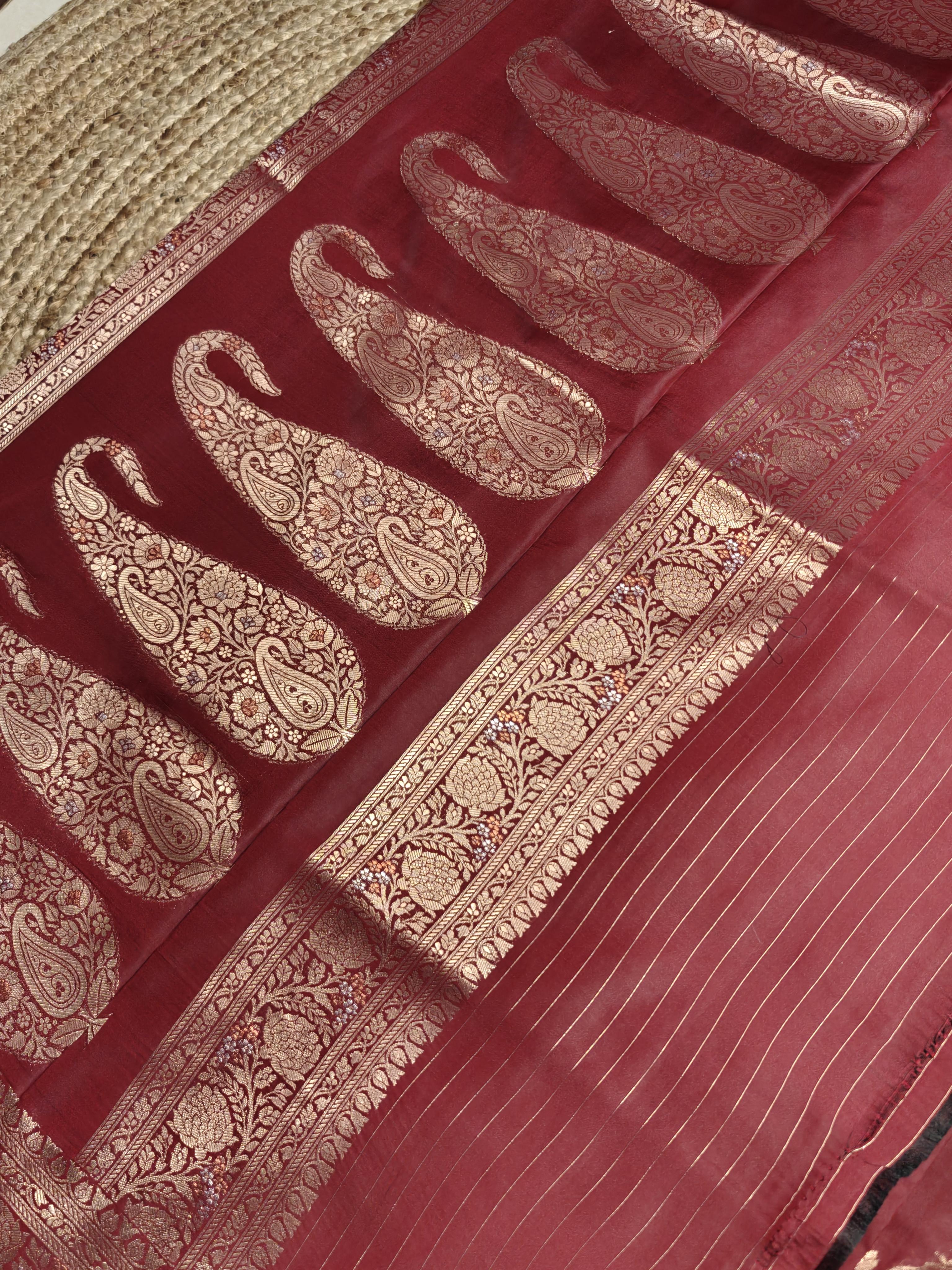 Maroon jaal work with rich border and pallu benaras saree