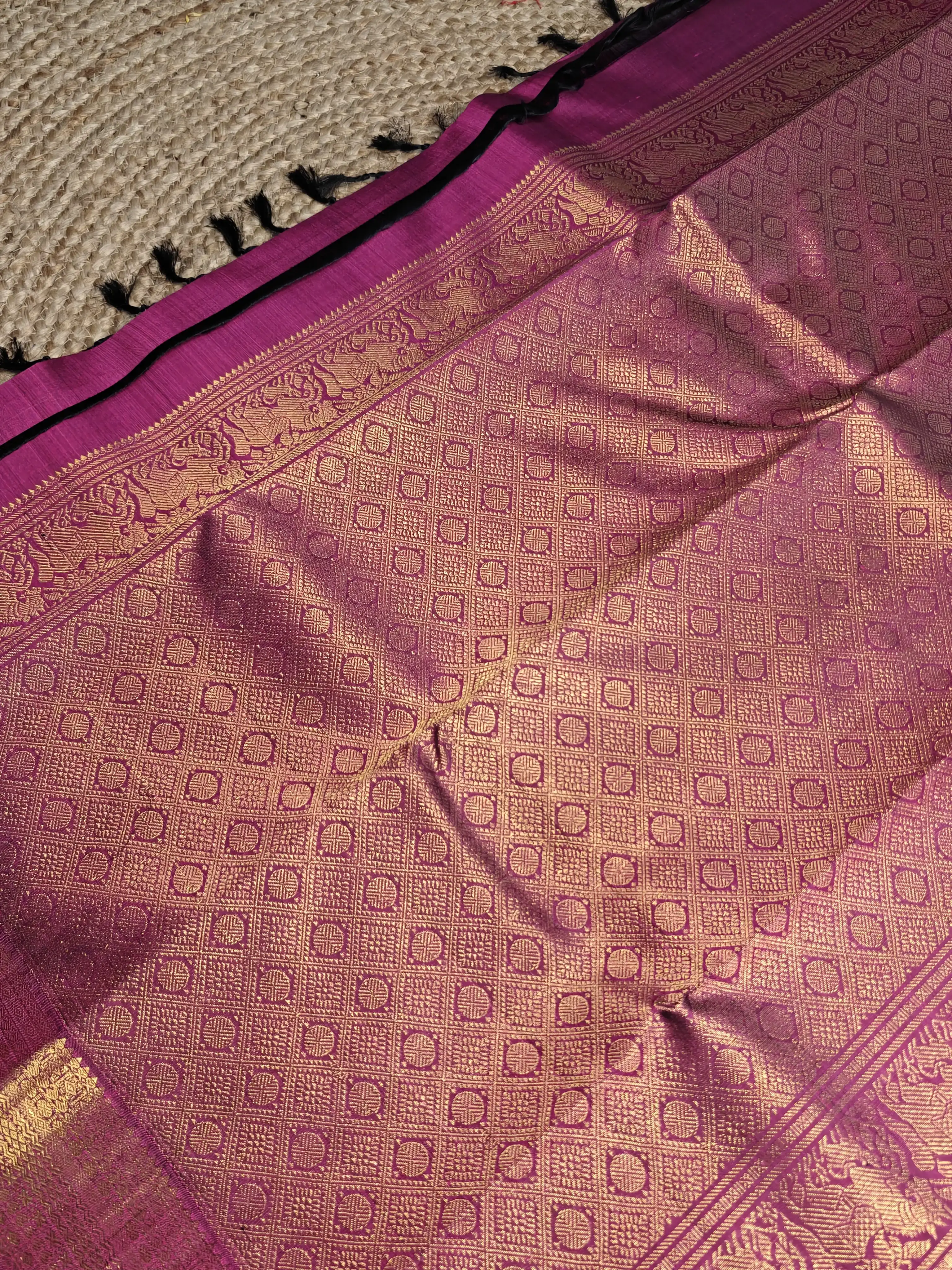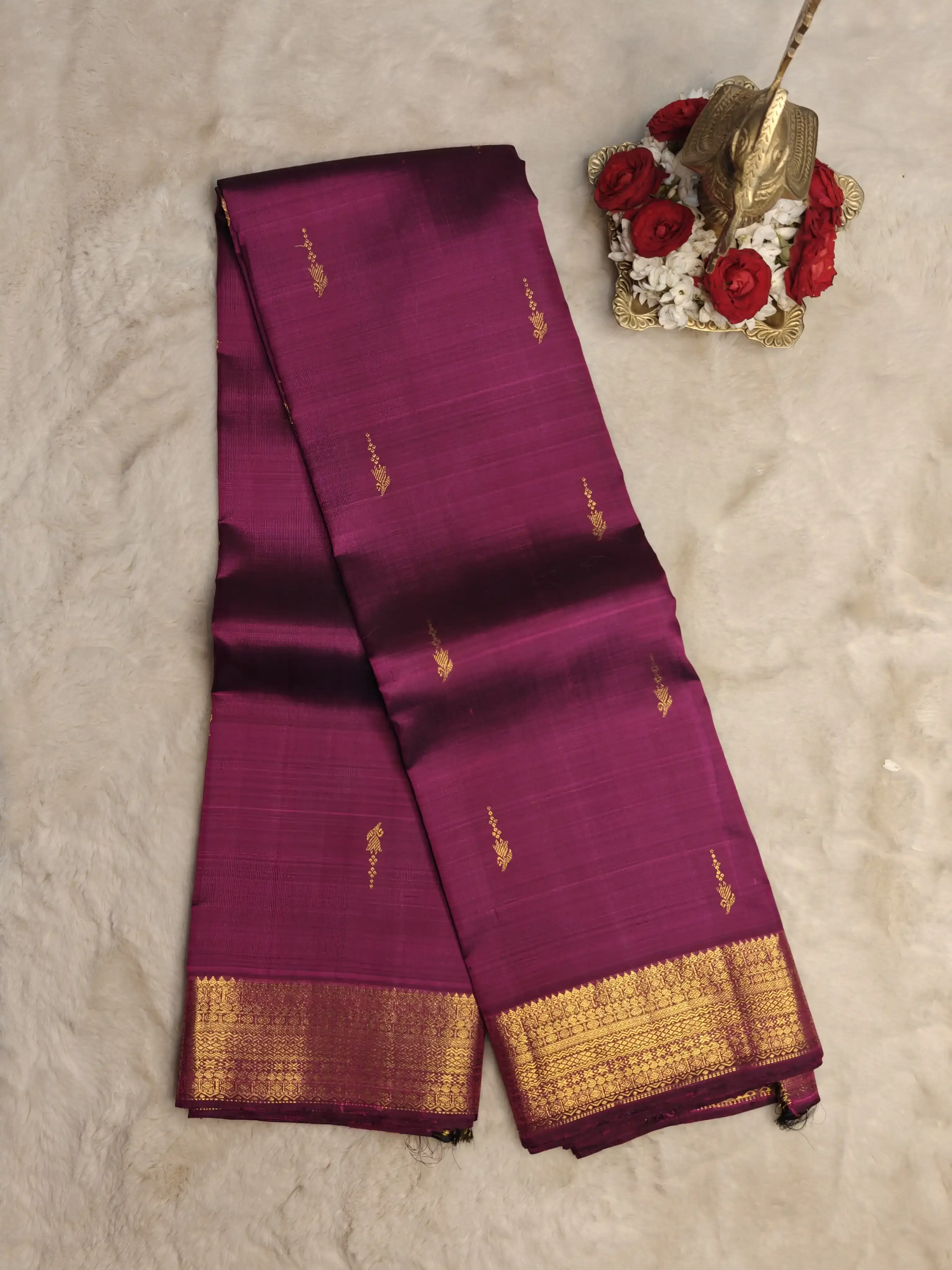 This maroon pure silk saree is gracefully adorned with delicate motifs woven across the body, reflecting classic artistry and heritage charm. The richly detailed border and grand pallu enhance its regal presence, making the saree truly majestic. Ideal for weddings, temple rituals, and auspicious festivities, this drape embodies elegance, prosperity, and enduring cultural beauty ❤️