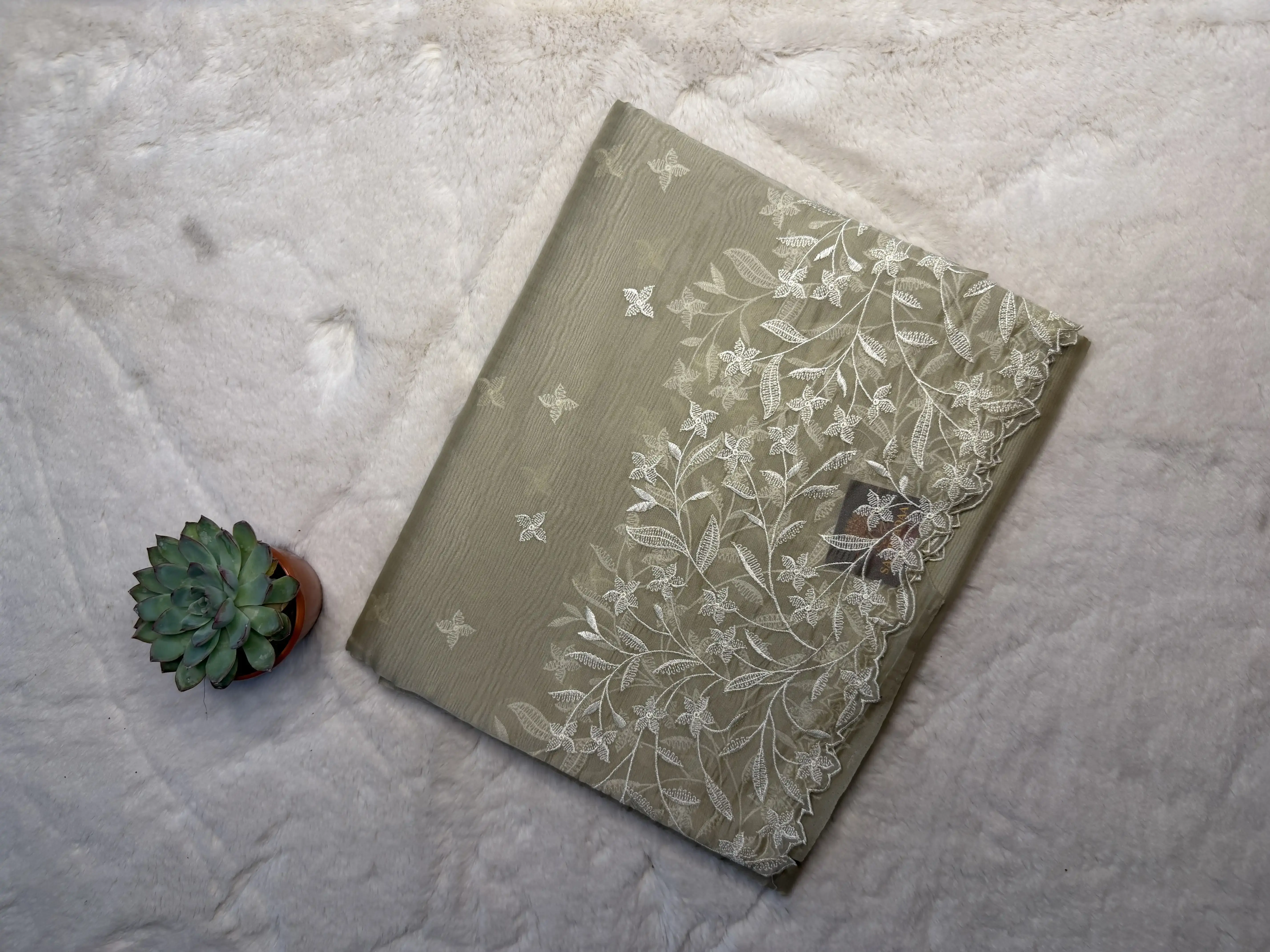 Perfect for festive occasions, day weddings, and elegant celebrations, this saree beautifully blends classic aesthetics with contemporary sophistication.