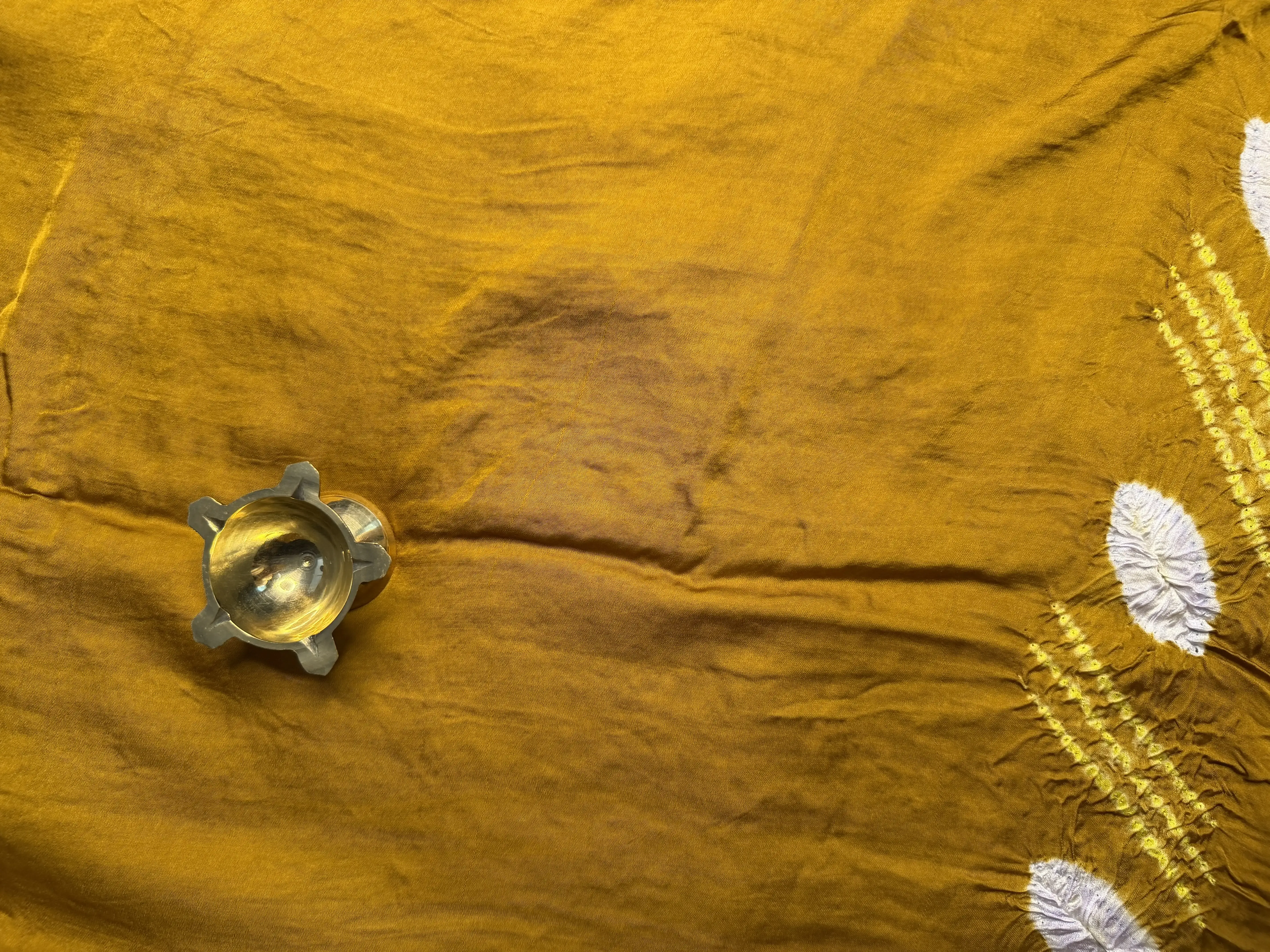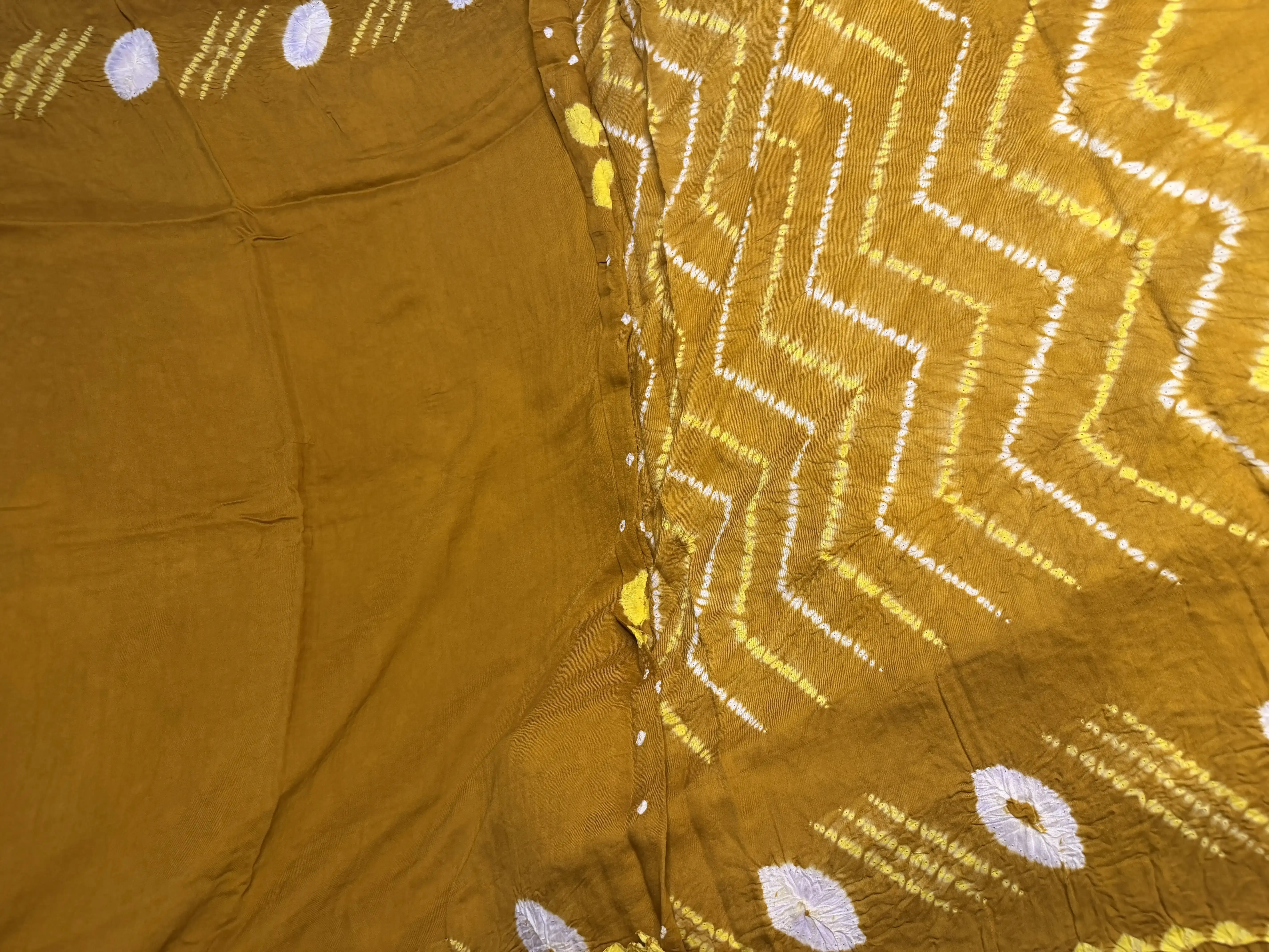 Mustard Yellow Bandhani work lightweight fancy Saree