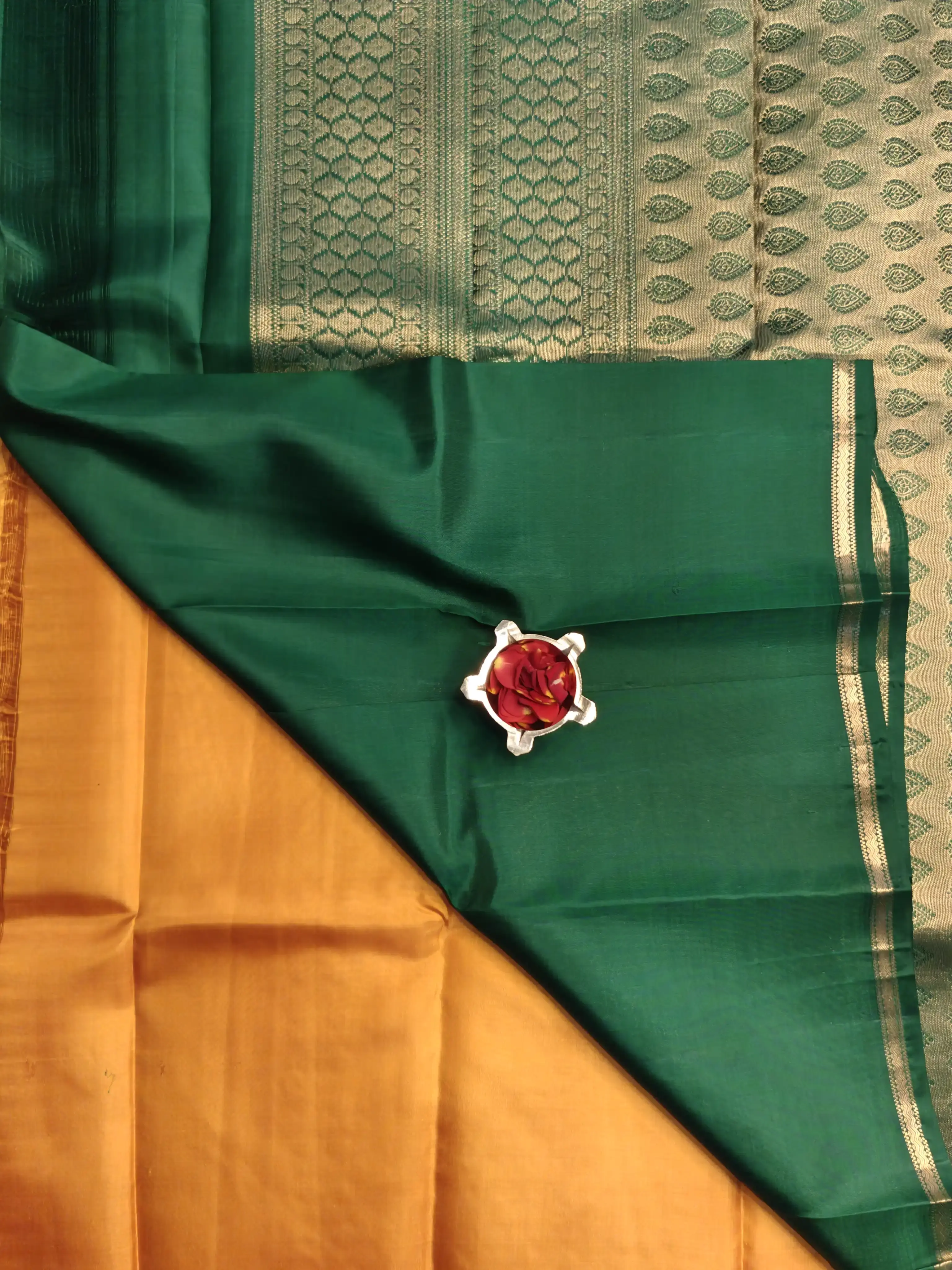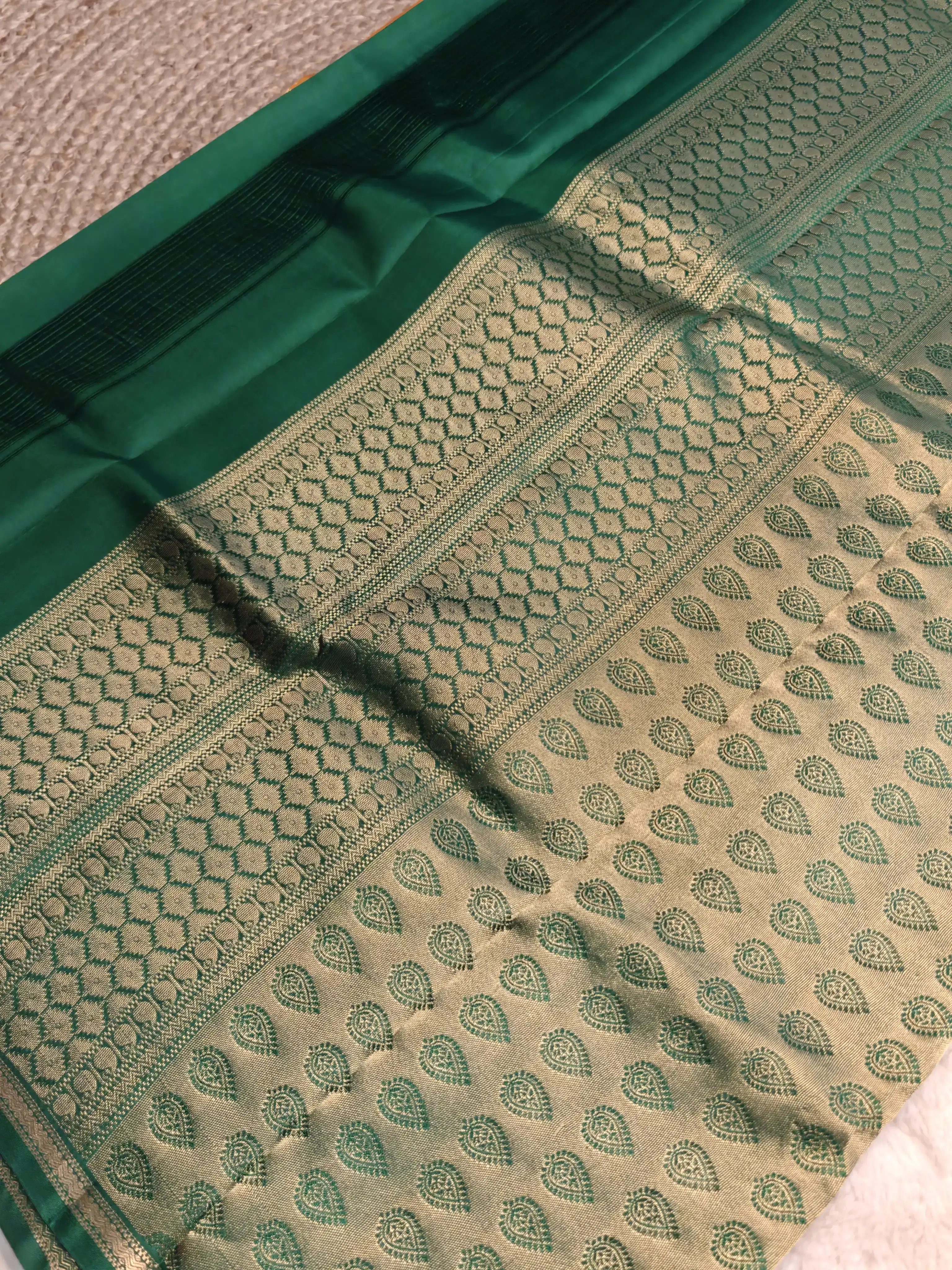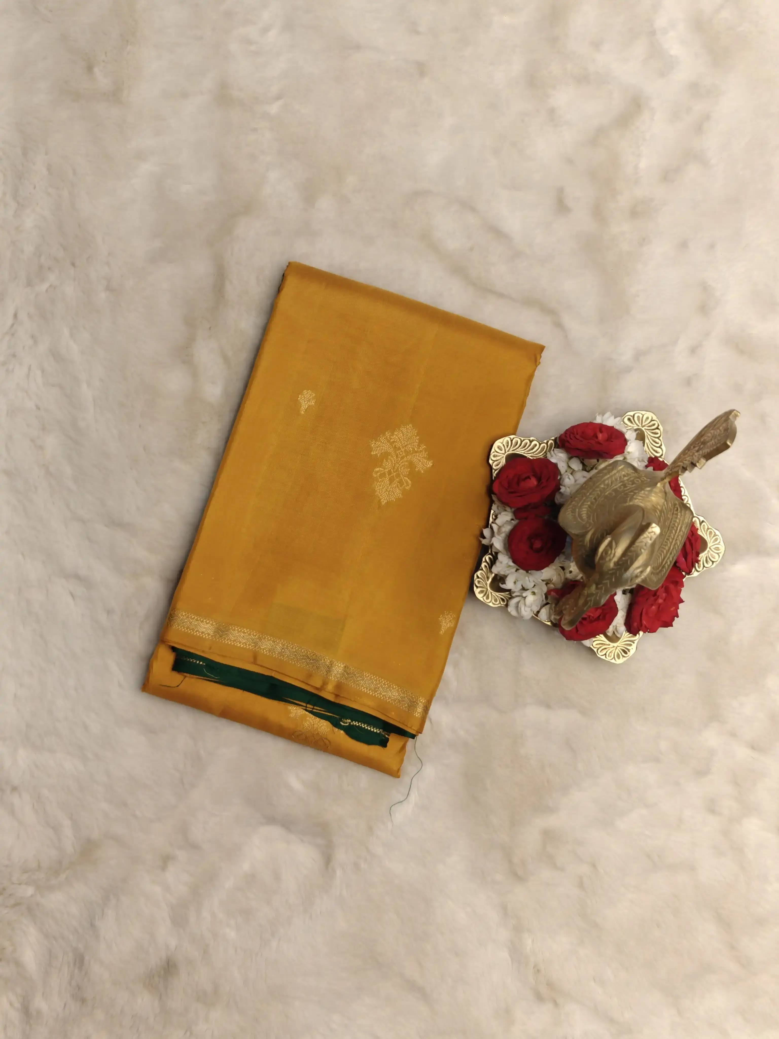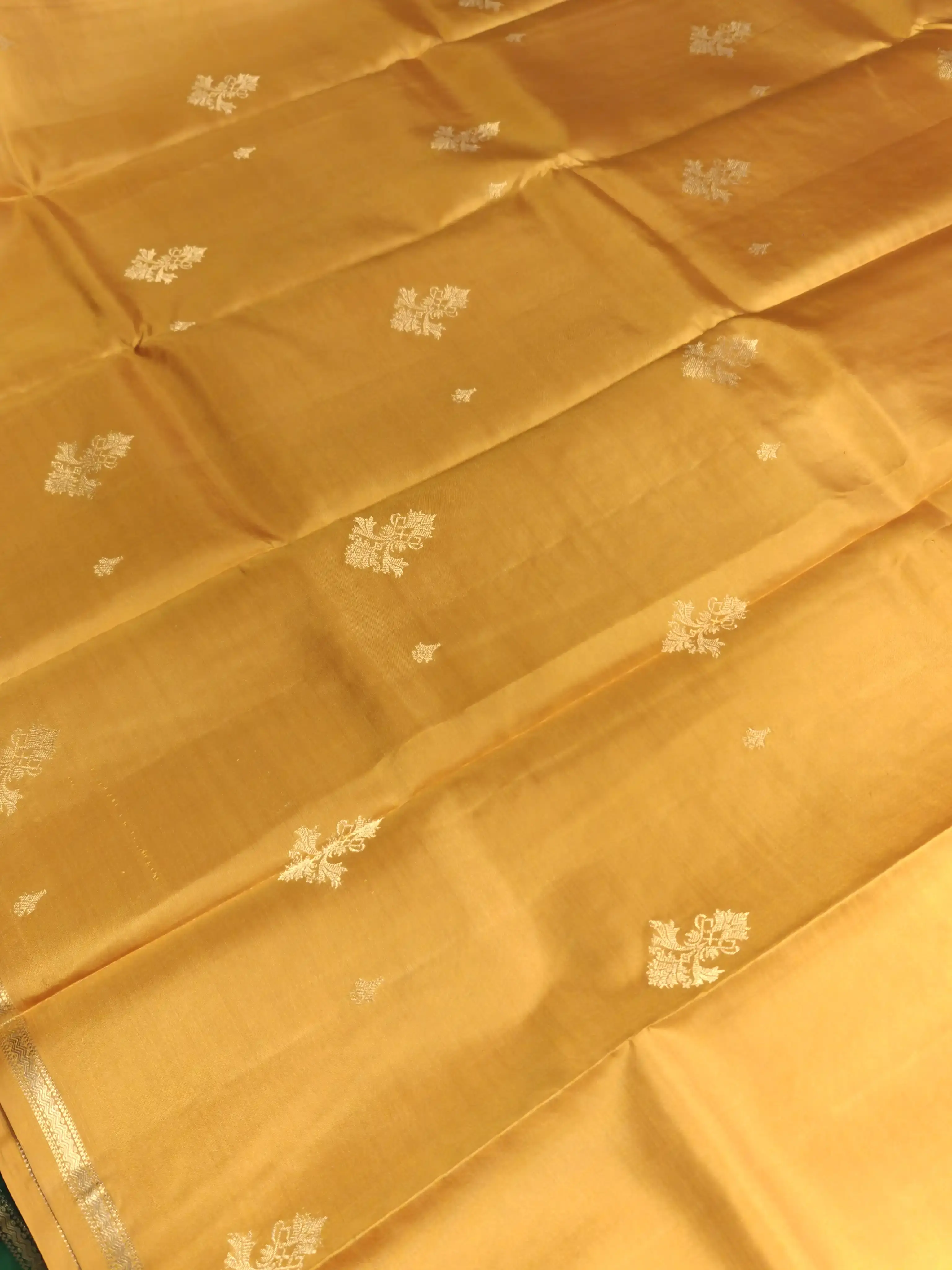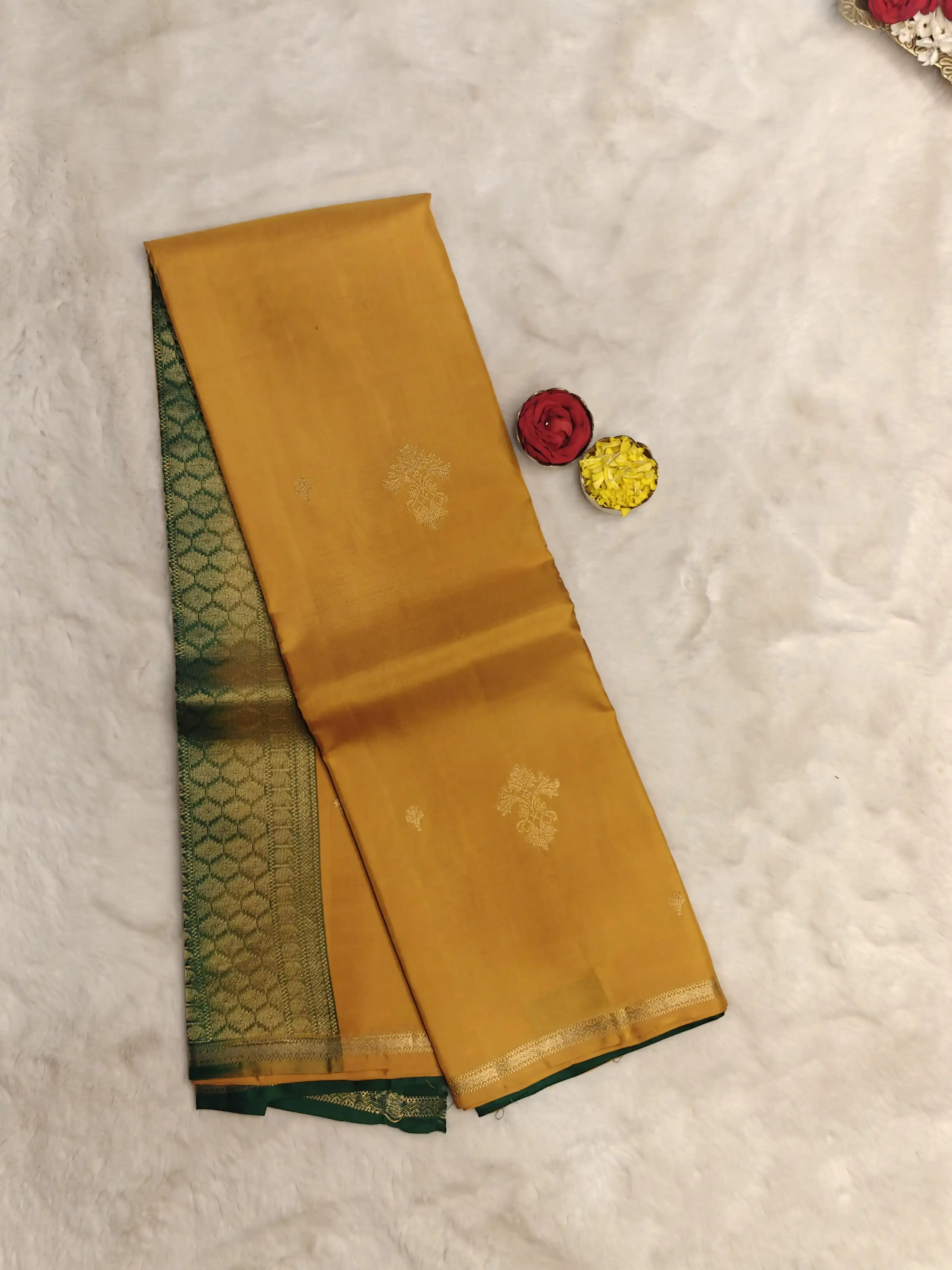 Mustard Yellow with Green contrast small motifs silk saree