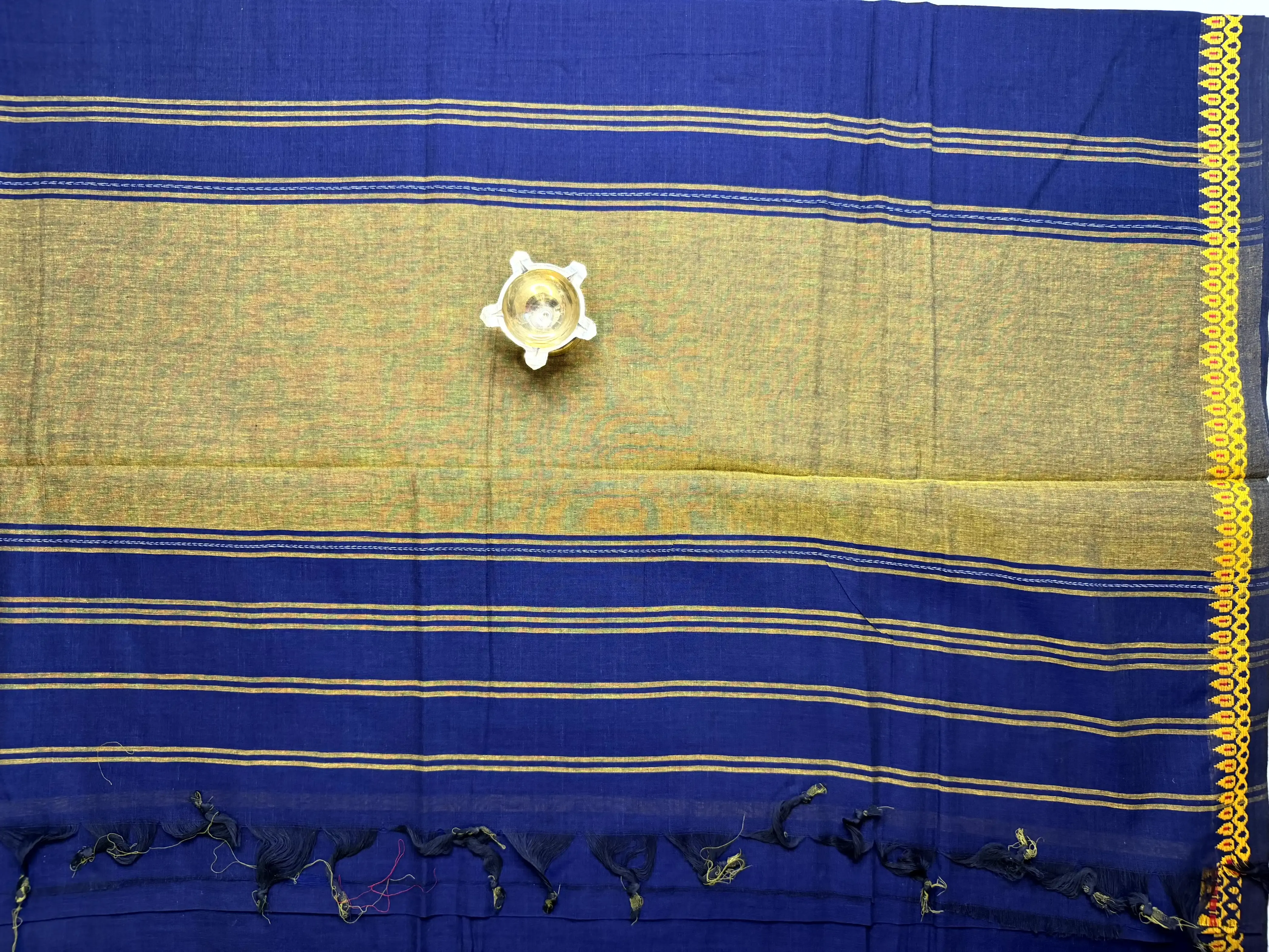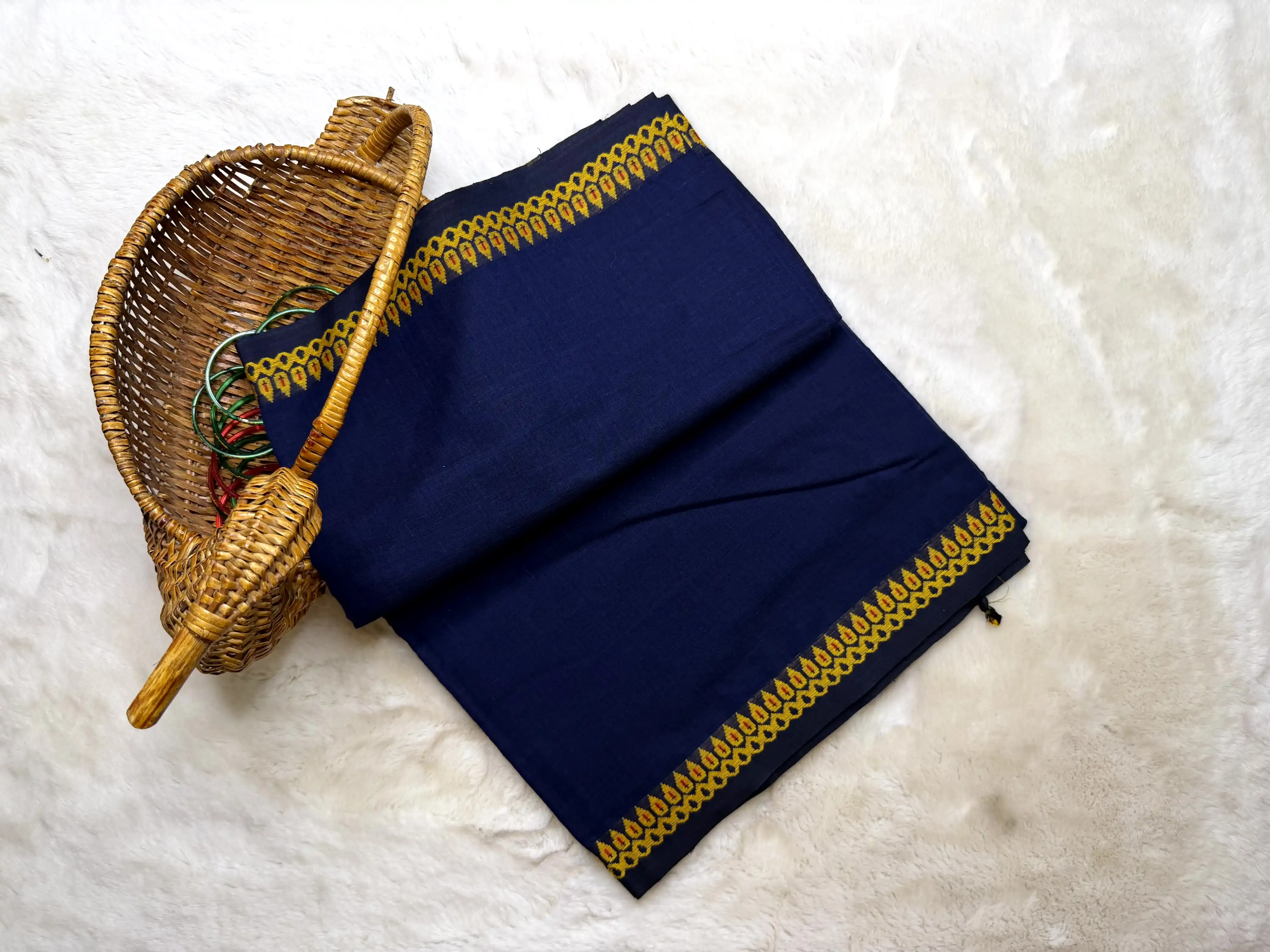 Navy blue with mustard yellow border dhaniakali cotton saree
