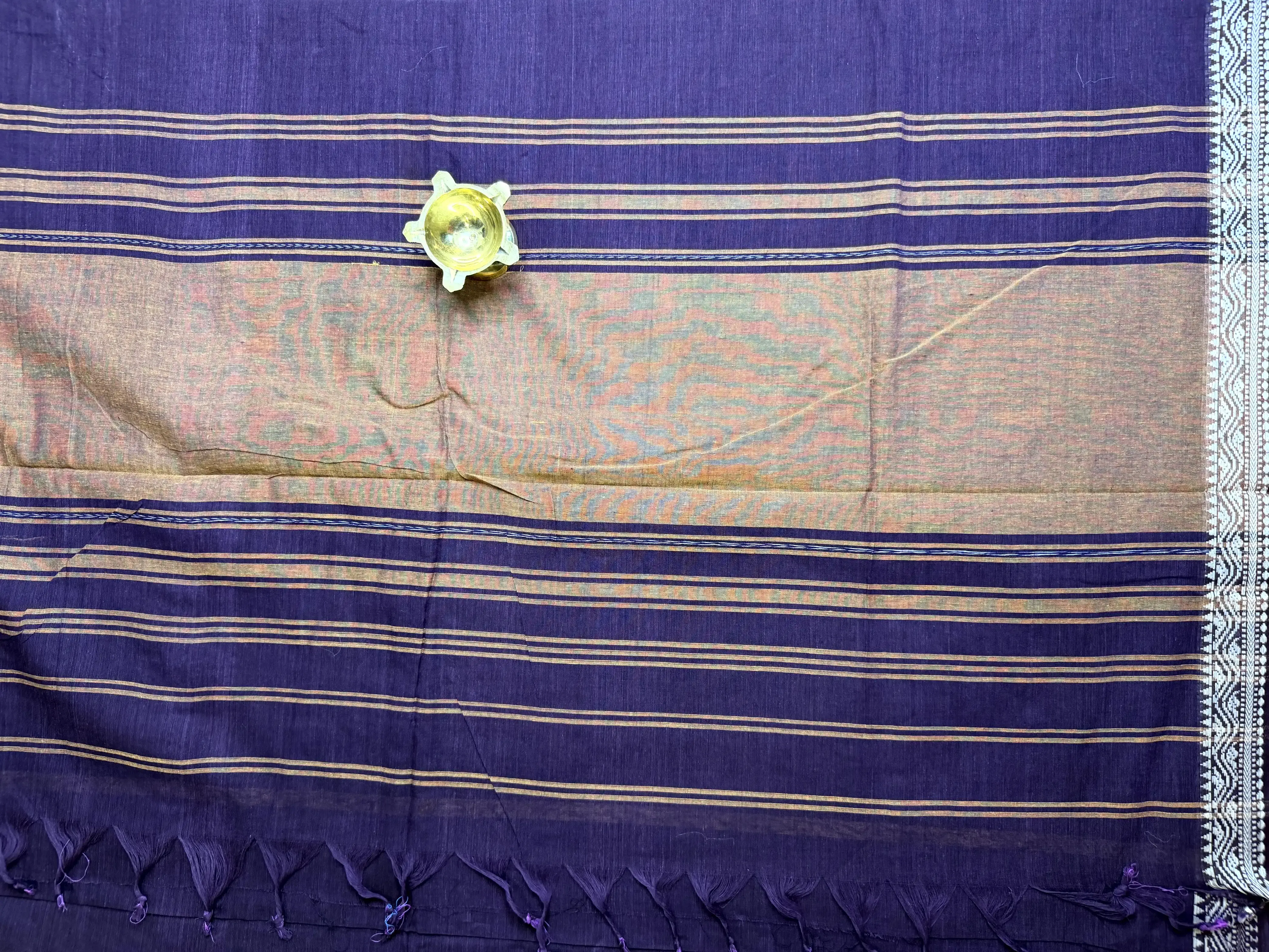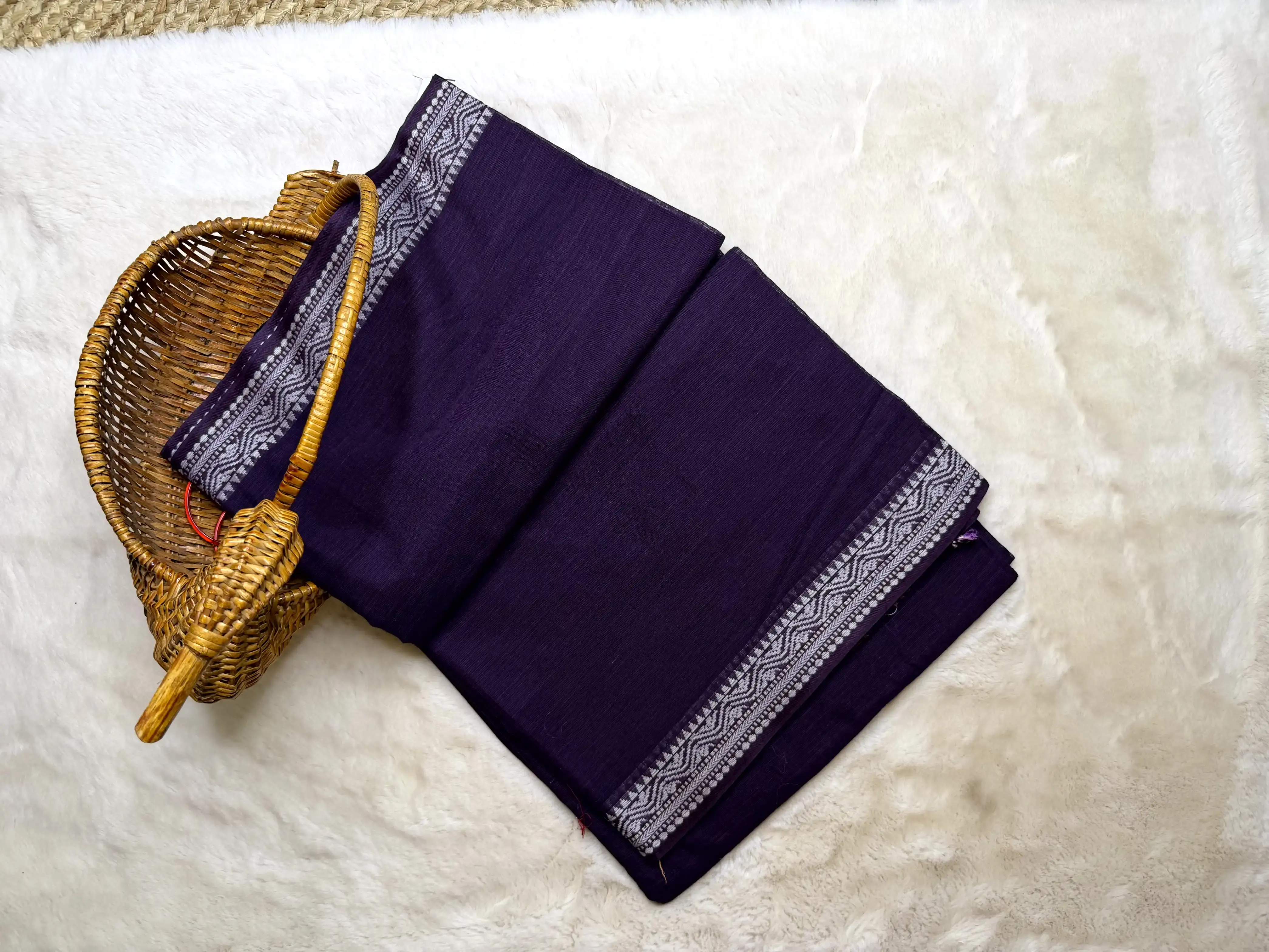 This navy blue Dhaniakhali cotton saree comes adorned with a crisp white border, lending a fresh and minimalist touch to its traditional weave. Lightweight, breathable, and beautifully structured, it’s perfect for everyday elegance, cultural gatherings, or artisanal styling.