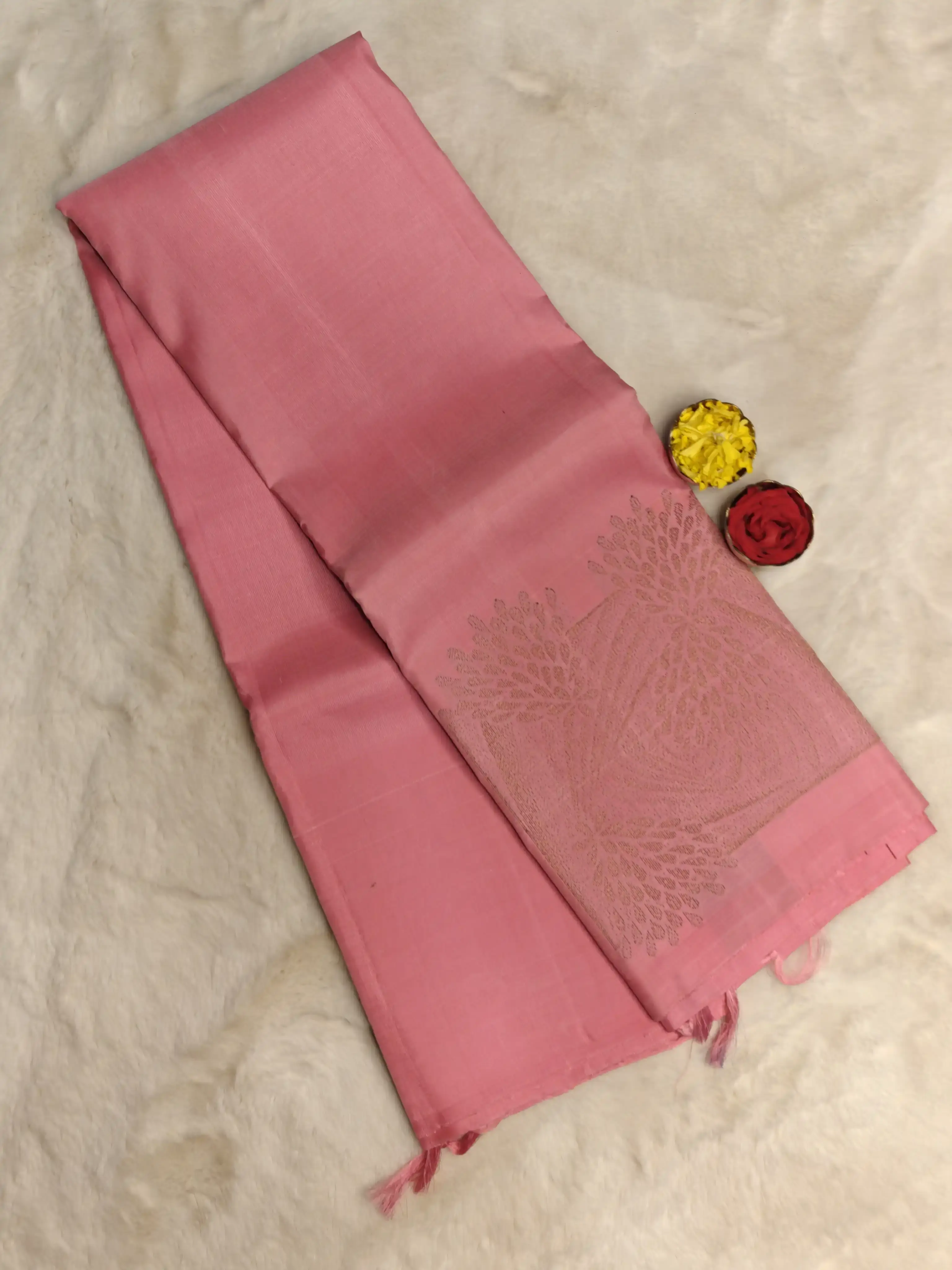 Peach pink contemporary design silk Sarees
