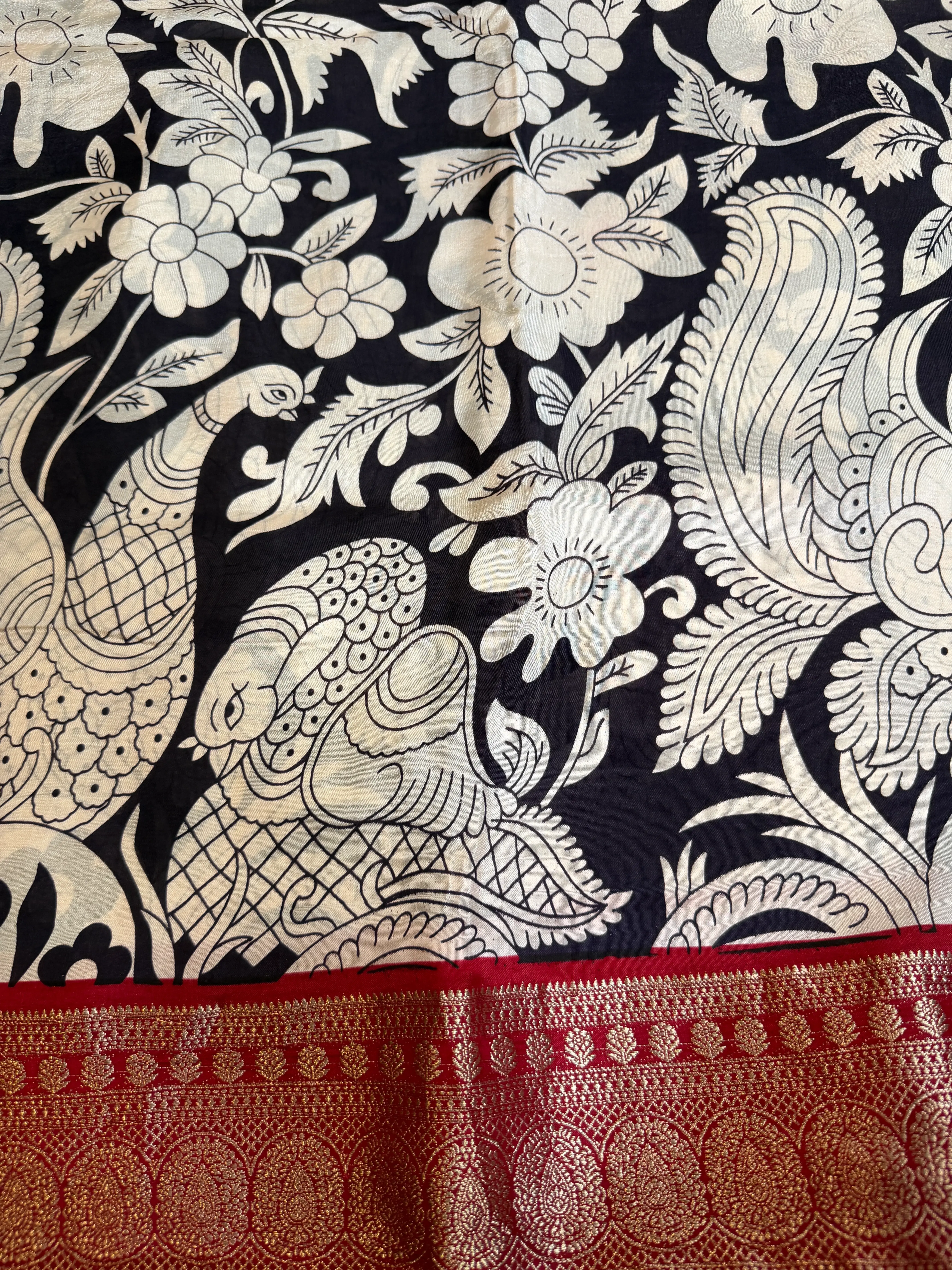 Step into timeless sophistication with this stunning Black & White Soft Dola Silk Saree, adorned with graceful peacock motifs and a striking grand border that exudes richness and charm. The smooth, luxurious texture of dola silk adds a beautiful flow, making every drape look effortlessly regal. ✨