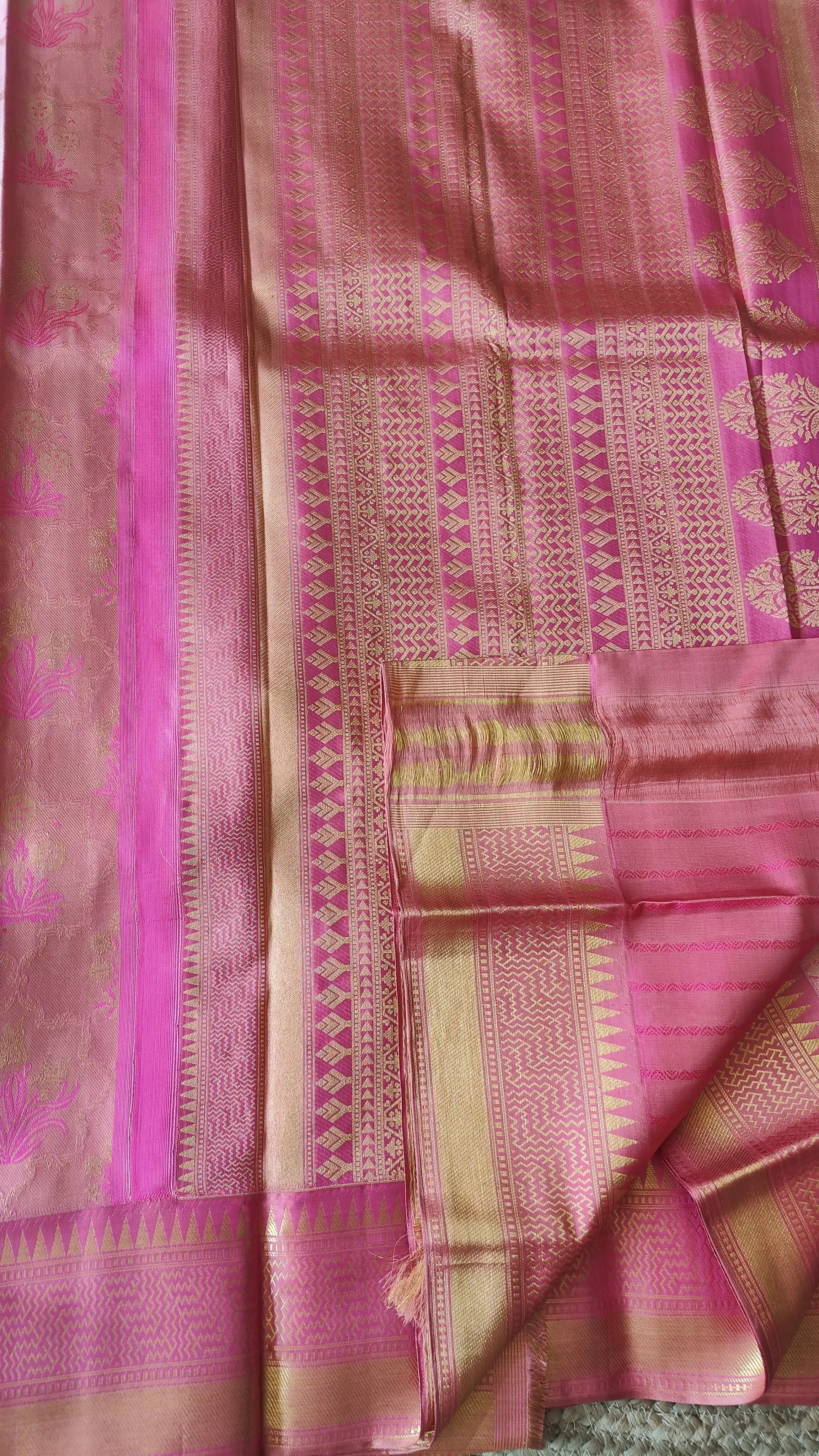 Pink self Floral pattern Pure Kanchipuram silk saree