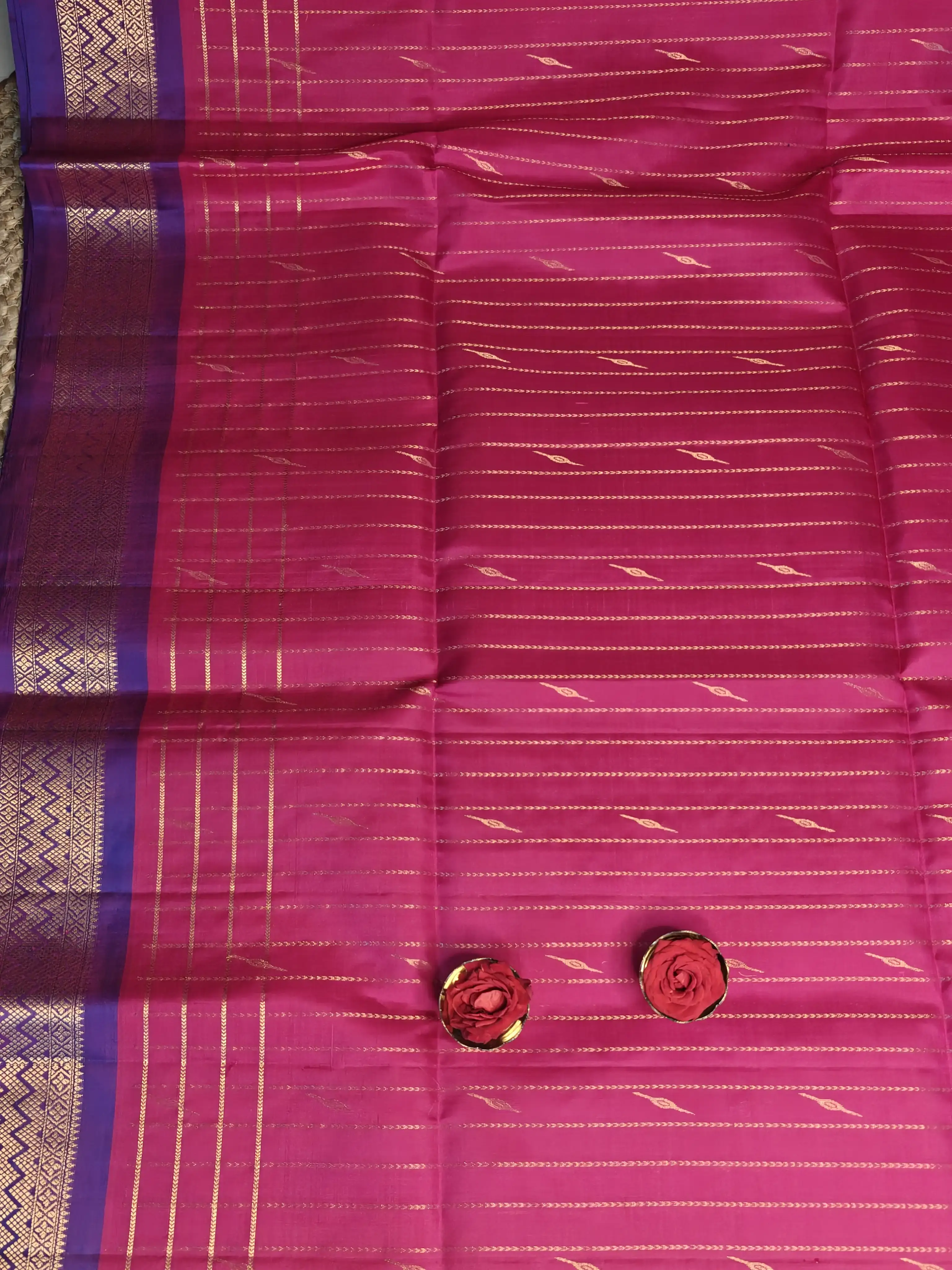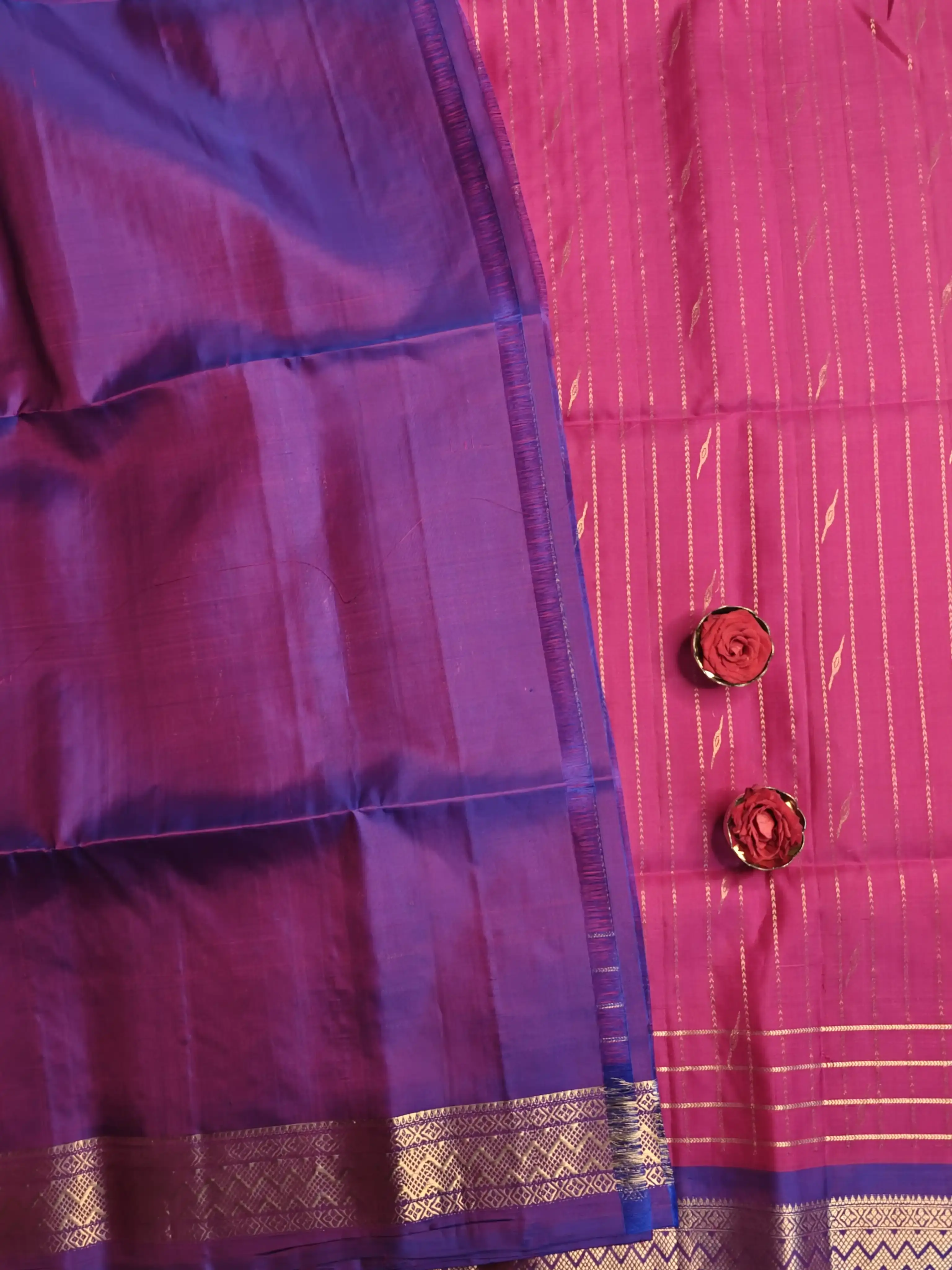Pink with rich purple border soft silk saree