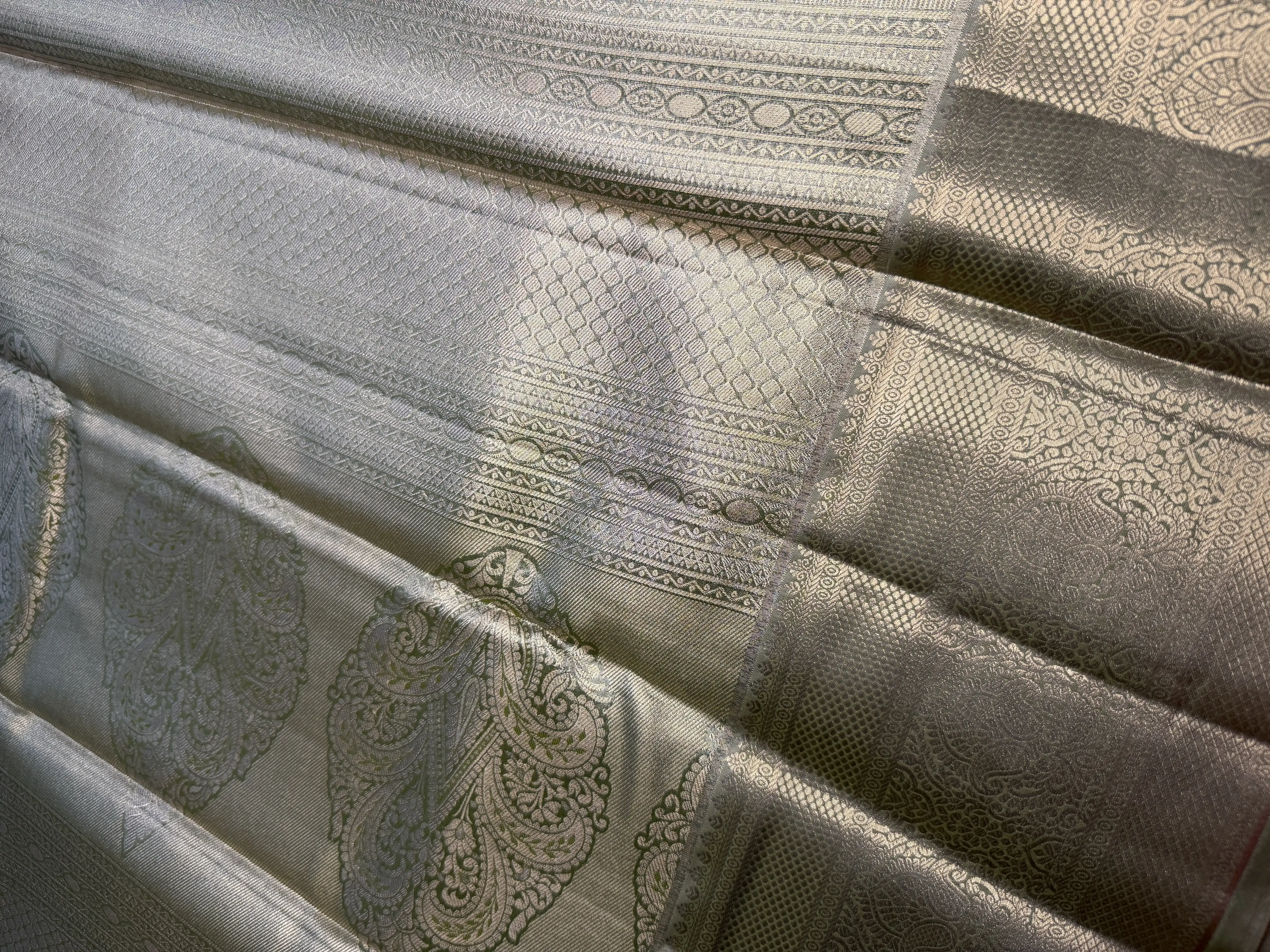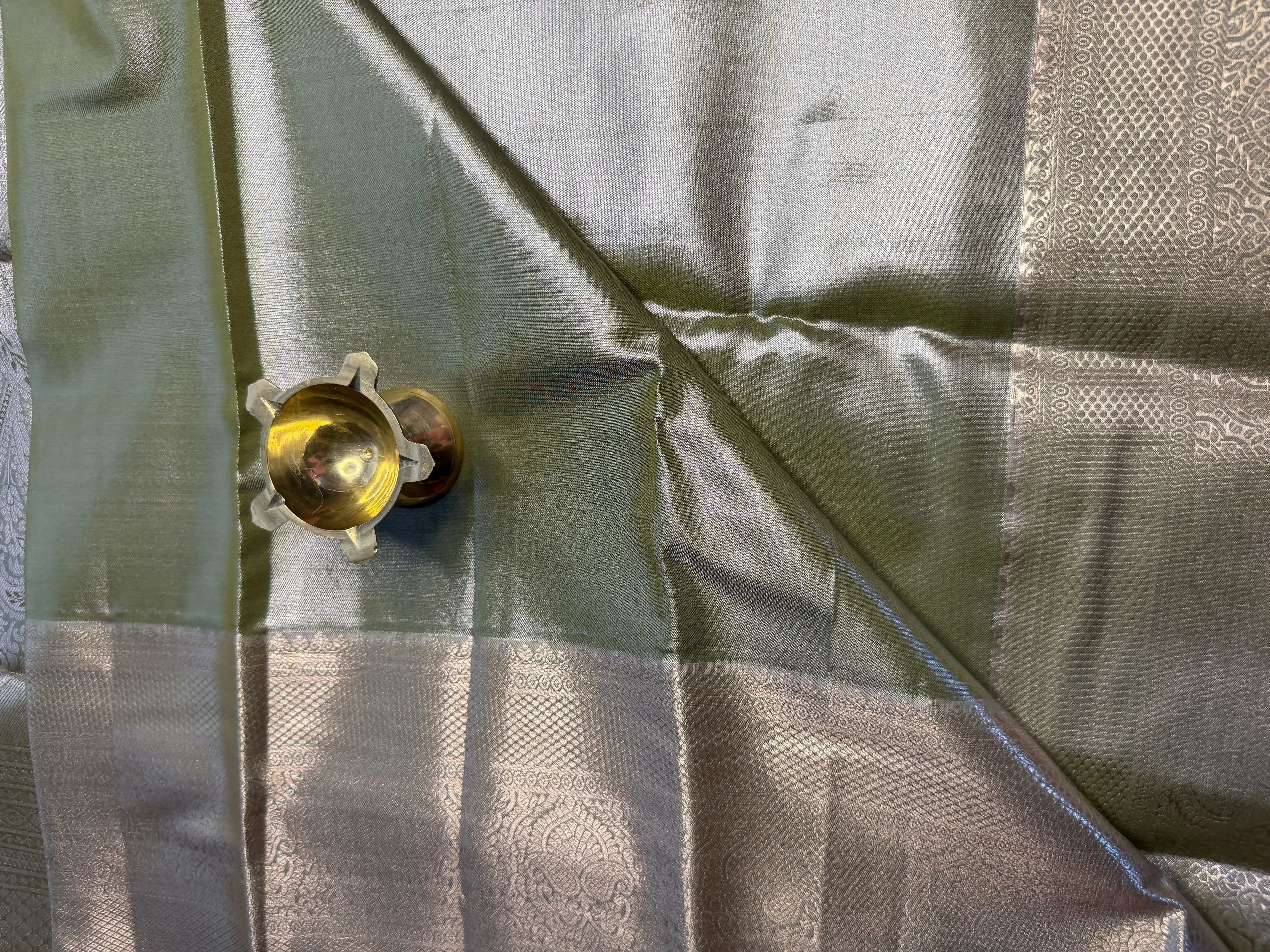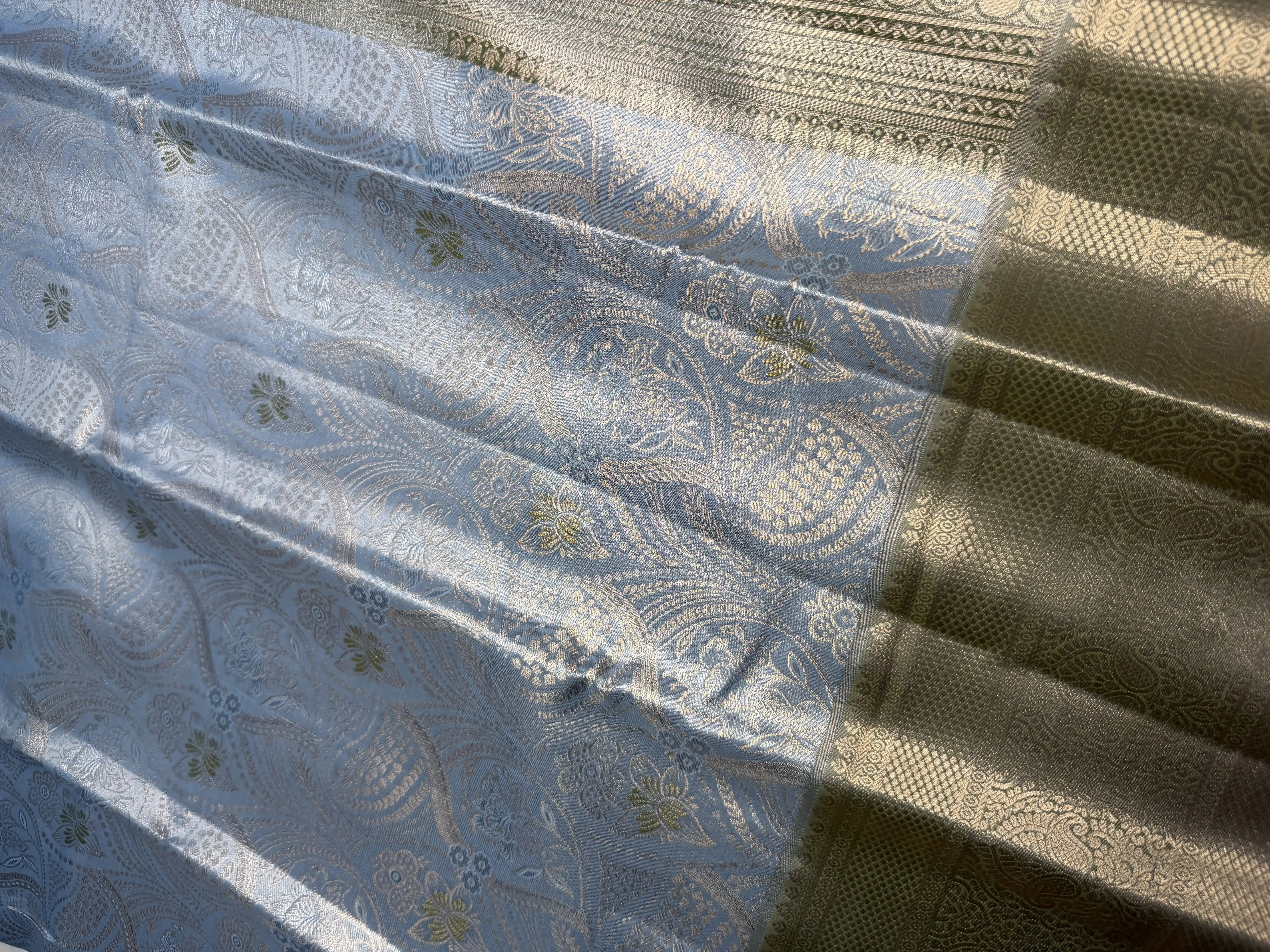 Powder Blue & Olive Green tissue Semi Silk Saree