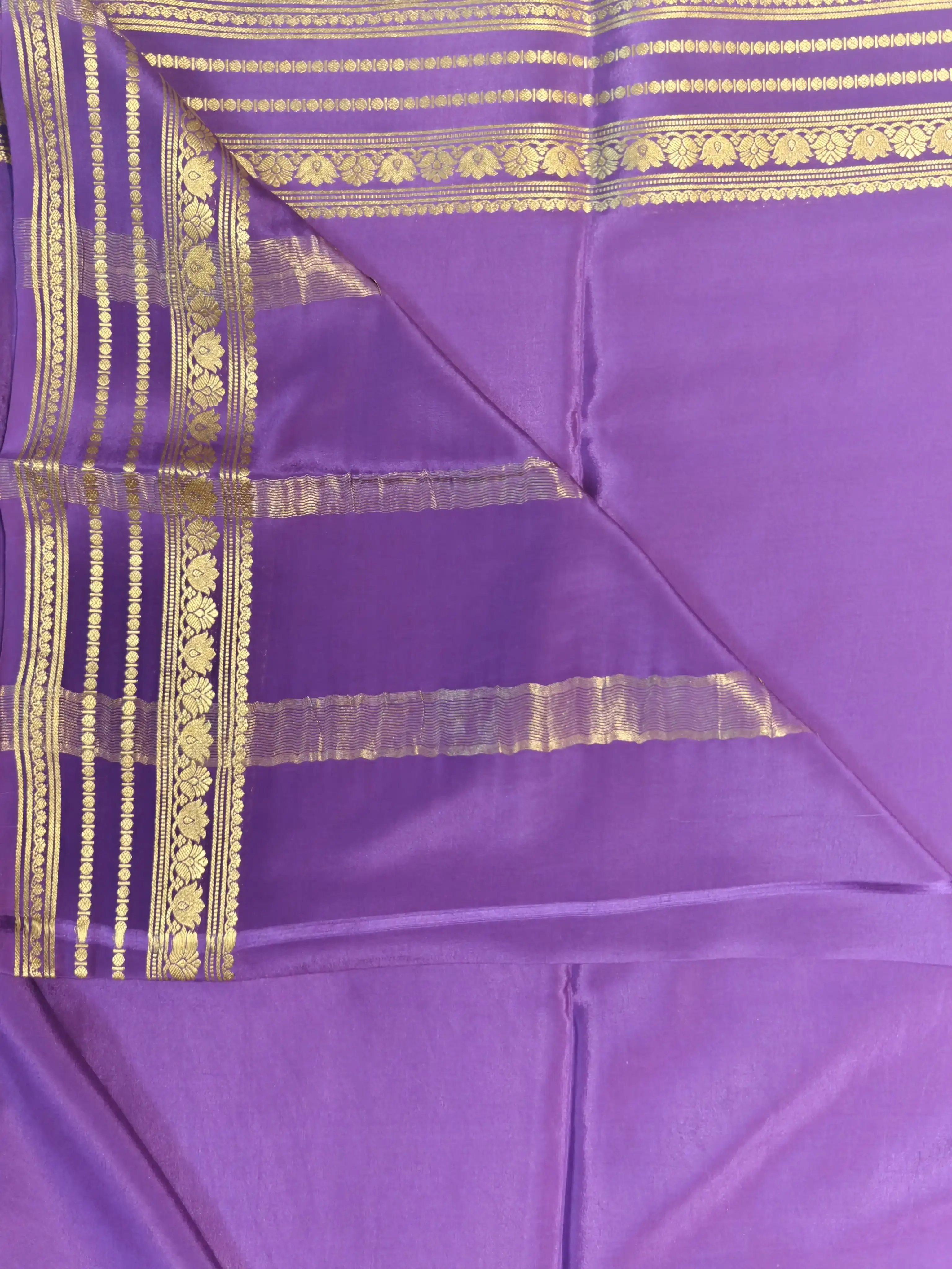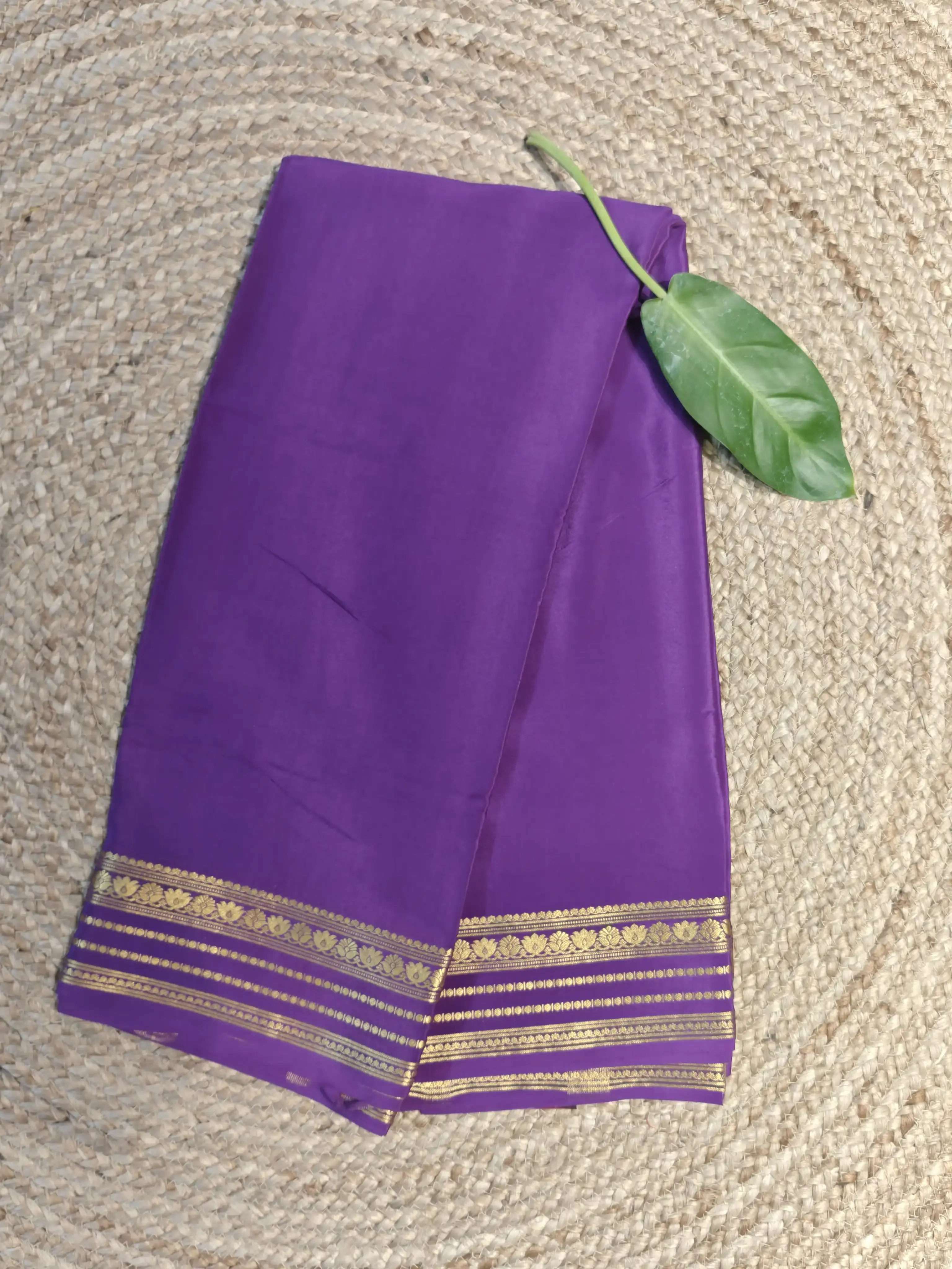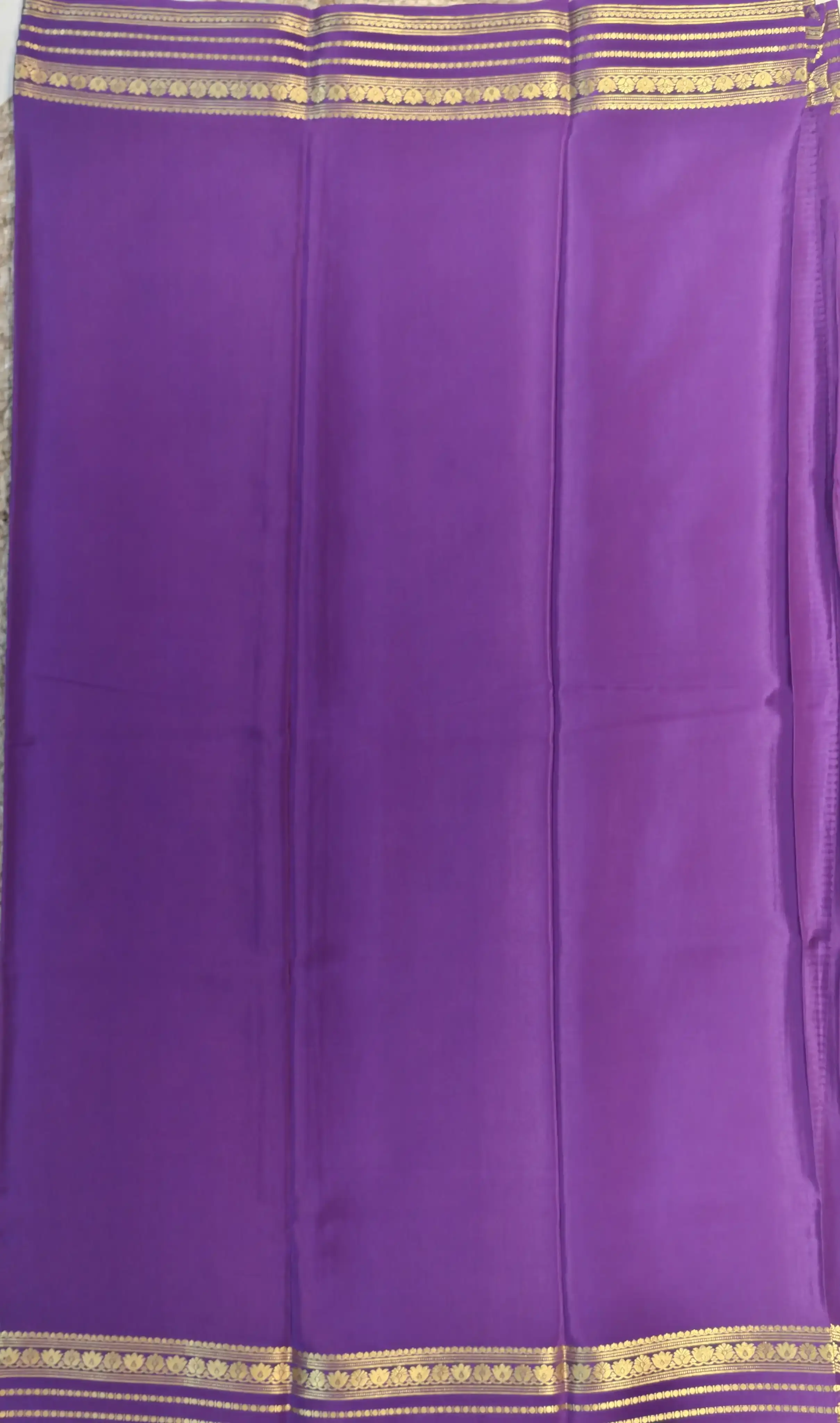 Purple plain with rich border and pallu pure mysore crepe silk saree 120gsm