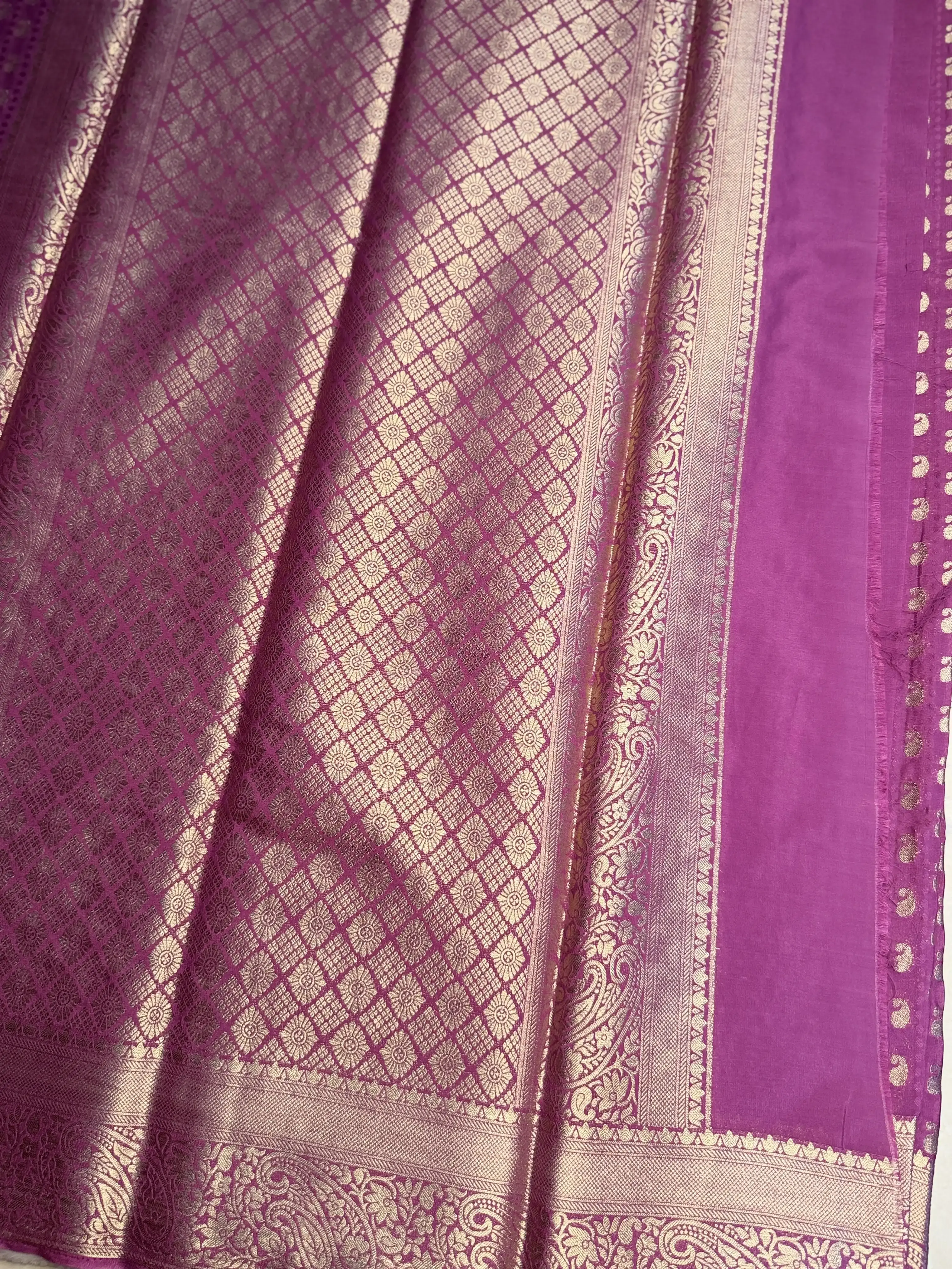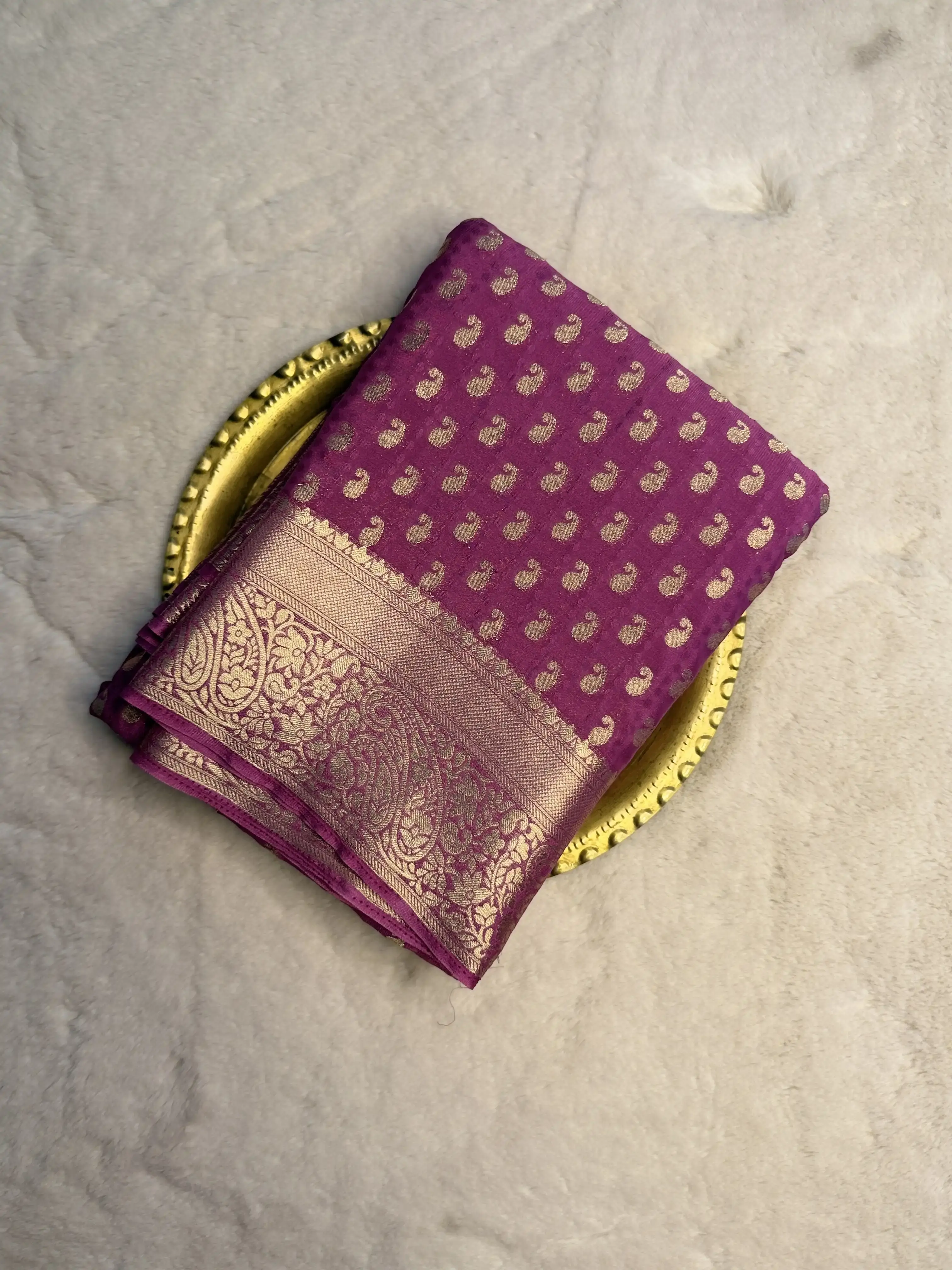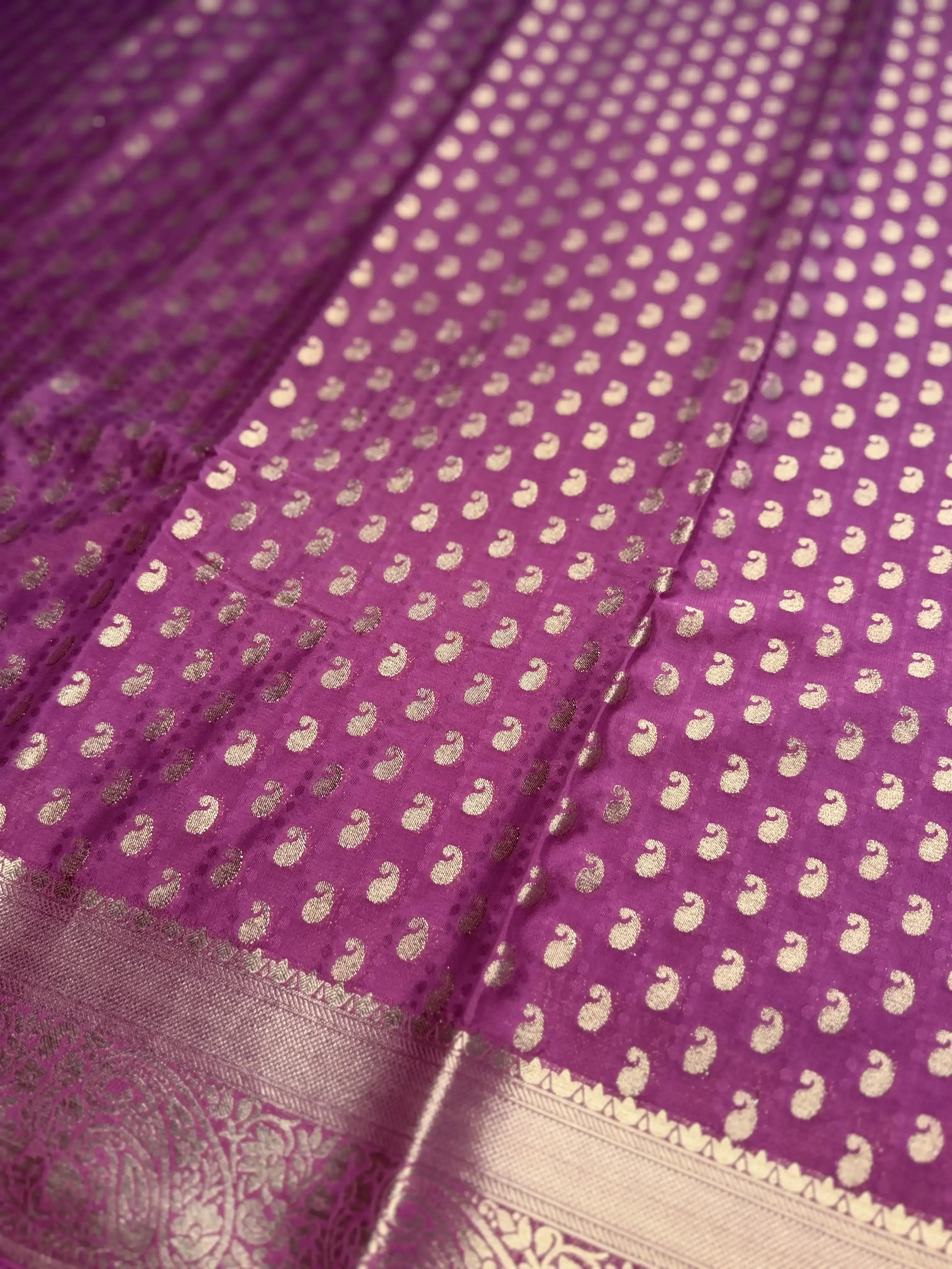 This rose pink georgette saree, adorned with delicate small buttas, drapes beautifully with an airy elegance—subtle, graceful, and effortlessly refined. 🌸