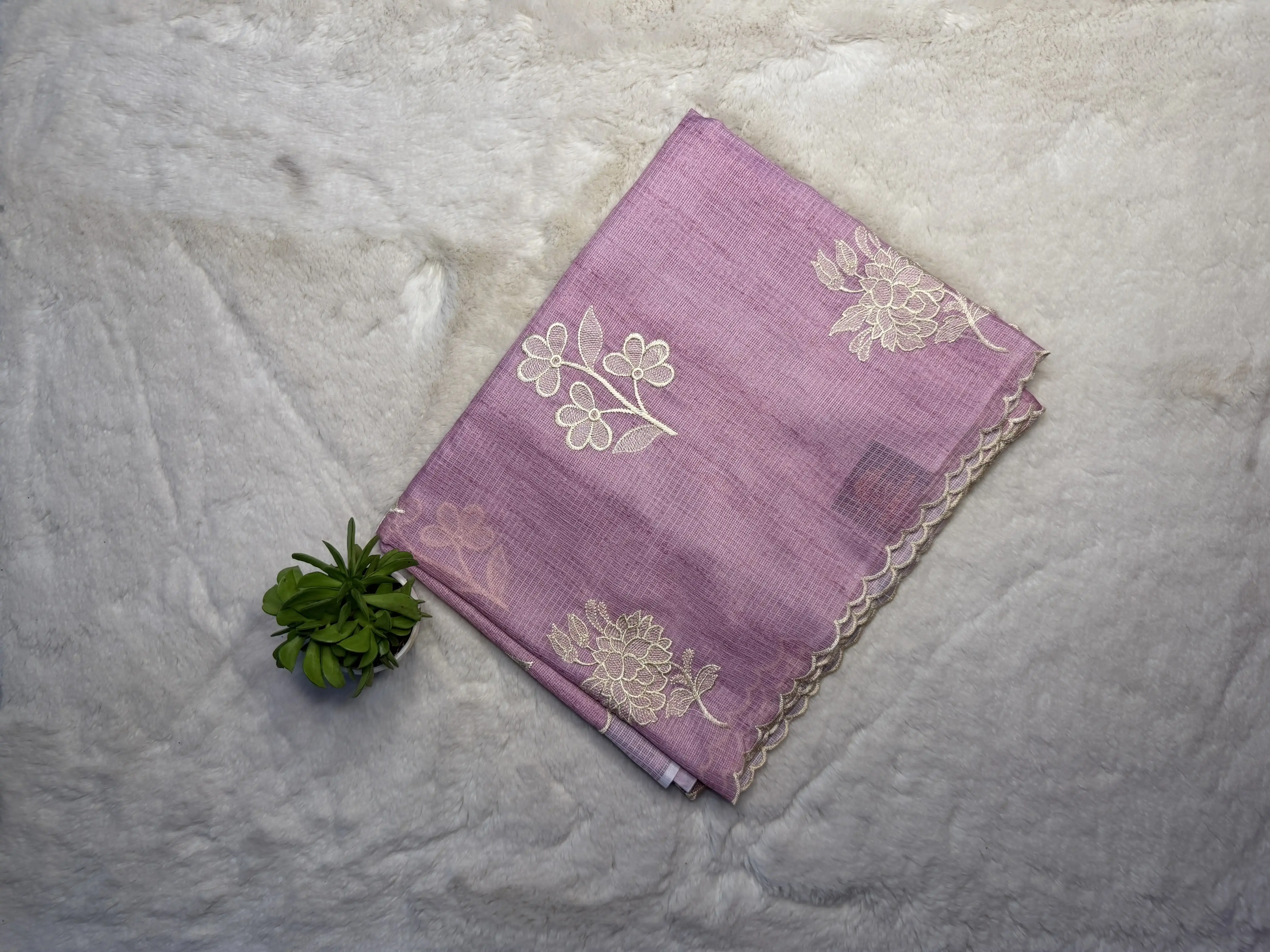 This rose pink Kota cotton saree is adorned with delicate thread work, showcasing timeless artisanal finesse. The lightweight, breathable Kota weave offers a crisp yet comfortable drape, while the gentle rose pink hue adds a touch of feminine elegance and charm.