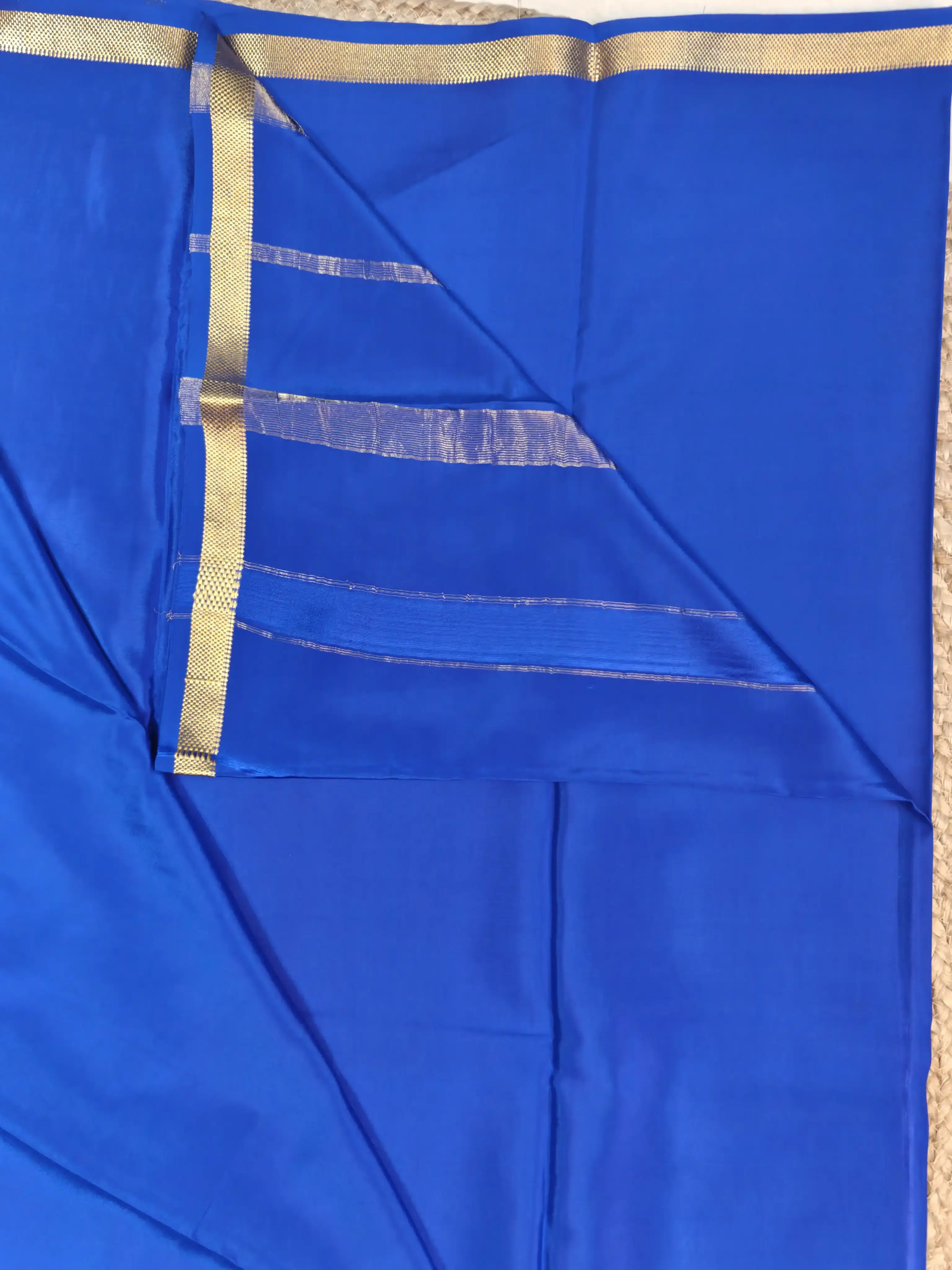 Royal Blue plain Pure Mysore crepe silk saree 120gsm