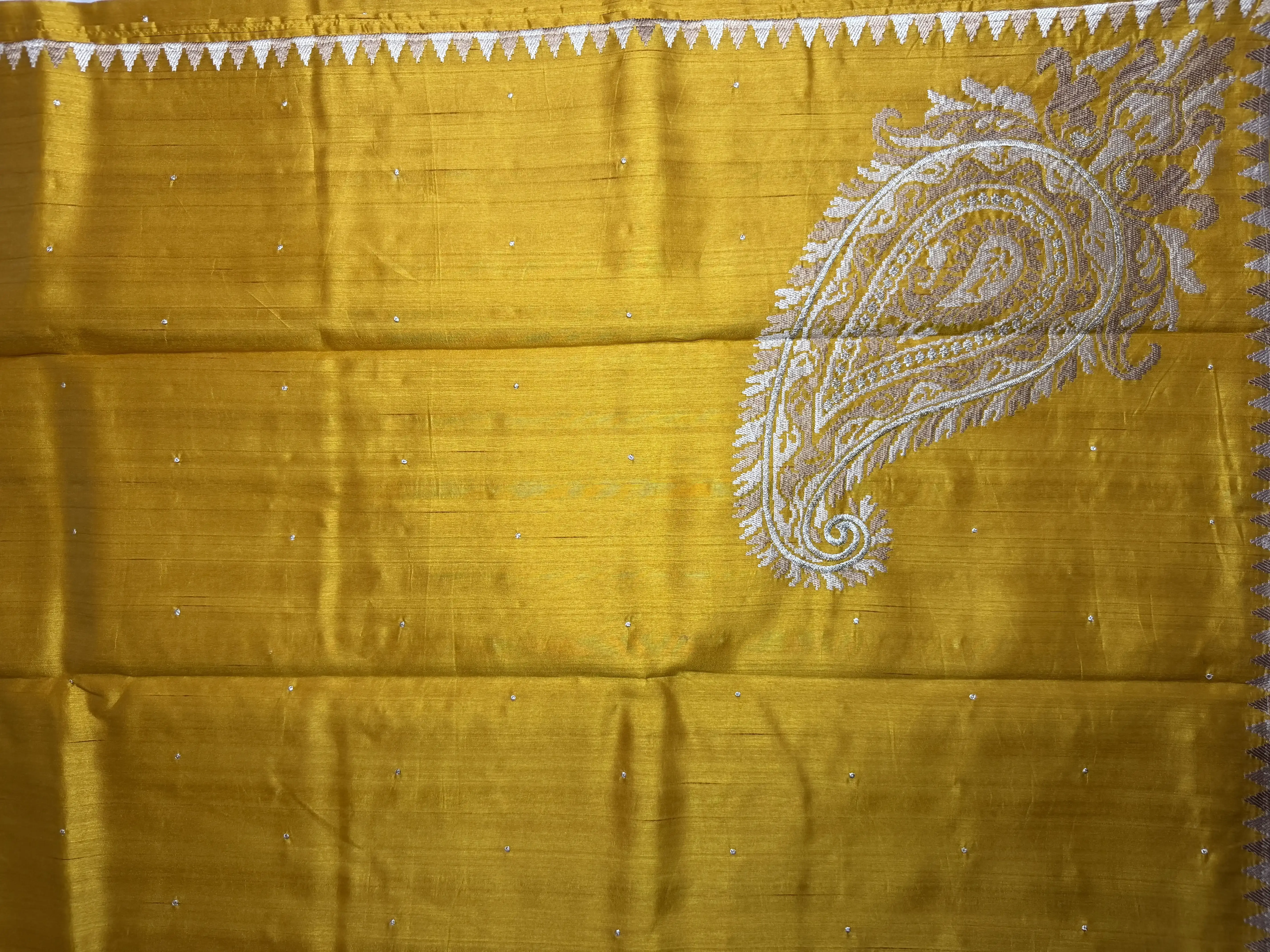 Yellow with thread work semi Raw Silk Saree