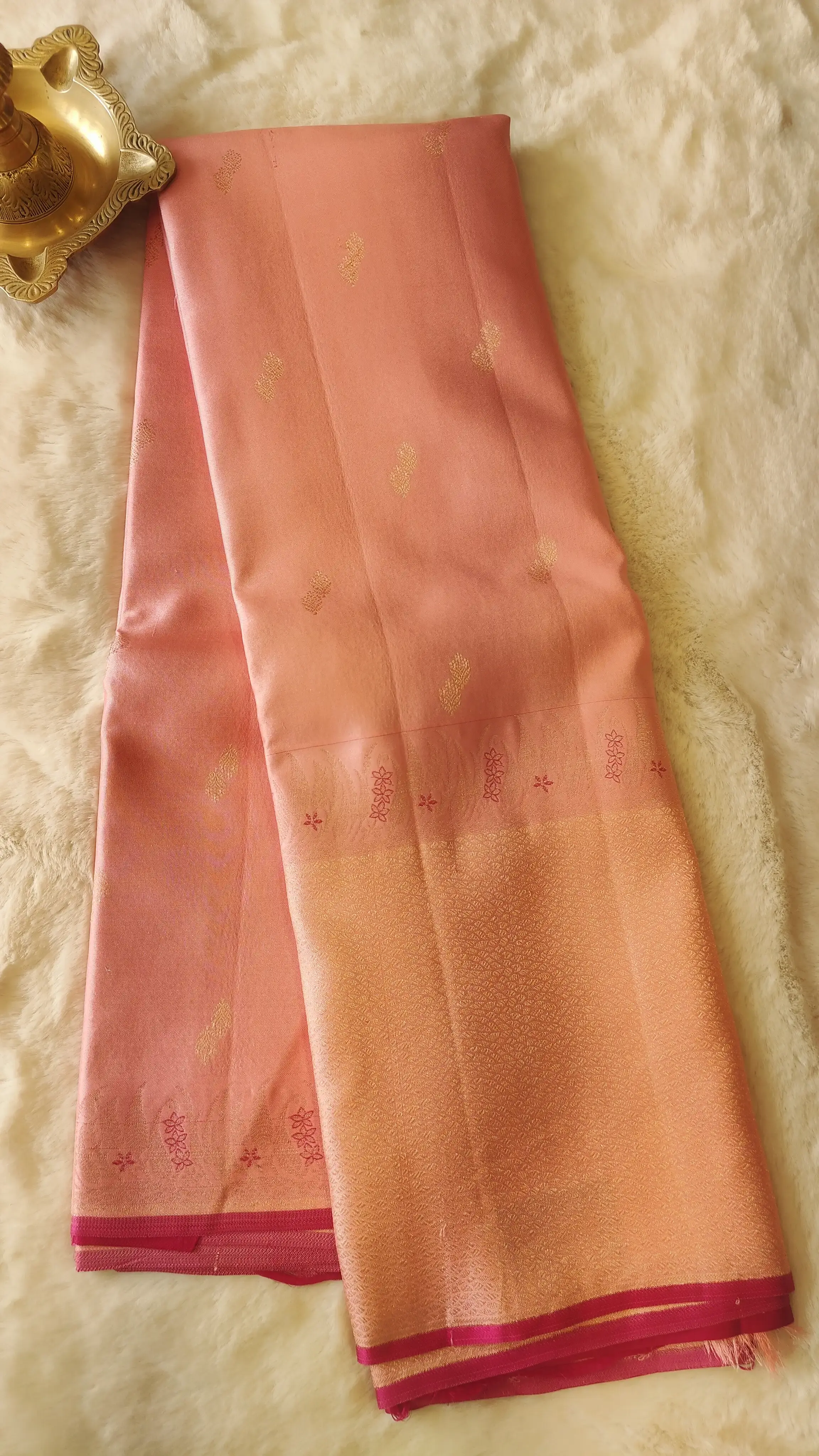 Baby pink contemporary floral pattern Pure kanchipuram silk saree