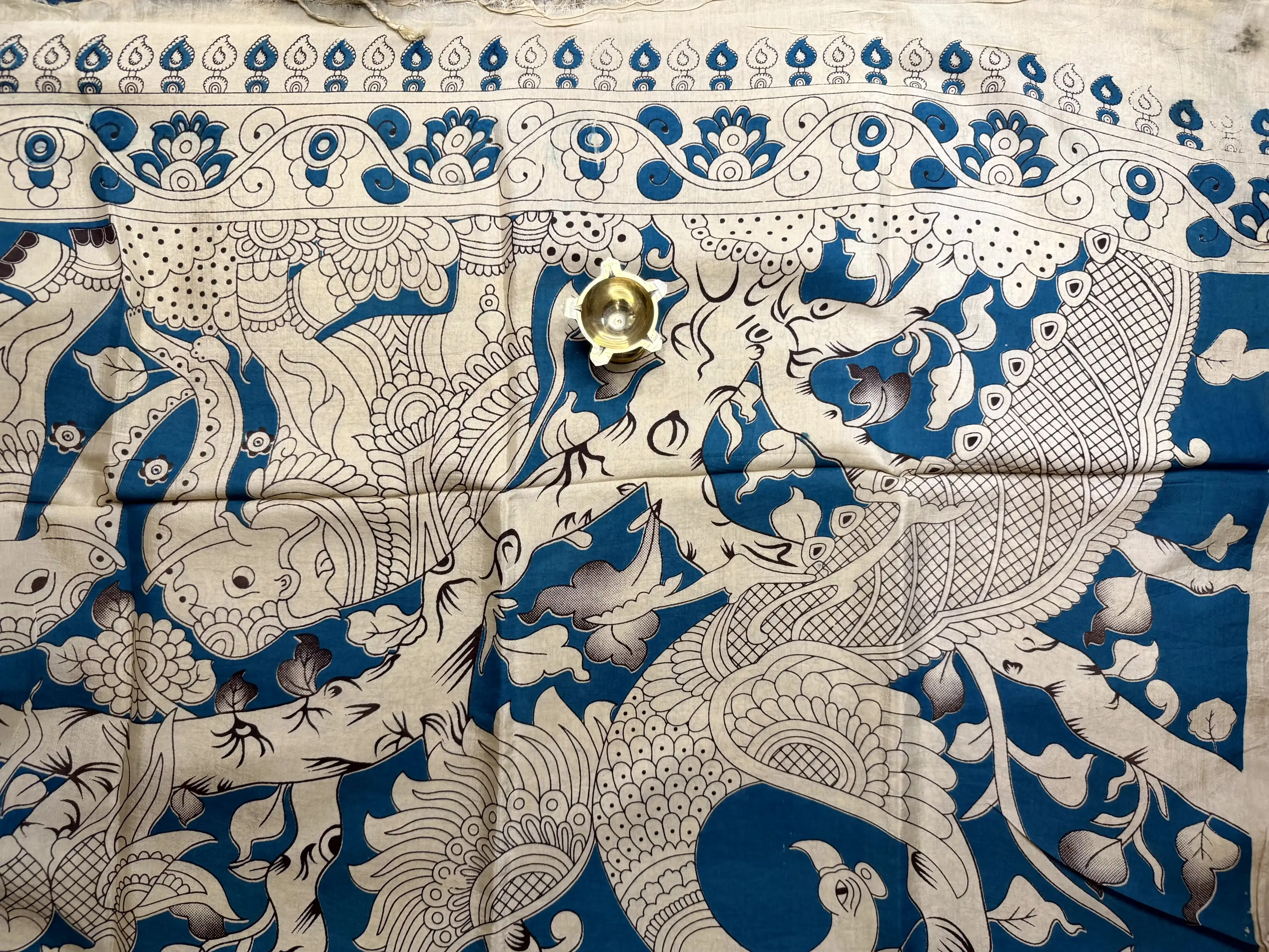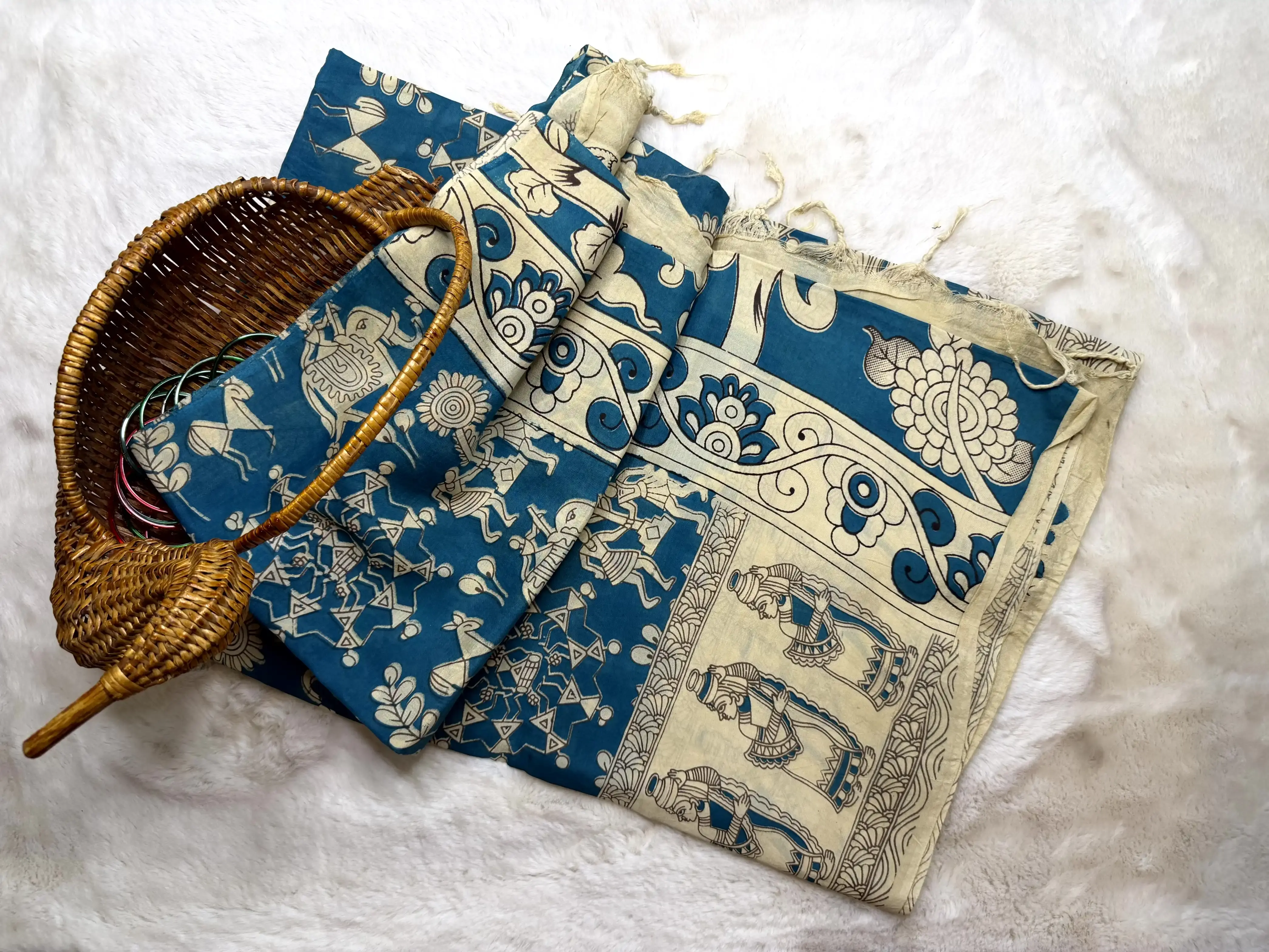 This beige cotton saree is beautifully handpainted with teal blue motifs, blending understated elegance with a splash of refreshing colour. Lightweight and breathable, it’s perfect for casual outings, festive days, and artistic ethnic styling — a unique choice for those who appreciate handcrafted charm and contemporary flair 🤍💙
