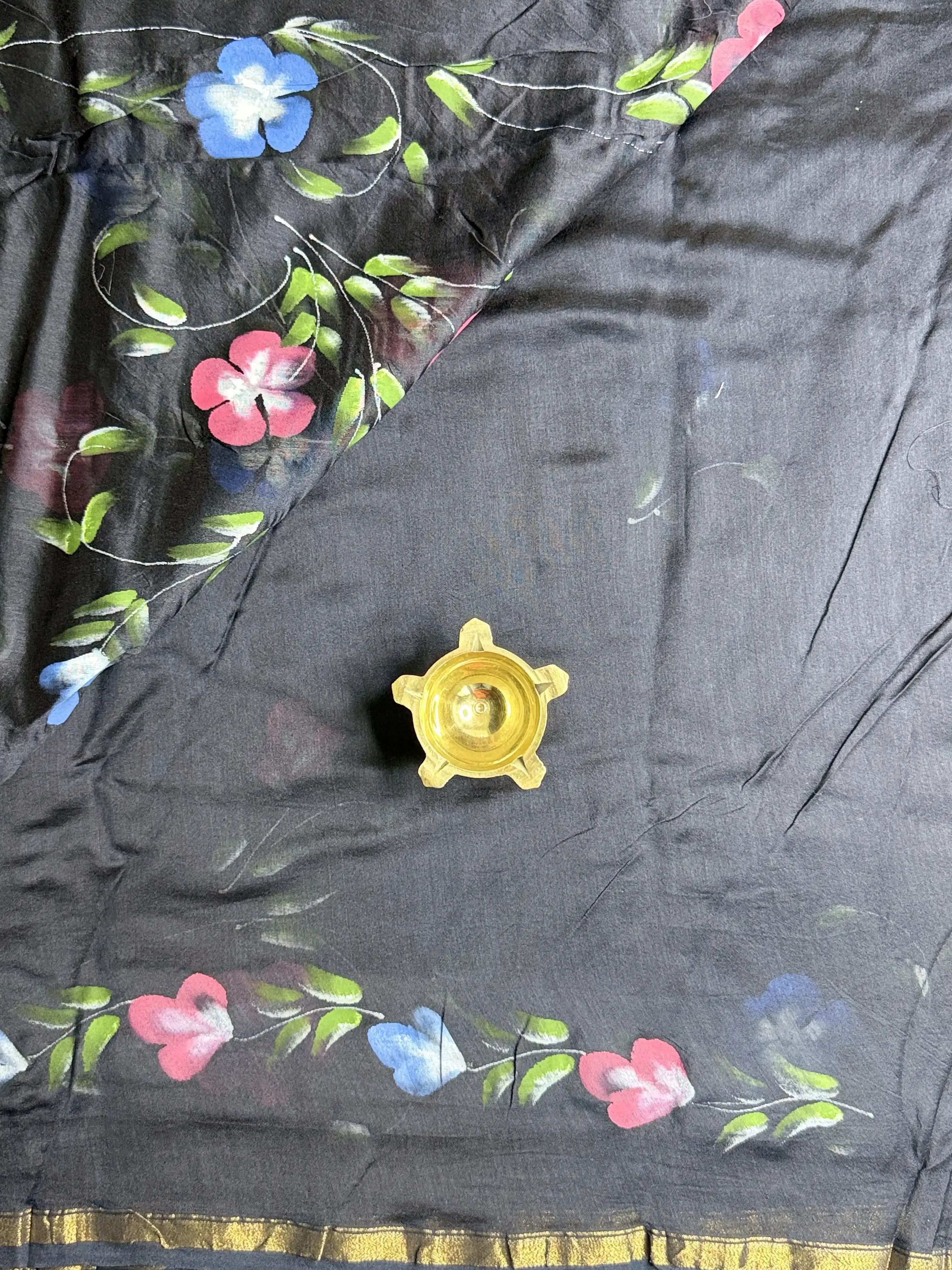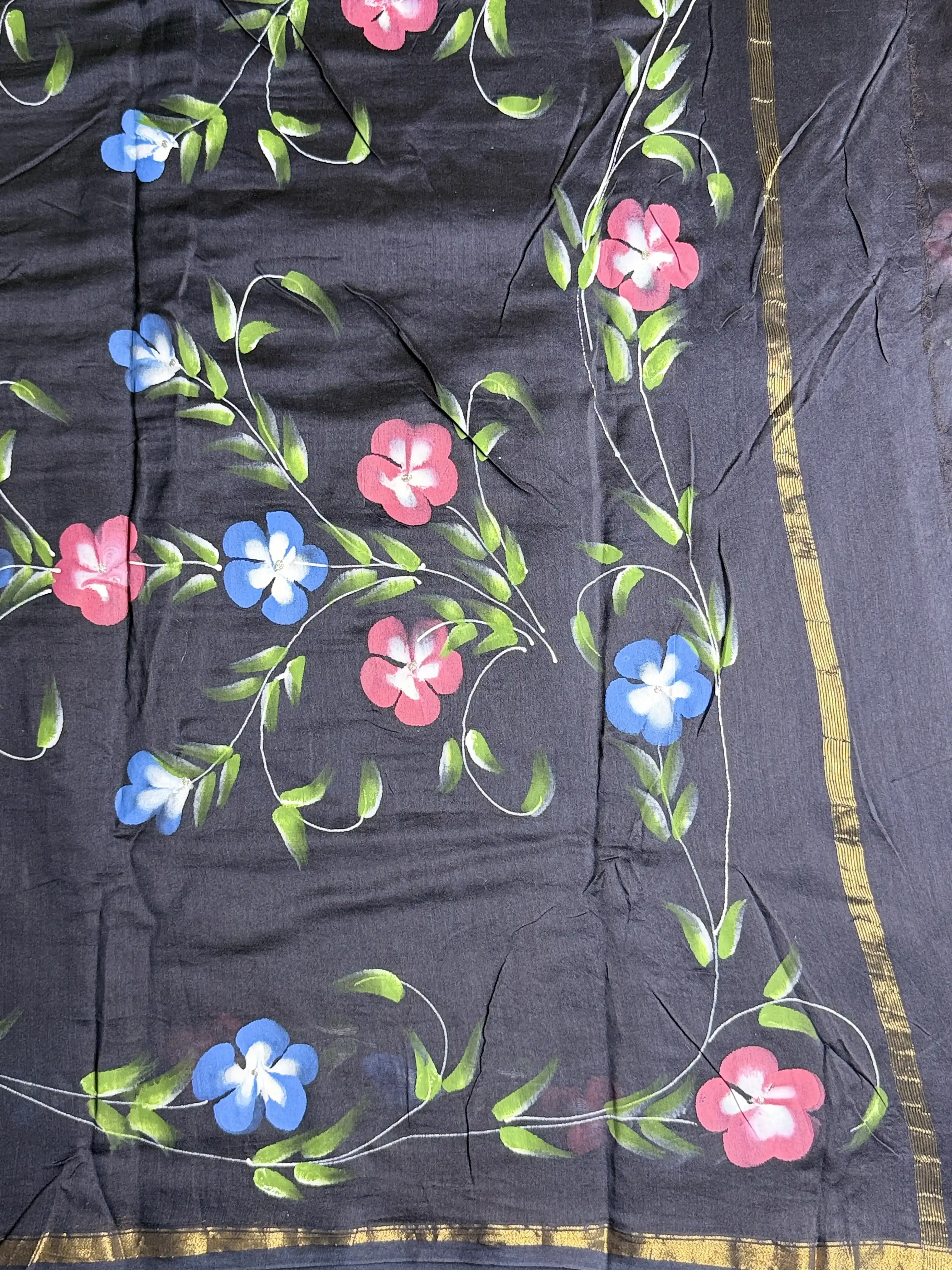 This black floral handpaint pure cotton saree is a striking blend of elegance and artistry. Delicate handpainted florals bloom against a deep black canvas, creating a stunning contrast on a soft, breathable cotton base. Perfect for statement day wear or refined evening elegance, this saree speaks of timeless charm with a handcrafted touch ✨