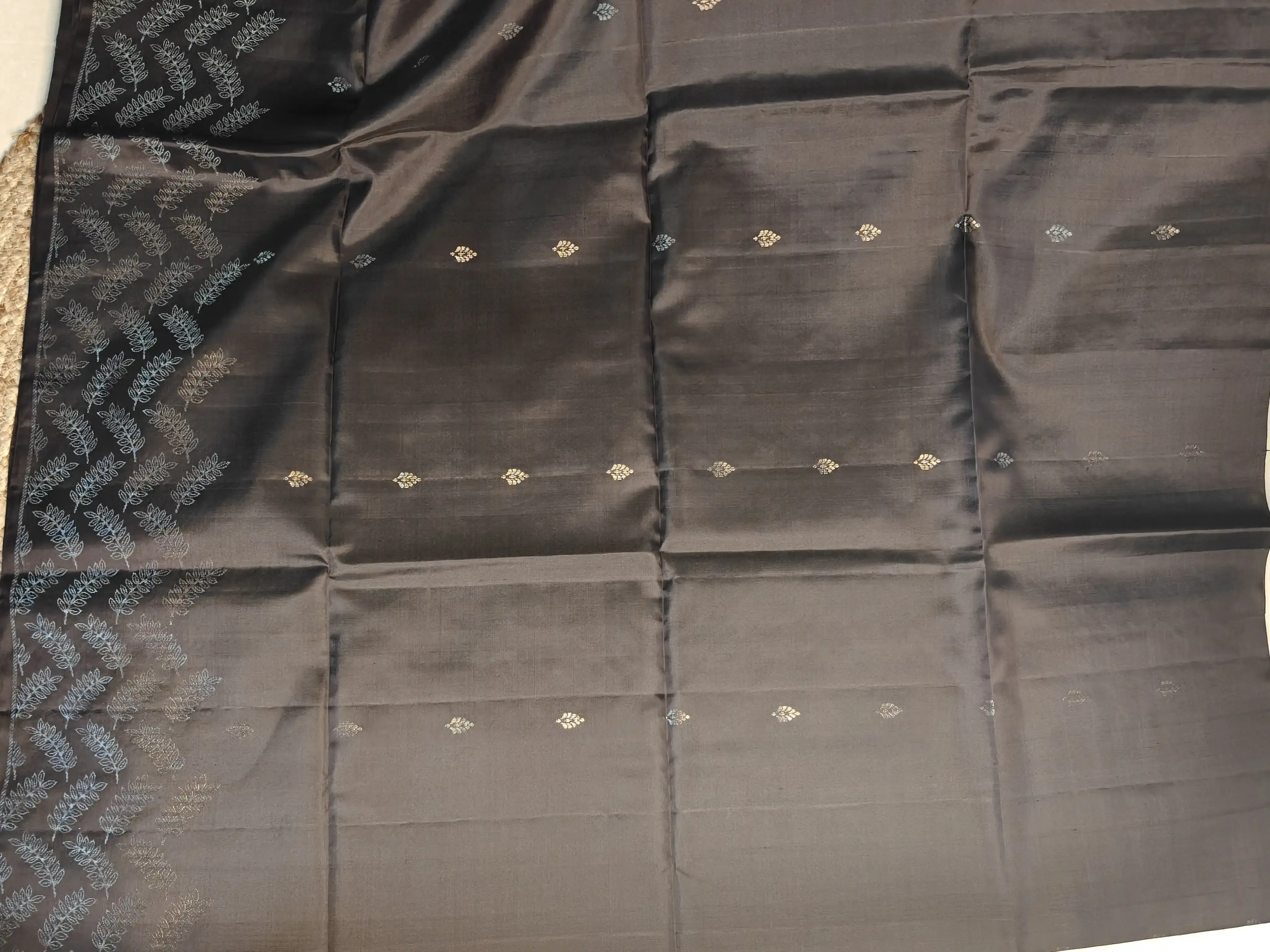 Black silver leaf motifs soft silk saree
