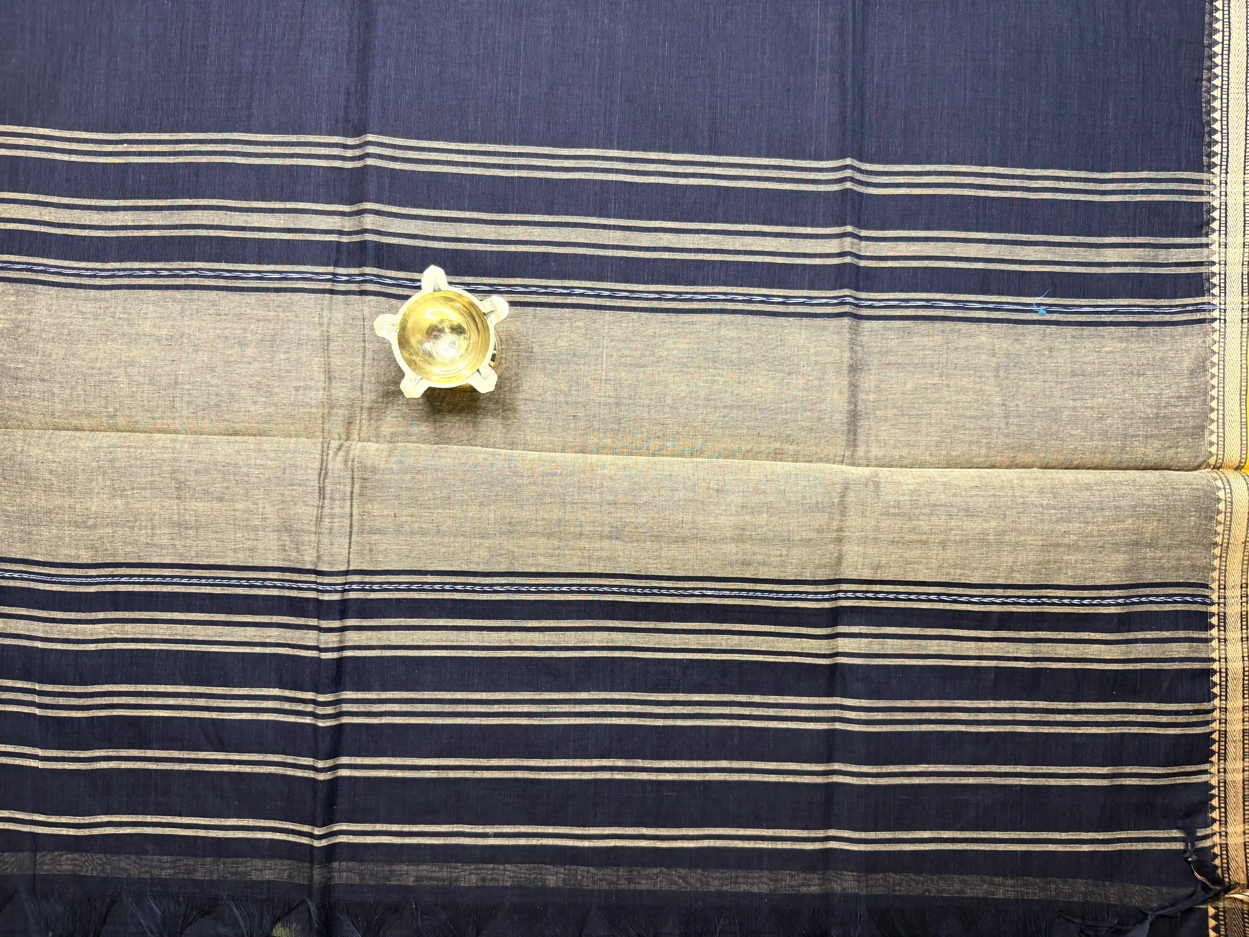 This black Dhaniakhali cotton saree is beautifully accentuated by a vibrant mustard yellow border, creating a striking and sophisticated look. Lightweight and breathable, it’s perfect for festive occasions, cultural gatherings, and everyday ethnic style — a graceful blend of classic handloom charm and modern flair 🖤💛