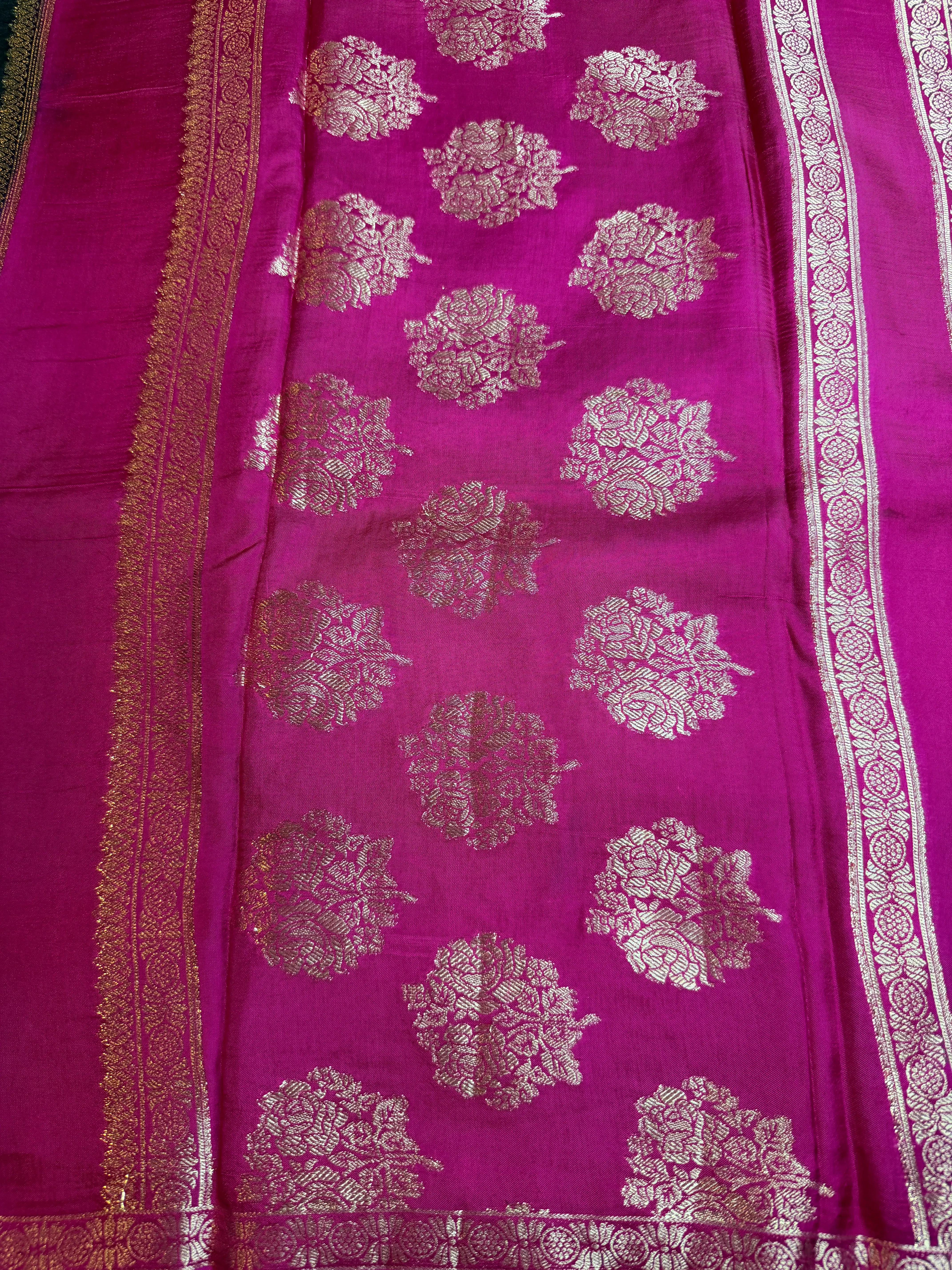 Turn heads with this stunning Black Semi Crepe Saree paired with a vibrant Pink border. The striking color contrast adds a modern yet elegant charm, while the soft semi-crepe fabric drapes effortlessly for a graceful look. Perfect for parties, festive occasions, or evening elegance. ✨