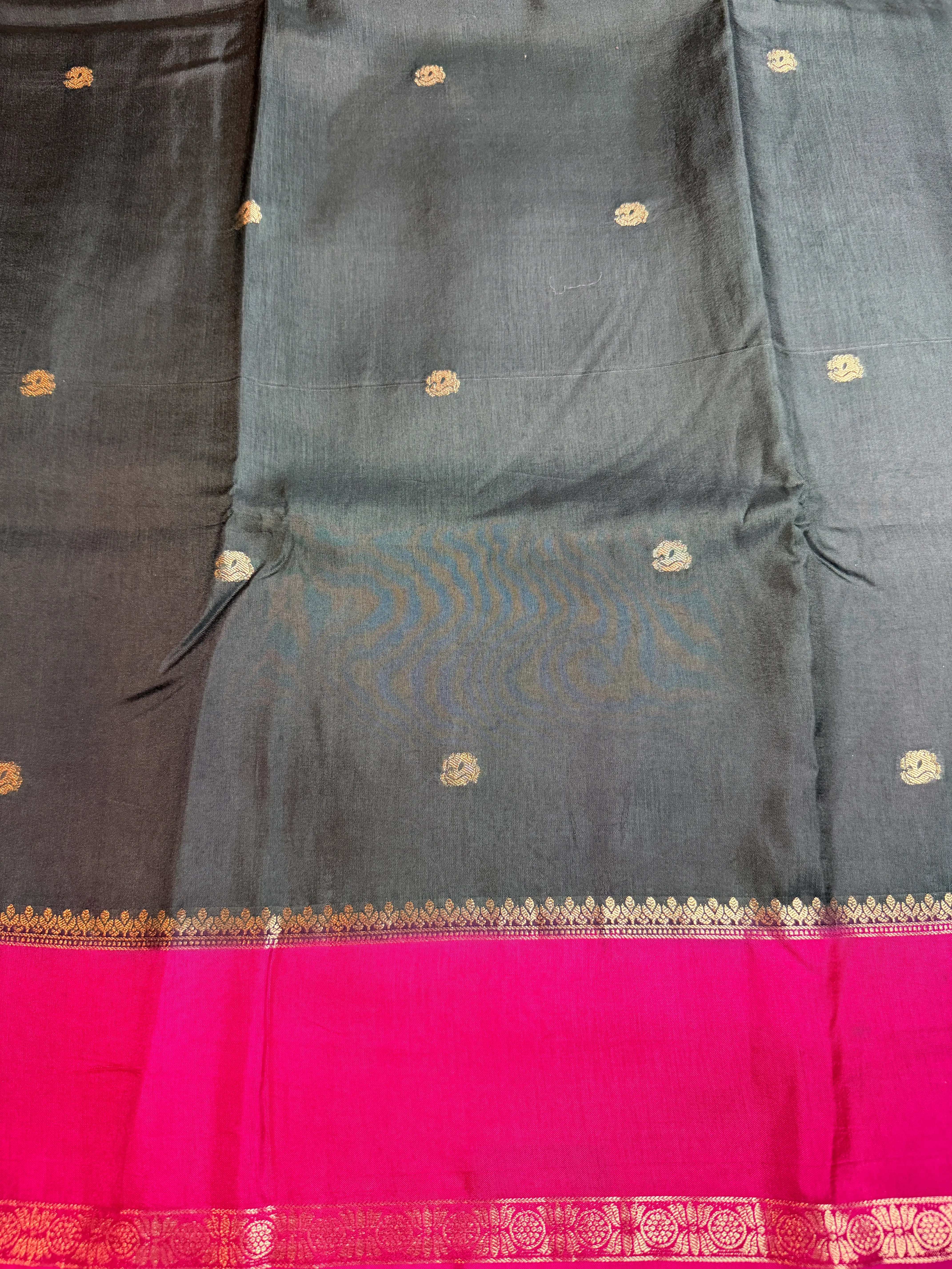 Black with Pink border Semi Crepe Saree