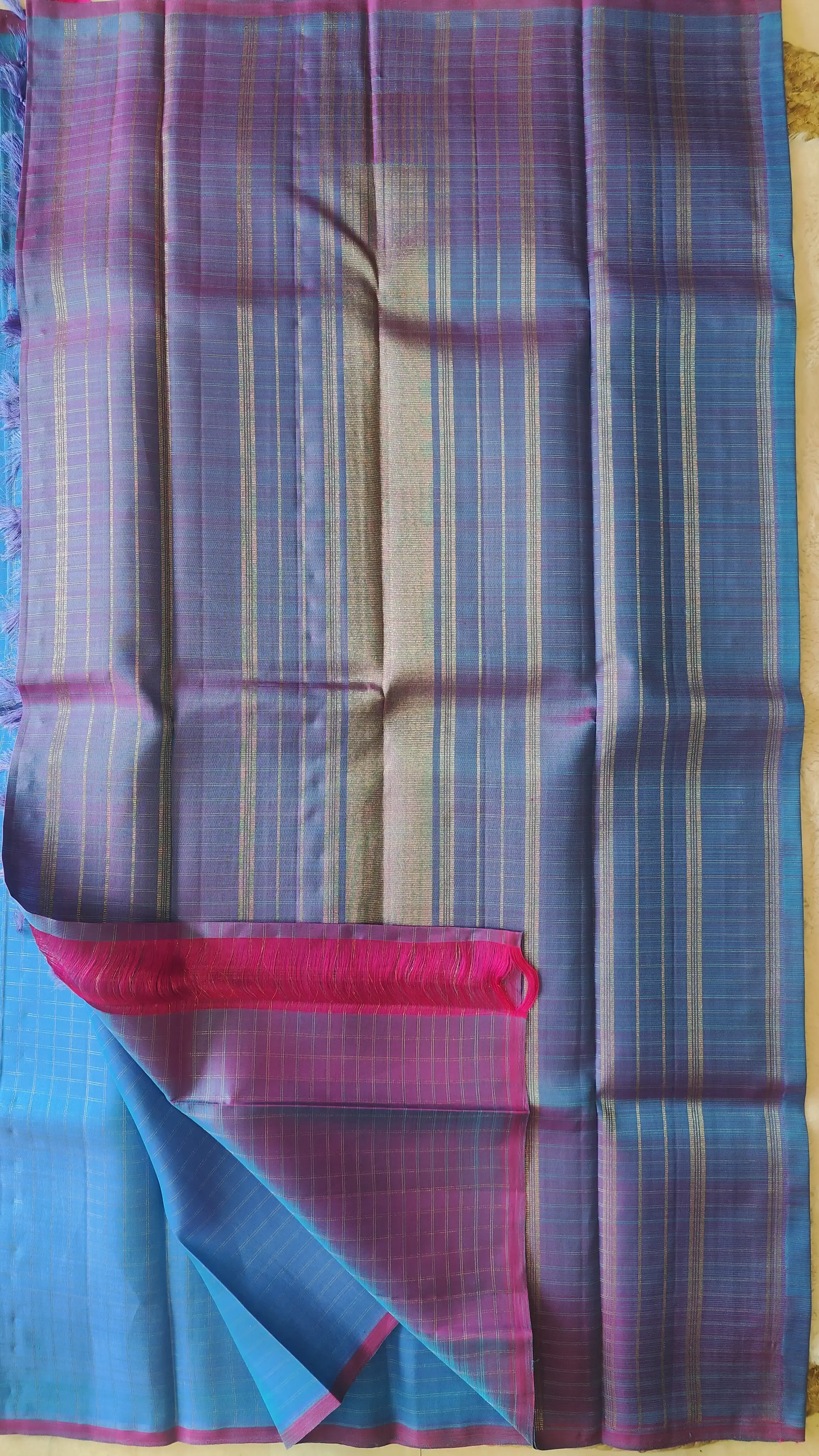 Blue dual shade checks pattern pure silk saree