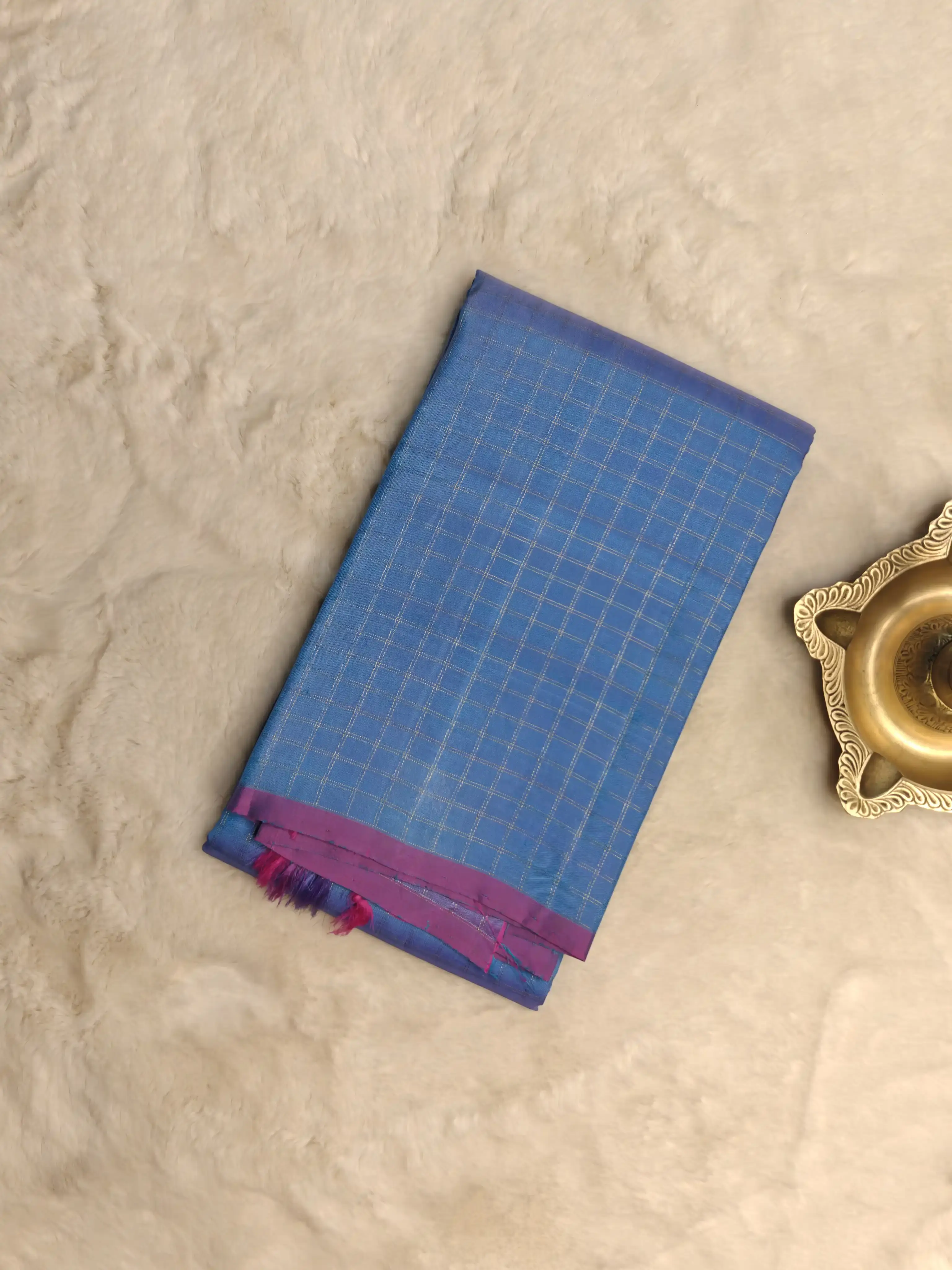 A graceful play of dual-shade blue checks woven on lustrous pure silk.