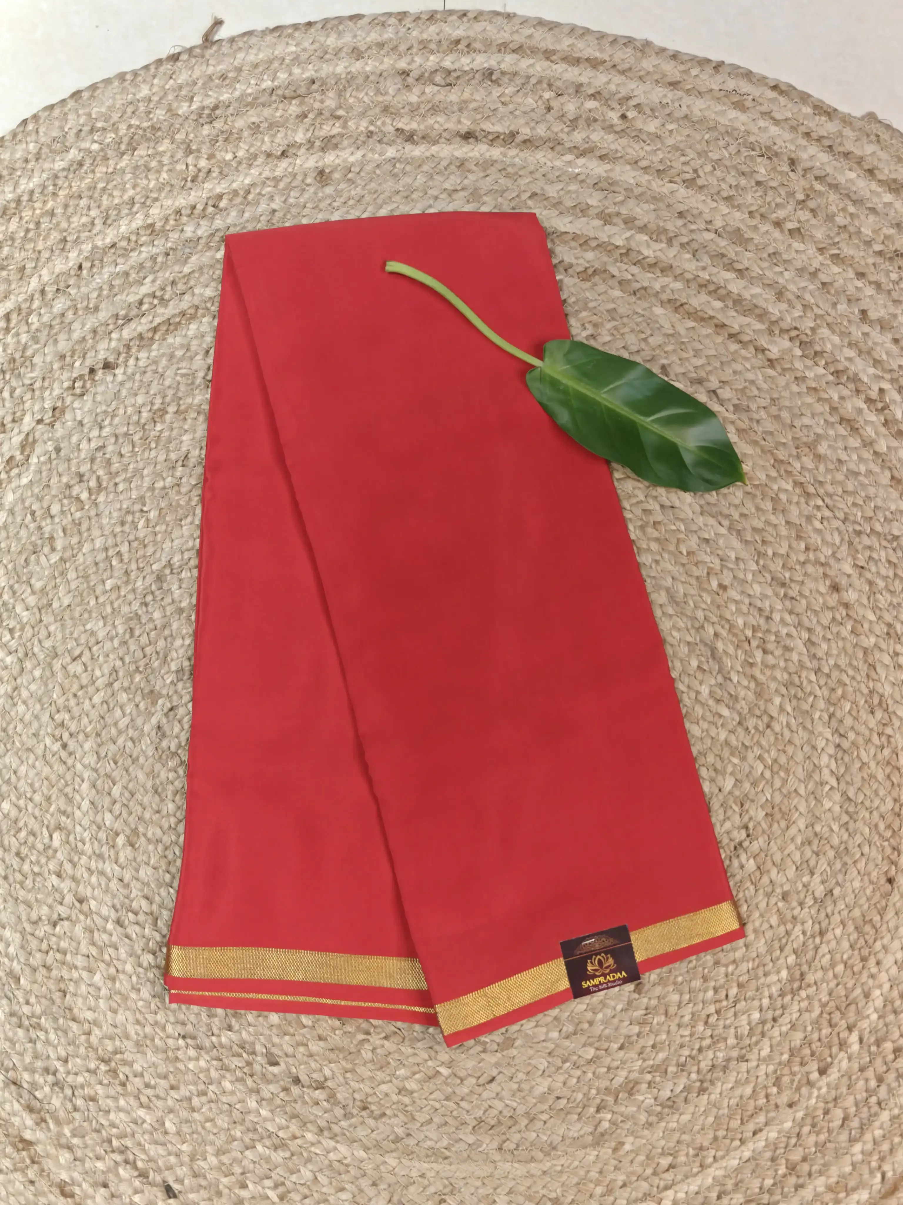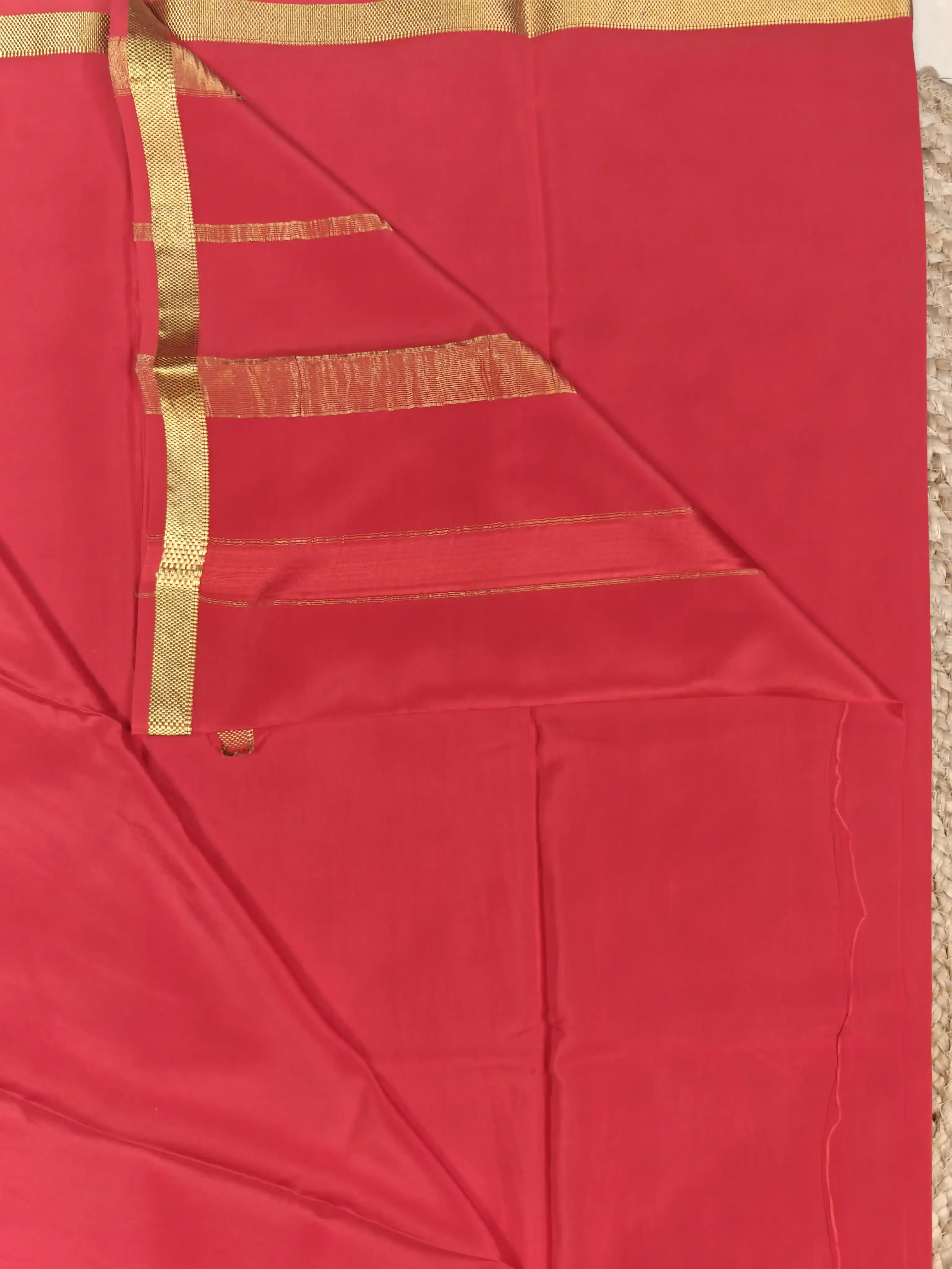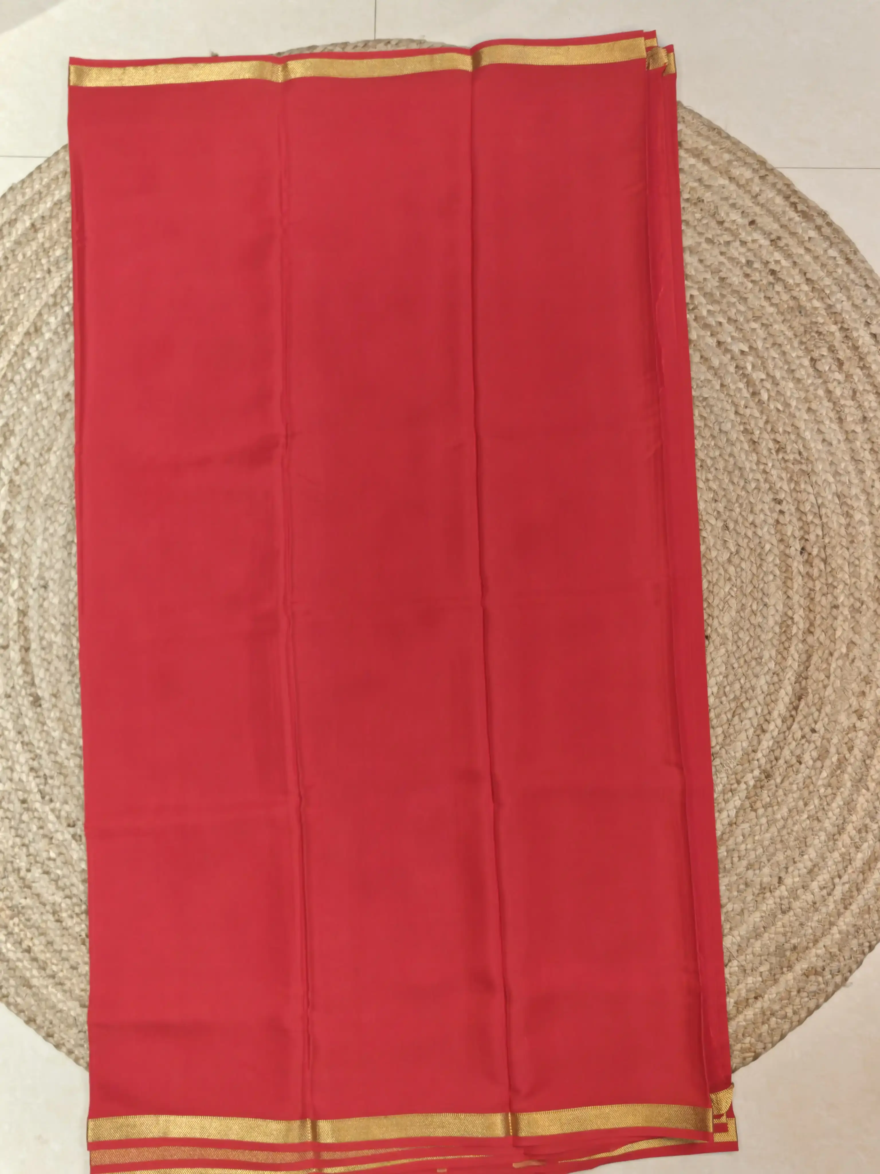 Cherry red plain Pure Mysore crepe silk saree 120gsm