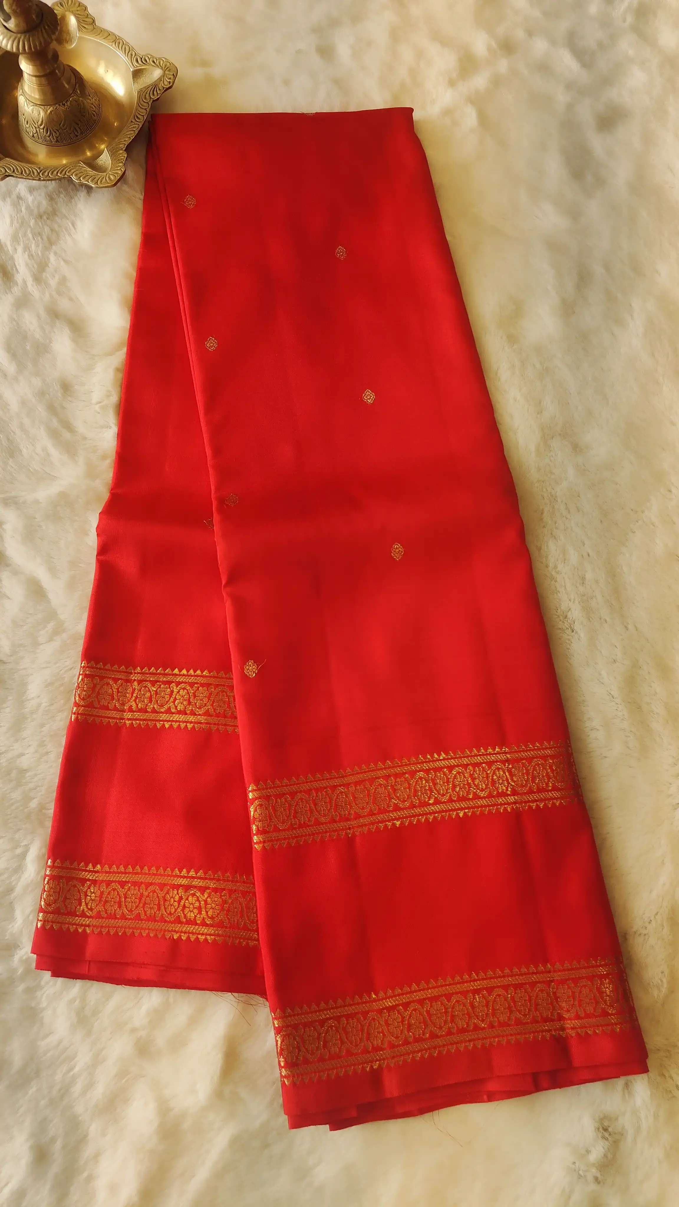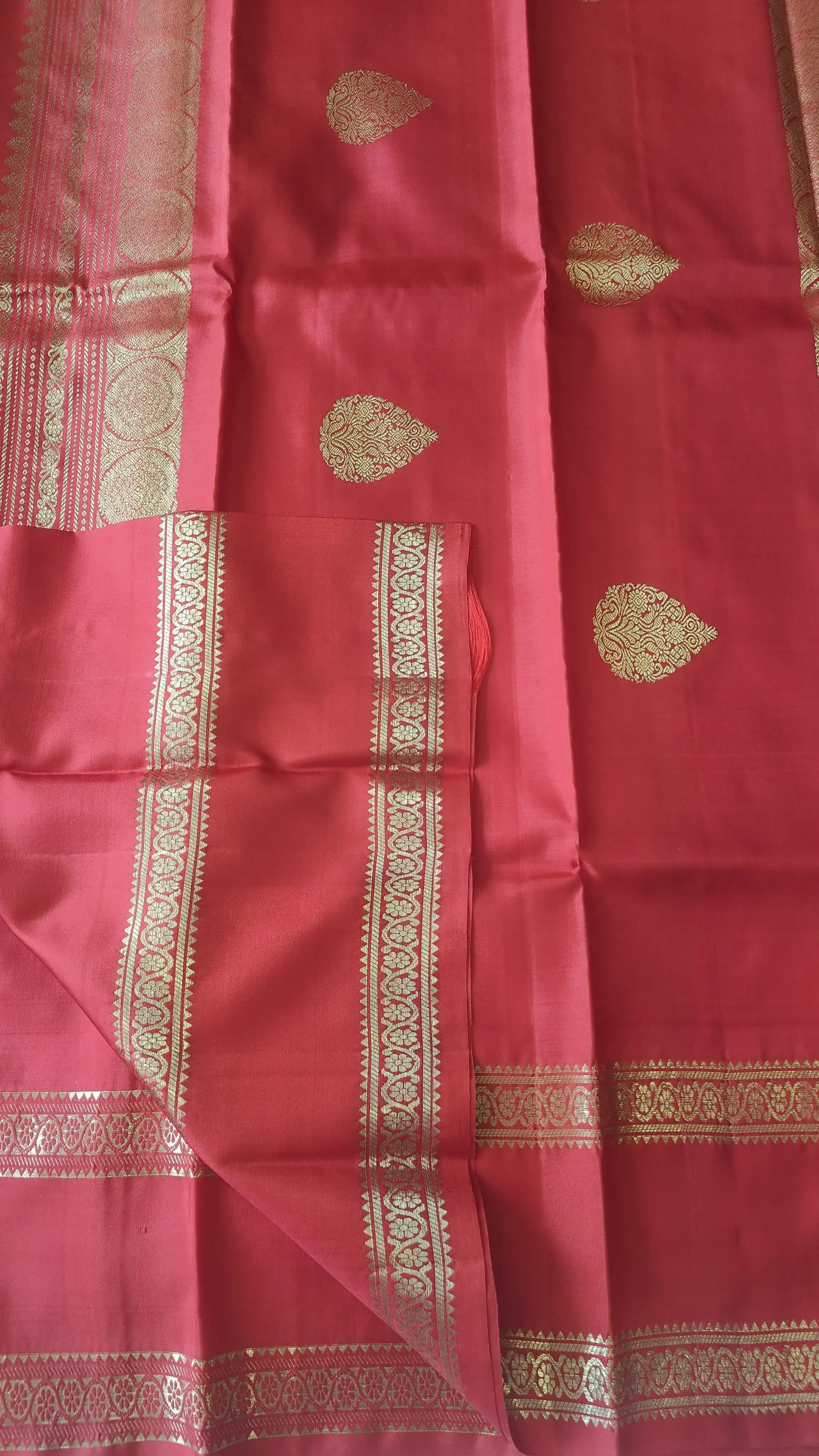 Cherry red with bentex border Pure kanchipuram silk saree