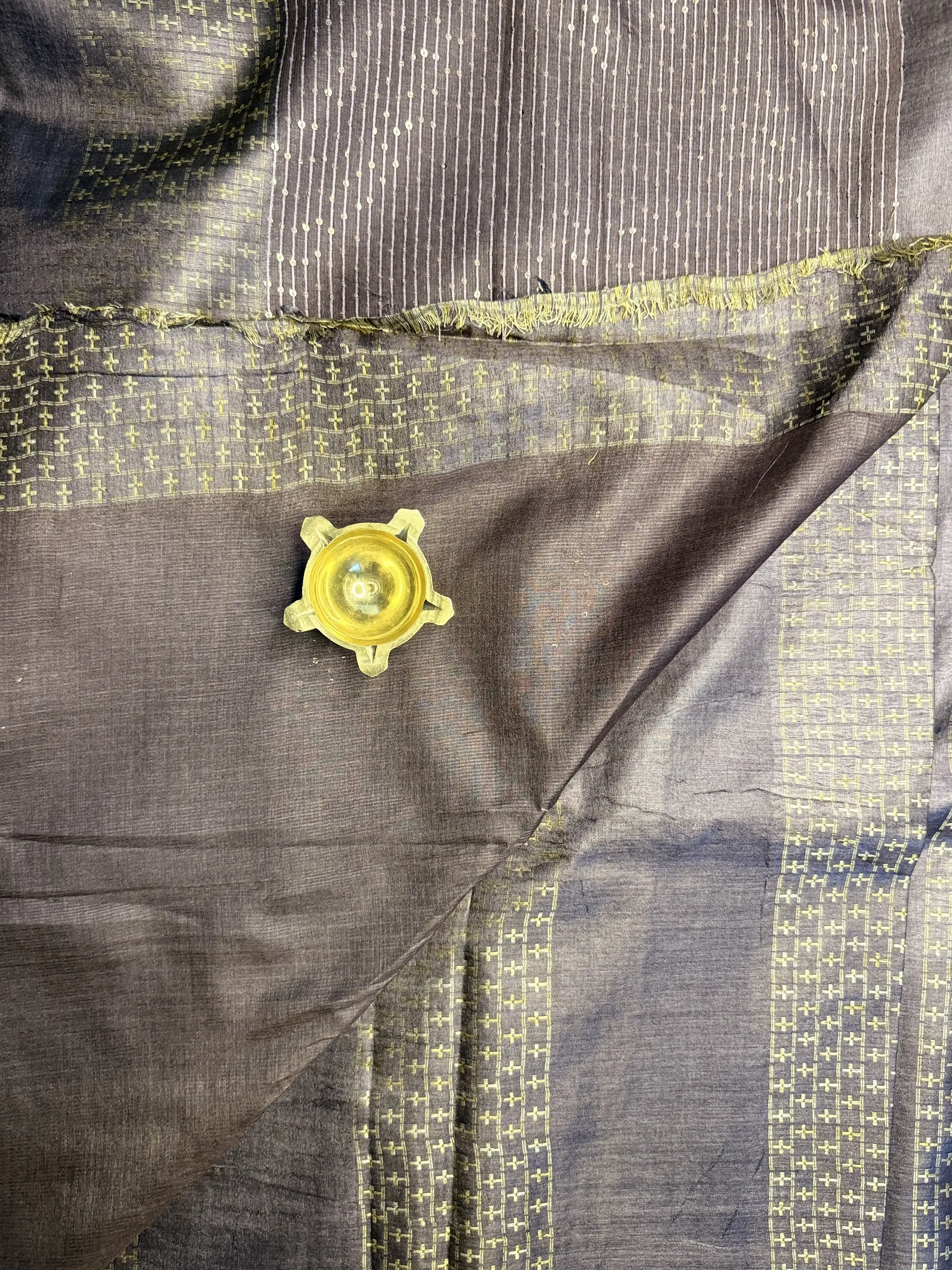 Chocolate Brown sequin work Pure Tussar Silk Saree