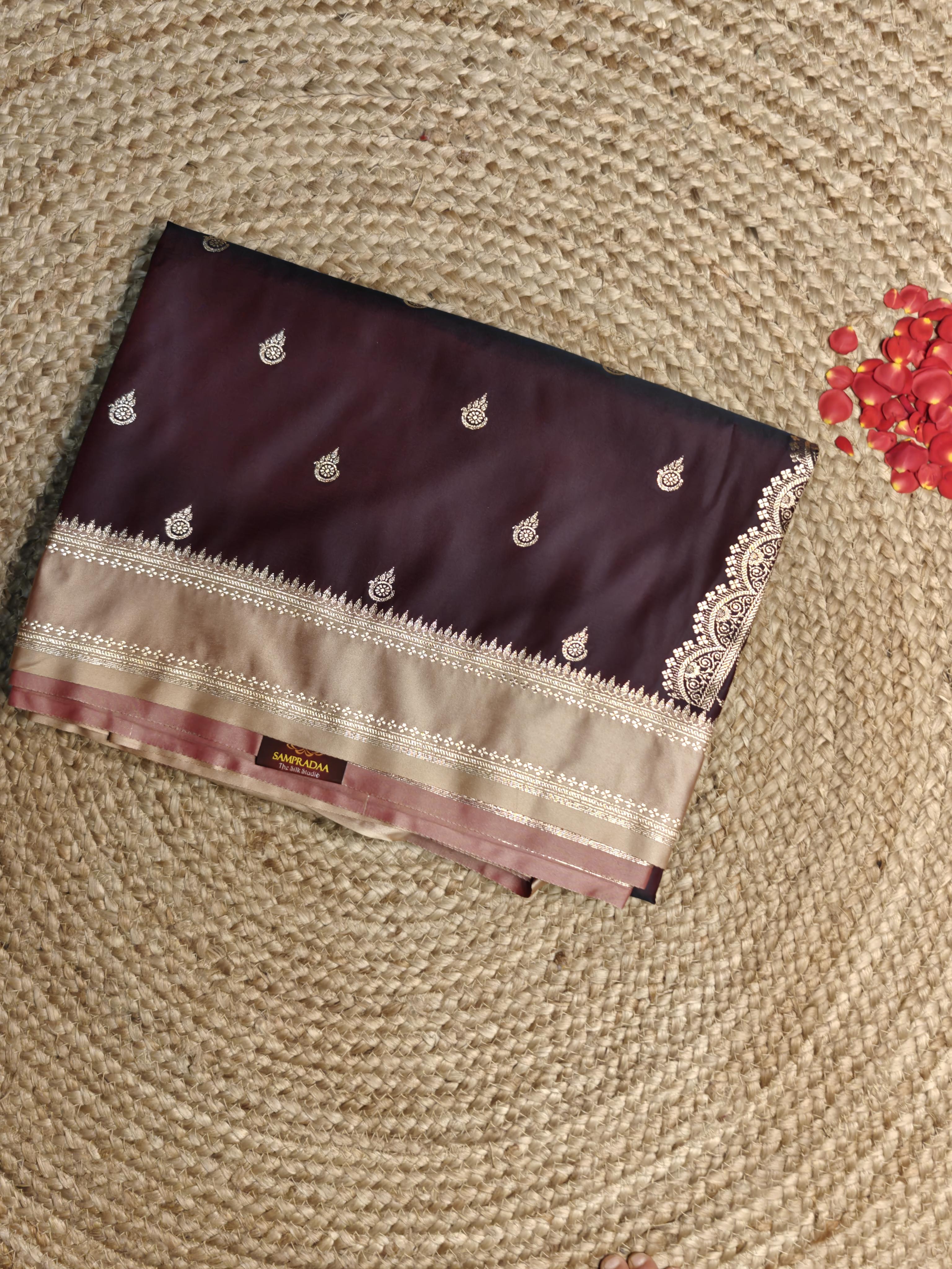 Chocolate Brown with Cream rich border Benaras silk saree