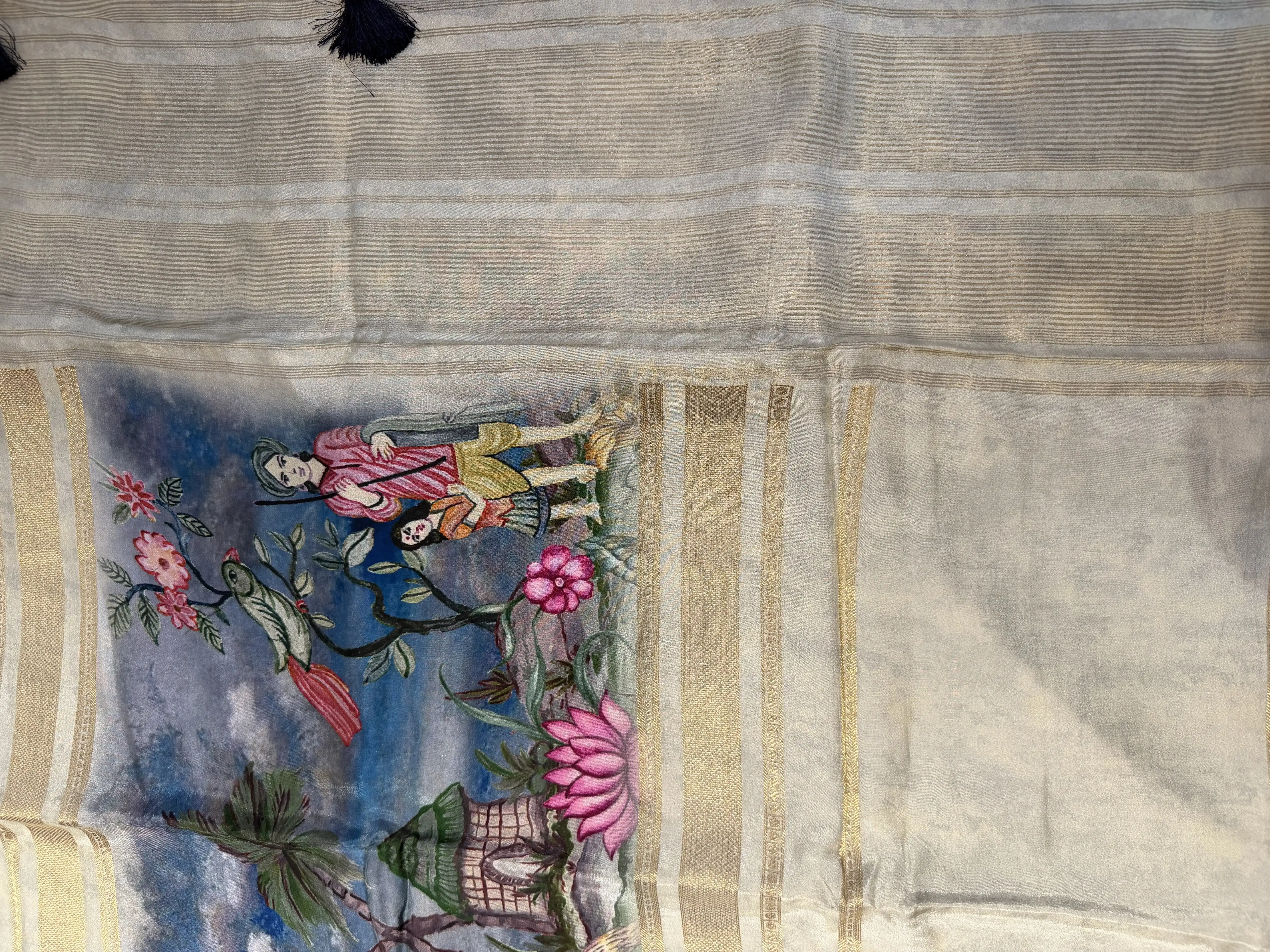 This Cream Semi Crepe saree features beautiful digital prints that add vibrant charm to its smooth, flowy texture. The subtle base perfectly enhances the artistic detailing, creating a look that’s graceful yet contemporary.